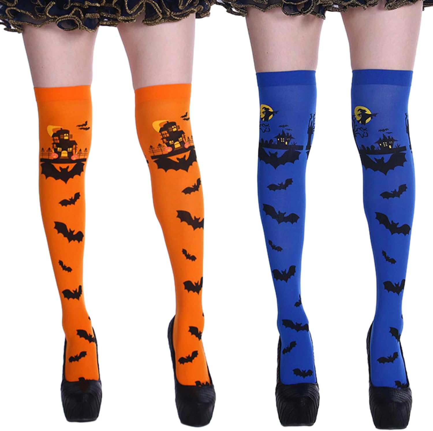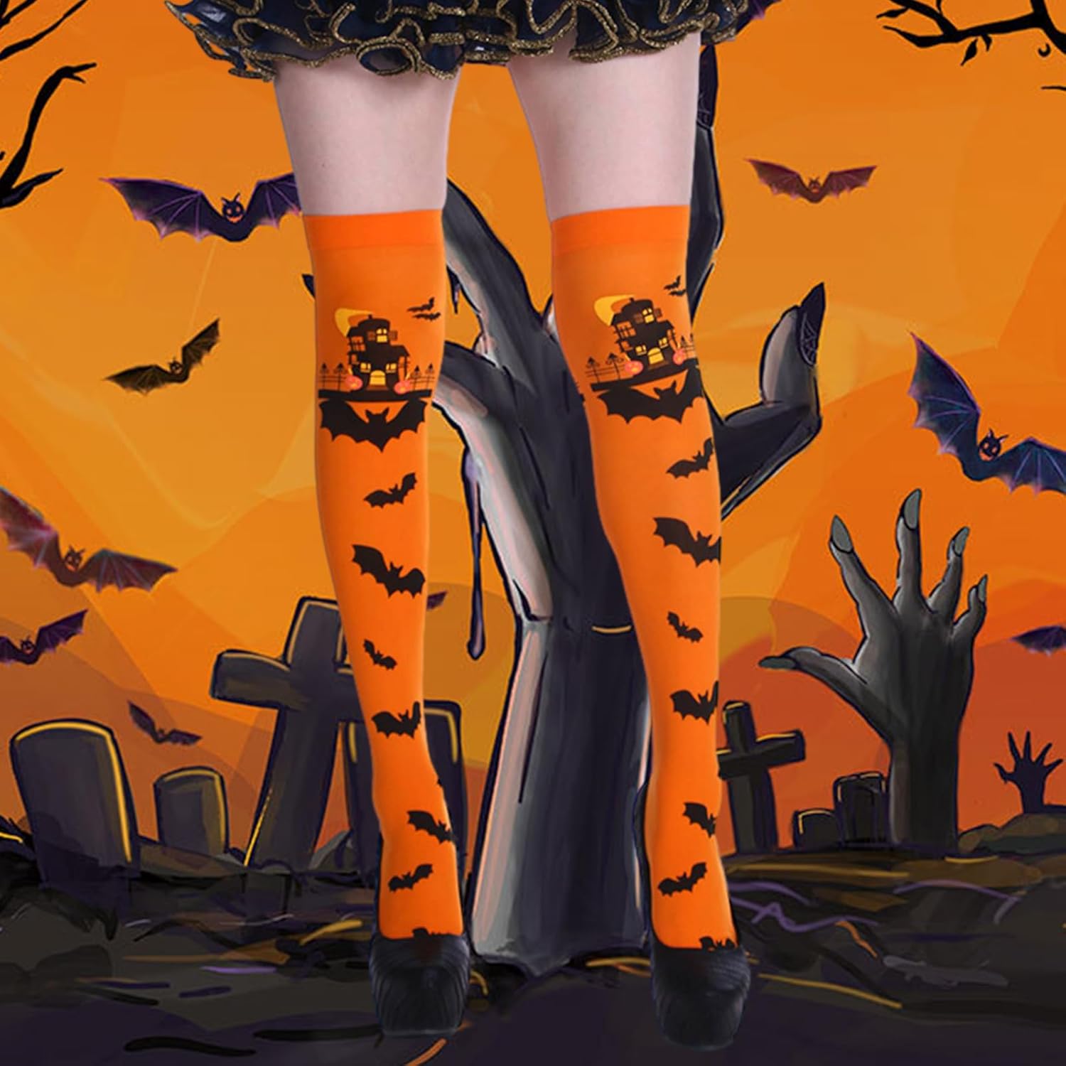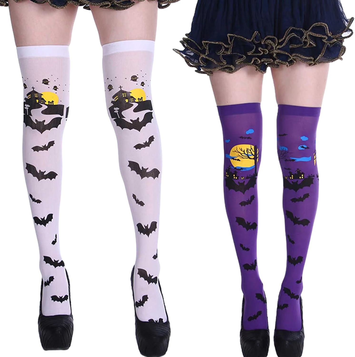 1 paio di calze sopra il ginocchio gotico pipistrello calze cosplay festival coscia alta lunga morbida festa di Halloween usura Cosplay coscia alta lunga