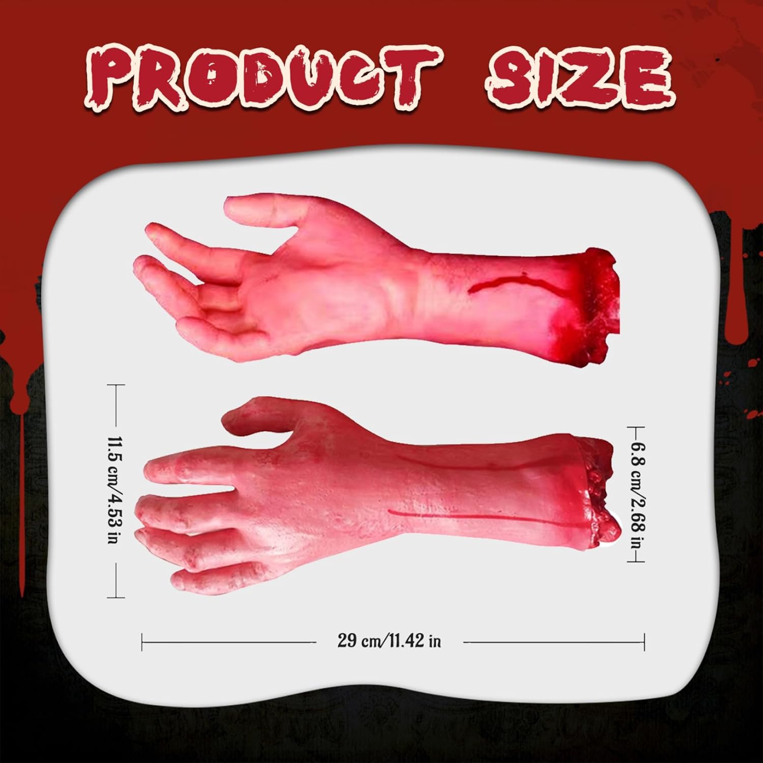 Facile da usare e personalizzare: le mani mozzate leggere, portatili e realistiche possono essere facilmente posizionate, appese o personalizzate con vernice o accessori aggiuntivi per personalizzare una scena spaventosa o uno scherzo, permettendoti di liberare la tua creatività. Perfette per scherzi e feste: che si tratti di terrificanti dolcetti o scherzetti o di divertire gli ospiti alle feste di Halloween, queste mani finte insanguinate forniscono il perfetto fattore di spavento che garantisce reazioni indimenticabili e divertimento spettrale. Parti del corpo mozzate Mani finte Decorazioni versatili per Halloween: ideali come spettrali oggetti di scena per Halloween, accessori per feste o decorazioni per la casa stregata, queste finte mani mozzate migliorano l'atmosfera spettrale e si integrano facilmente in allestimenti a tema, scherzi o creazioni horror fai-da-te. Mani finte di Halloween Materiale robusto e sicuro: realizzate in plastica atossica di alta qualità con una finitura flessibile, queste mani mozzate sono progettate per un uso e una manipolazione ripetuti per garantire divertimento sicuro per tutte le età senza compromettere il realismo o durevolezza..Halloween Hands Halloween Props Design realistico Gore: queste mani mozzate sono realizzate con dettagli meticolosi, offrendo texture insanguinate realistiche e tonalità naturali della pelle, che le rendono perfette per creare autentiche scene horror che sconvolgeranno e impressioneranno in qualsiasi evento di Halloween o casa stregata.. Puntelli di Halloween Puntelli della casa stregata