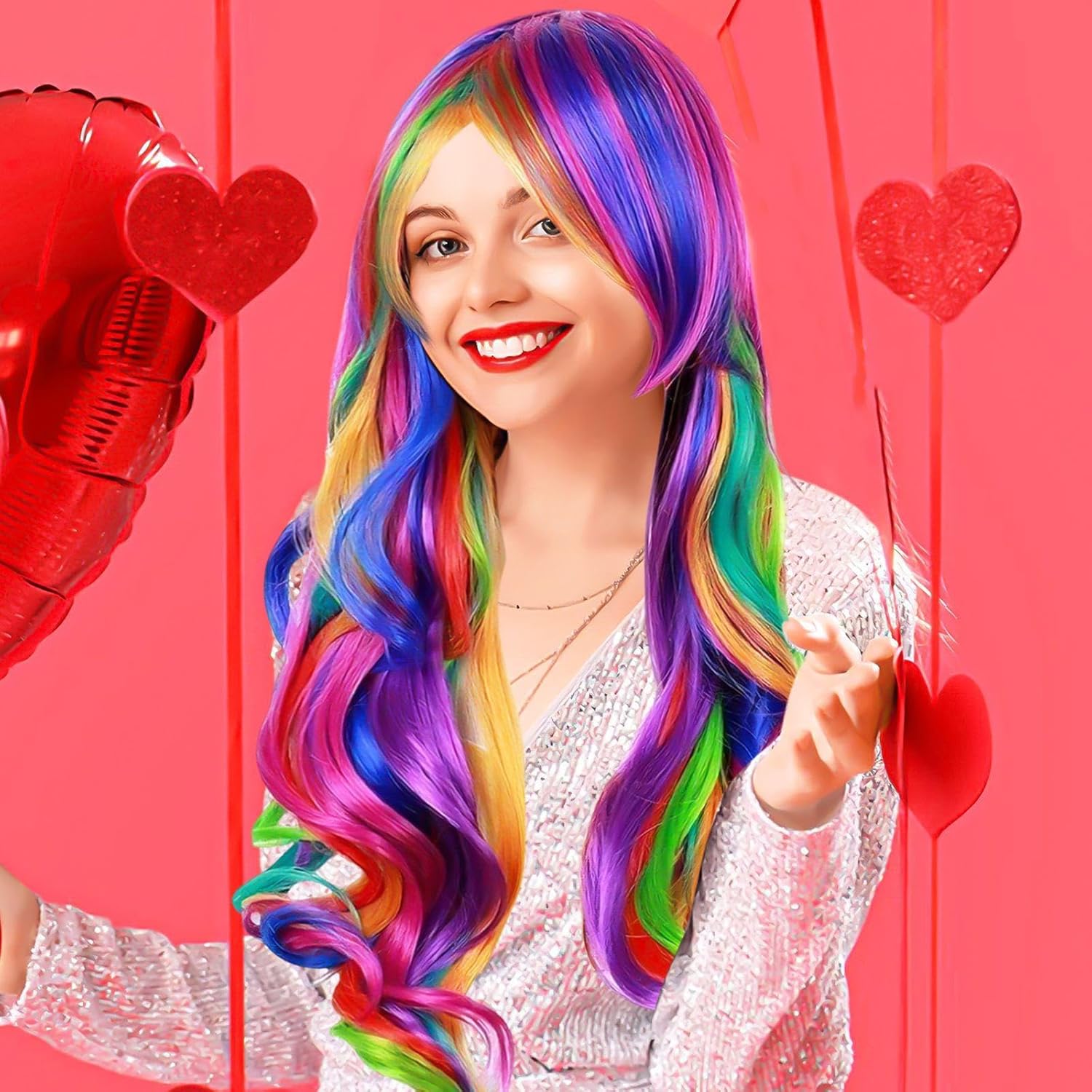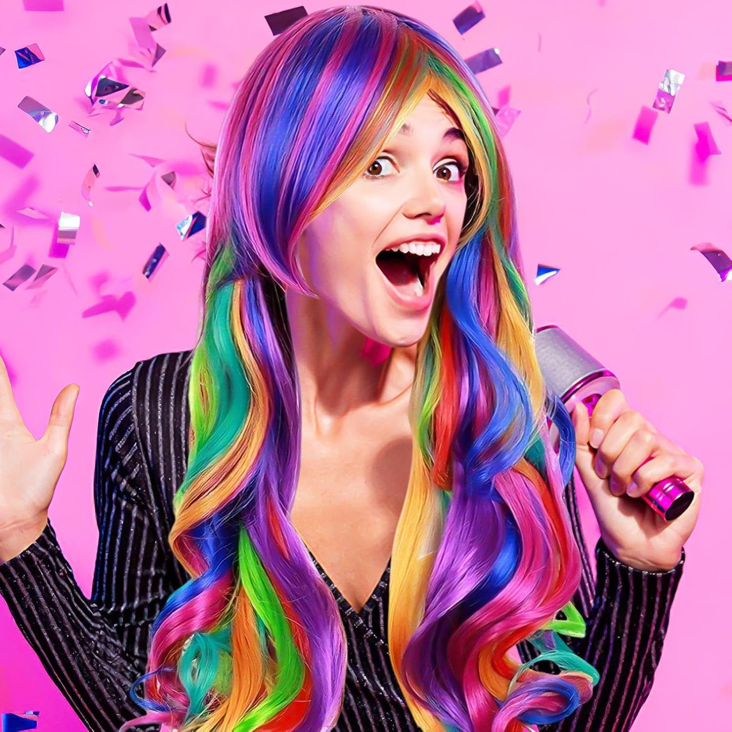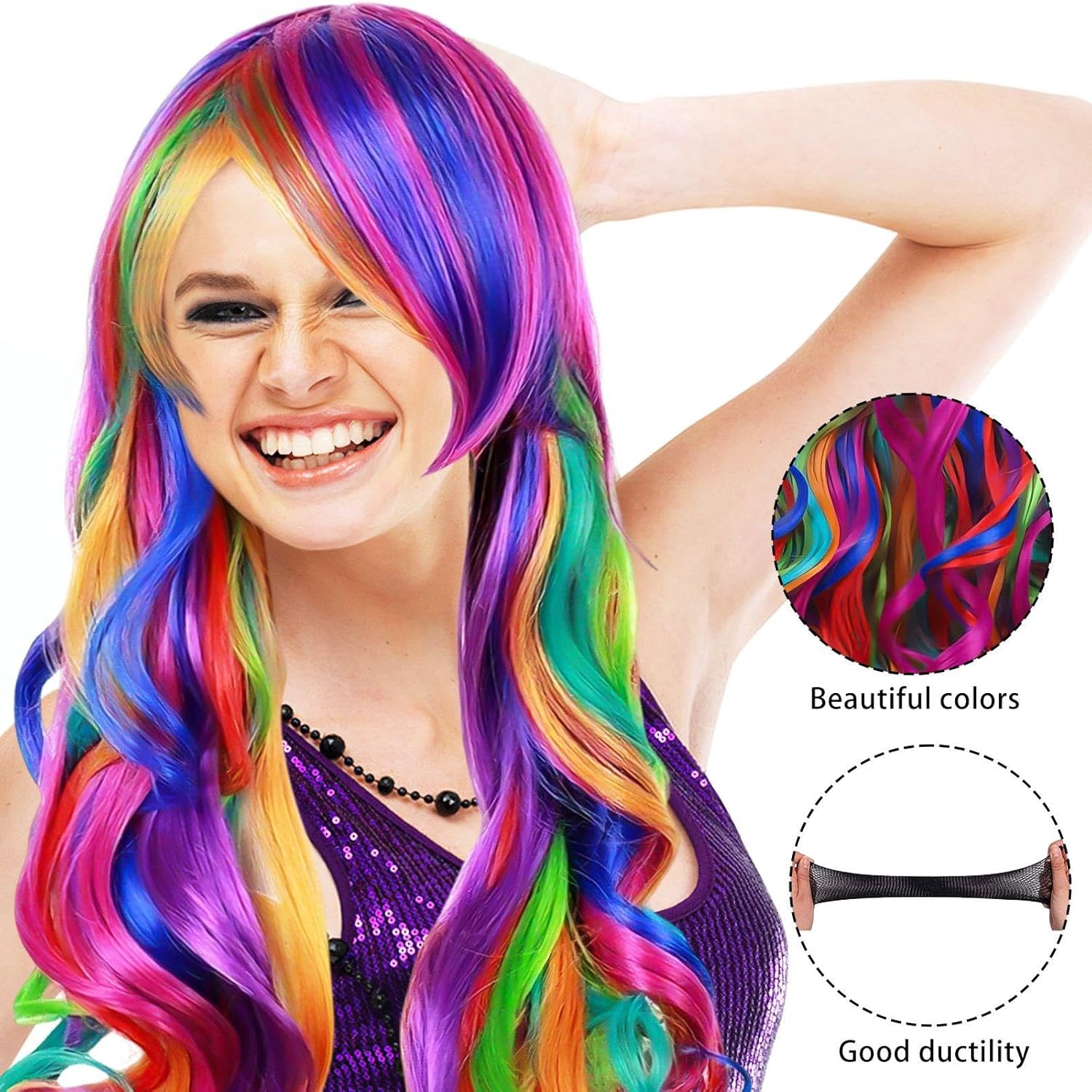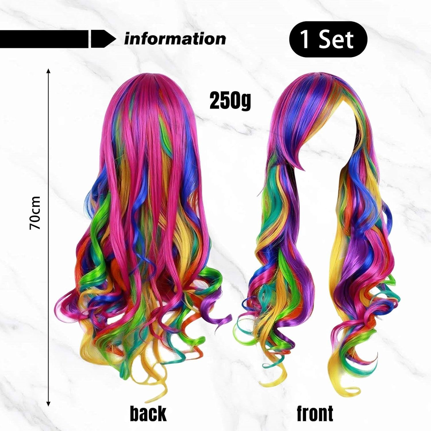 【Contenuto Del Prodotto】 Riceverai 1 Parrucca Colorata. Questo Design Wavy Lungo La Parrucca Ha Dimensioni Di 70 Cm Ed È Multicolore Ed È Adatto Per Abiti Da Gioco O Da Partito. 【Materiale Del Prodotto】 Questo Prodotto È Realizzato In Filo Ad Alta Temperatura, Che Ha Resistenza Al Calore E Durata. Il Materiale Di Seta Ad Alta Temperatura Non Ha Solo Un Tocco Morbido E Un Aspetto Naturale, Ma Può Anche Resistere A Una Certa Temperatura, Rendendo La Parrucca Più Facile Da Cura E Forma. 【Fashion Design】 Questa Parrucca È Alla Moda E All'Avanguardia E La Forma Ondulata Lunga Aggiunge La Morbidezza E Il Temperamento Dell'Aspetto Generale. Il Design Multicolore Rende La Parrucca Più Vivida E Divertente, Particolarmente Adatta A Una Varietà Di Attività Di Gioco E Di Partito, Aiutandoti A Cambiare Facilmente Stili Diversi. 【Facile Da Usare】 Questa Parrucca È Facile Da Indossare Ed È Adatta A Tutte Le Forme Della Testa. Che Si Tratti Di Un Uso Quotidiano O Di Occasioni Speciali, Questa Parrucca Può Aggiungere Un Punto Culminante Al Tuo Look. È Anche Conveniente Da Pulire E Mantenere Dopo L'Uso, Garantendo Che La Parrucca Sia In Buone Condizioni Per Molto Tempo. 【Ampiamente Usata】 Questa Parrucca Colorata Non È Adatta Solo Per Abiti Da Gioco E Da Festa, Ma Utilizzata Anche In Varie Occasioni Come Spettacoli Teatrali, Fotografia E Tiro. Indipendentemente Dallo Sguardo Che Desideri, Questa Parrucca Soddisferà Le Tue Esigenze E Attirerà L'Attenzione In Ogni Caso.