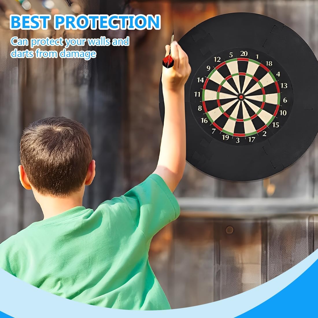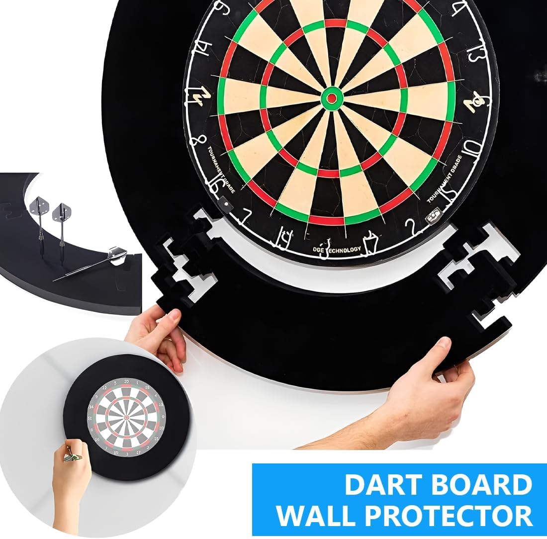 Compatibilità universale: questa protezione per bersaglio si adatta perfettamente ai bersagli di dimensioni standard e offre una protezione ottimale. Compatibile con tutti i bersagli, è uno strumento professionale sia per i giocatori di freccette amatoriali che professionisti. Materiale di alta qualità: questa protezione per bersaglio è realizzata in schiuma EVA di alta qualità. La schiuma spessa e rigida è durevole e resistente, proteggendo sia le freccette che il bersaglio da eventuali danni, consentendo di lanciare in sicurezza. Questa protezione per bersaglio è reversibile, impermeabile e resistente all'umidità, il che la rende facile da pulire. Facile da pulire: il materiale nero è antimacchia e facile da pulire. Basta sciacquarlo sotto l'acqua corrente. Facile da installare: questa protezione per bersaglio è facile da installare e utilizzare. È composta da cinque parti facili da assemblare. Basta fissarla alla parete per una tenuta sicura; non sono necessari ulteriori montaggi o installazioni. Insonorizzazione: il bordo del bersaglio rivestito in spugna non produce alcun rumore a contatto con la parete. È perfetto per i principianti e protegge le pareti.