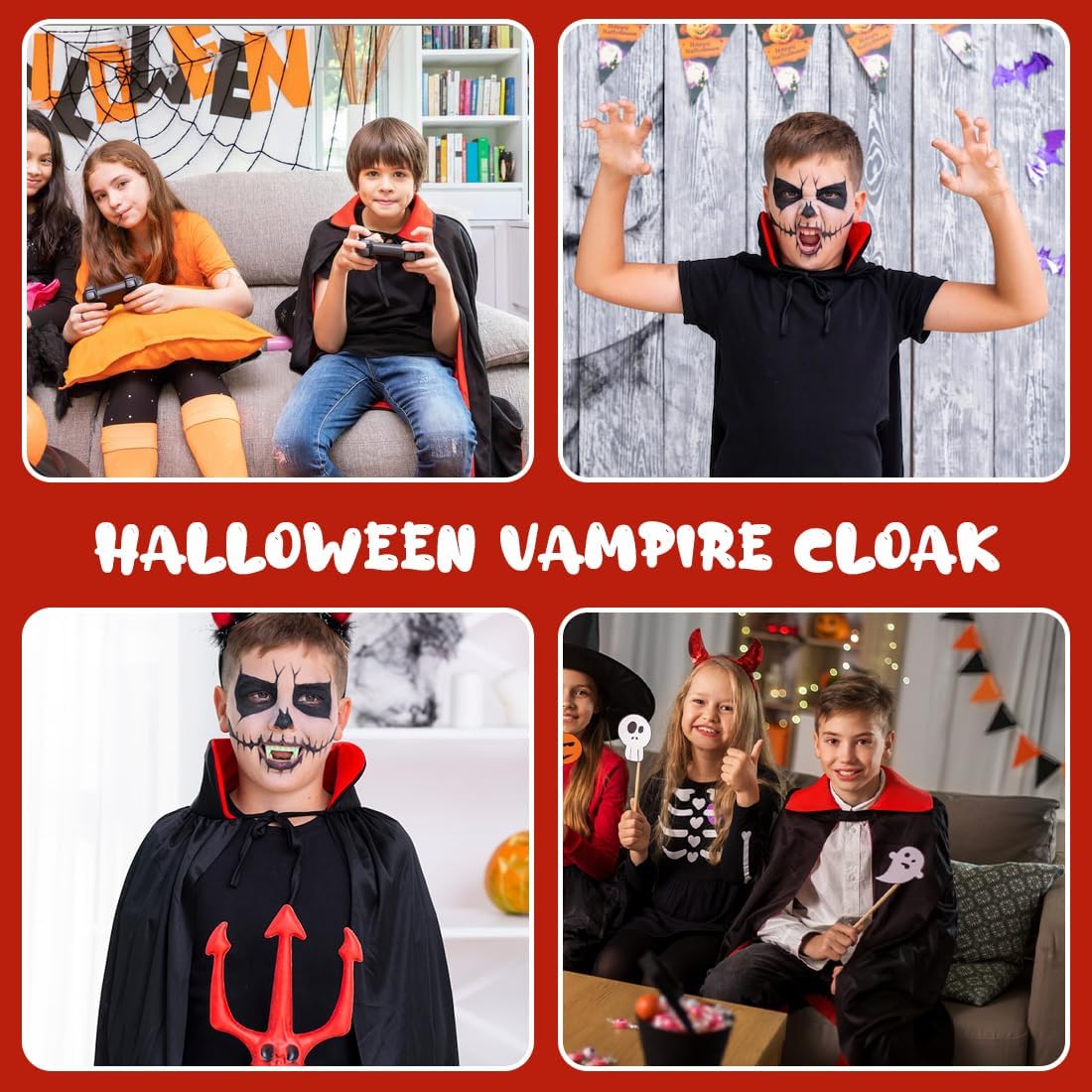 Mantello Vampiro Bambino Halloween, Costume Halloween Bambino, Vampire Cape, Costume Vampiro, Nero Rosso Doppio Lato Capo, per Halloween Carnevale Cosplay Costume (90 cm)