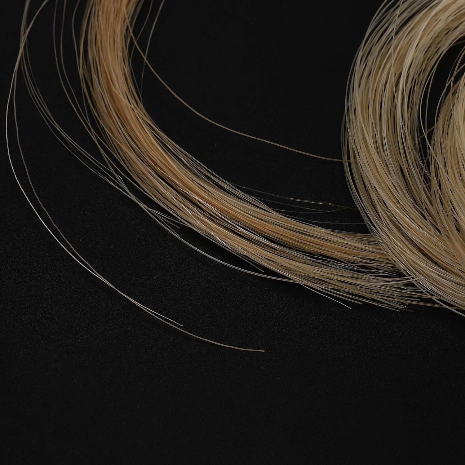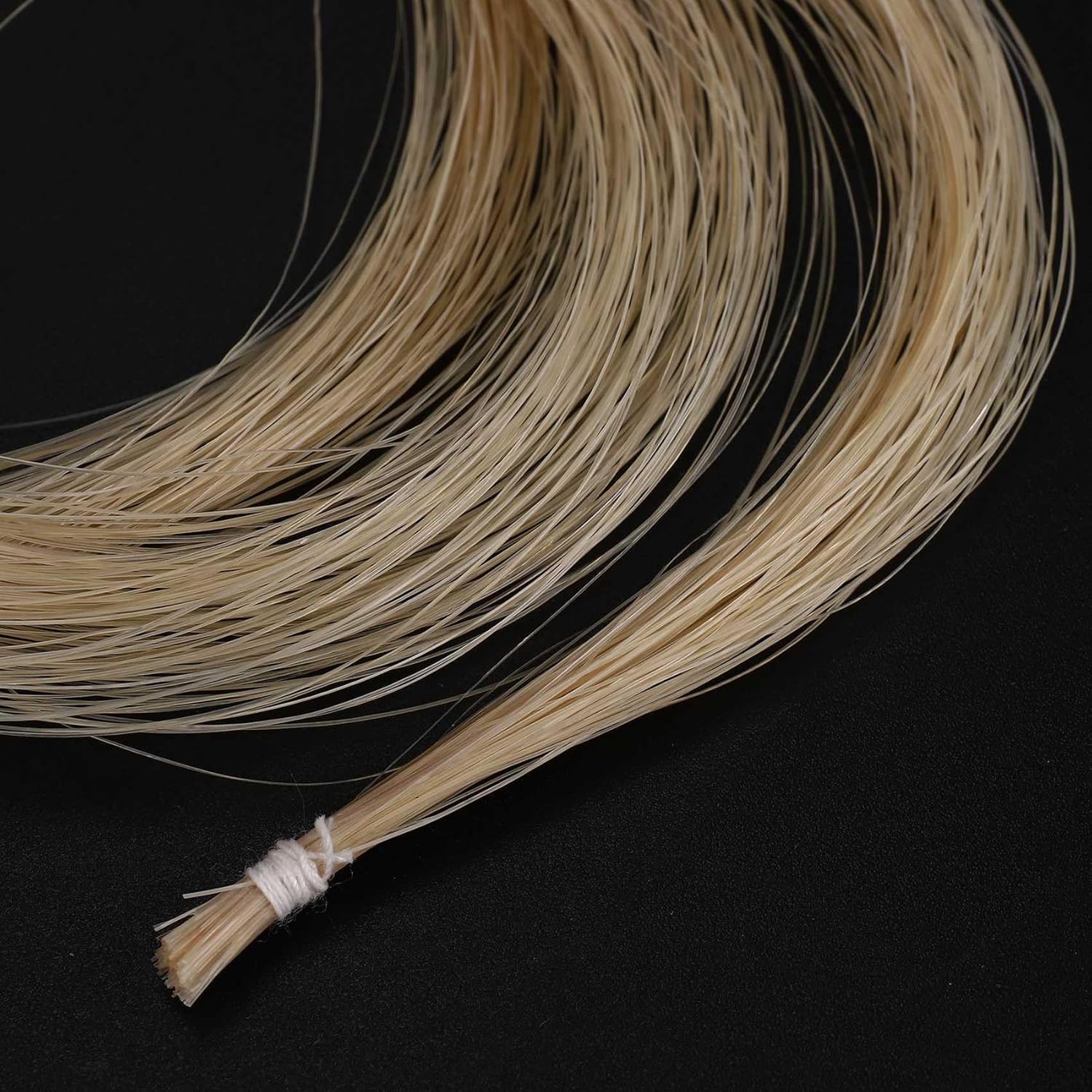 Tutti i spessore simile. Questa matassa di alta qualita' di crine di naturale mongolo e' pronta e pronta per re-hair i tuoi archi. che e' buono per tutte le dimensioni del tuo violino, viola o violoncello. Buono per qualsiasi misura Violino, Viola, Violoncello e Archi per basso Un'estremita' e' ' pronta per il montaggio e questo rende la vita molto piu' facile.