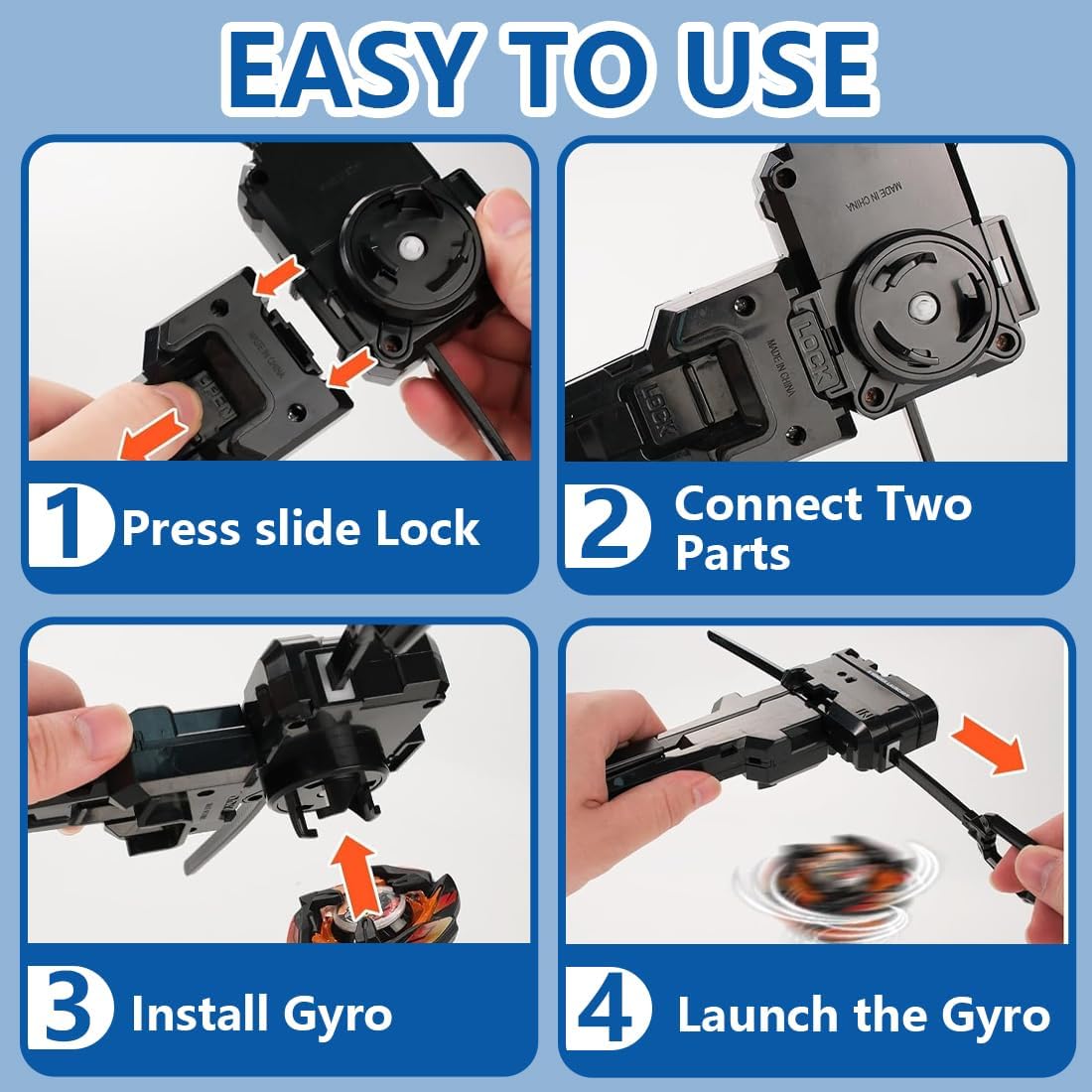 Dotato di una lunga corda a strappo che consente di iniziare l'azione con slancio Facile da usare: il suo design ergonomico lo rende comodo da impugnare, mentre l'anello antiscivolo sulla cordicella garantisce una presa ottimale, adatta alle battaglie più intense. Distinguiti in battaglia: B1ade X rende la battaglia ancora più emozionante, perché grazie al giroscopio ad alta velocità, i fan di B1ade possono portare la battaglia a un nuovo livello. Assembla il giroscopio, installa il lanciatore e poi: lanciati! Accelerazione: B1ade X presenta il sistema di accelerazione X-Celerator. Quando gli ingranaggi della punta entrano in contatto con la guida X-Celerator, il giroscopio genera una velocità estrema a velocità ultra elevata Collisione spettacolare: la velocità incredibile del giroscopio B1ade X sulla pista provoca esplosioni mozzafiato e collisioni spettacolari (il tasso di esplosione varia a seconda della pista).