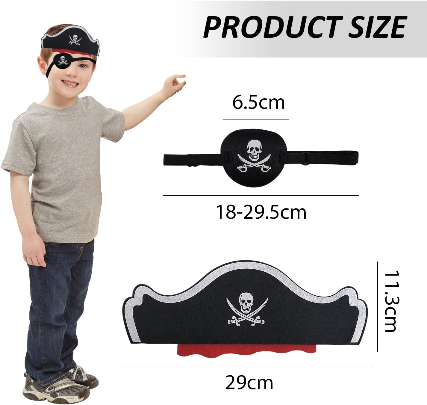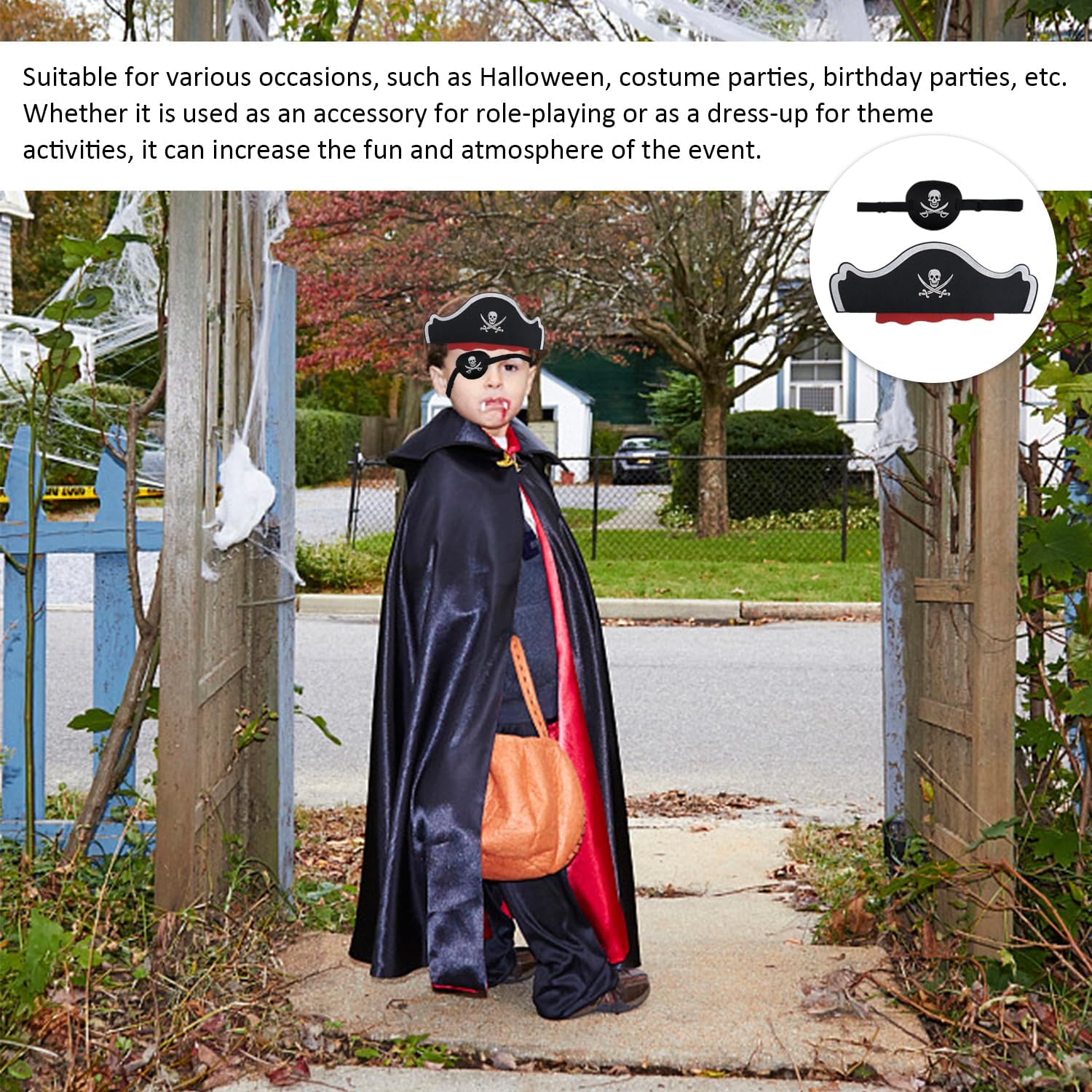 Descrizione del prodotto Dettagli del prodotto benda sull'occhio unica Materiale: Poliestere Colore: Nero Dimensioni: 6,5*6 cm Quantità: 1 pezzo di cappello da pirata Dimensioni: 29*12 cm Colore: Nero Quantità: 1 pezzo Avviso di sicurezza NO