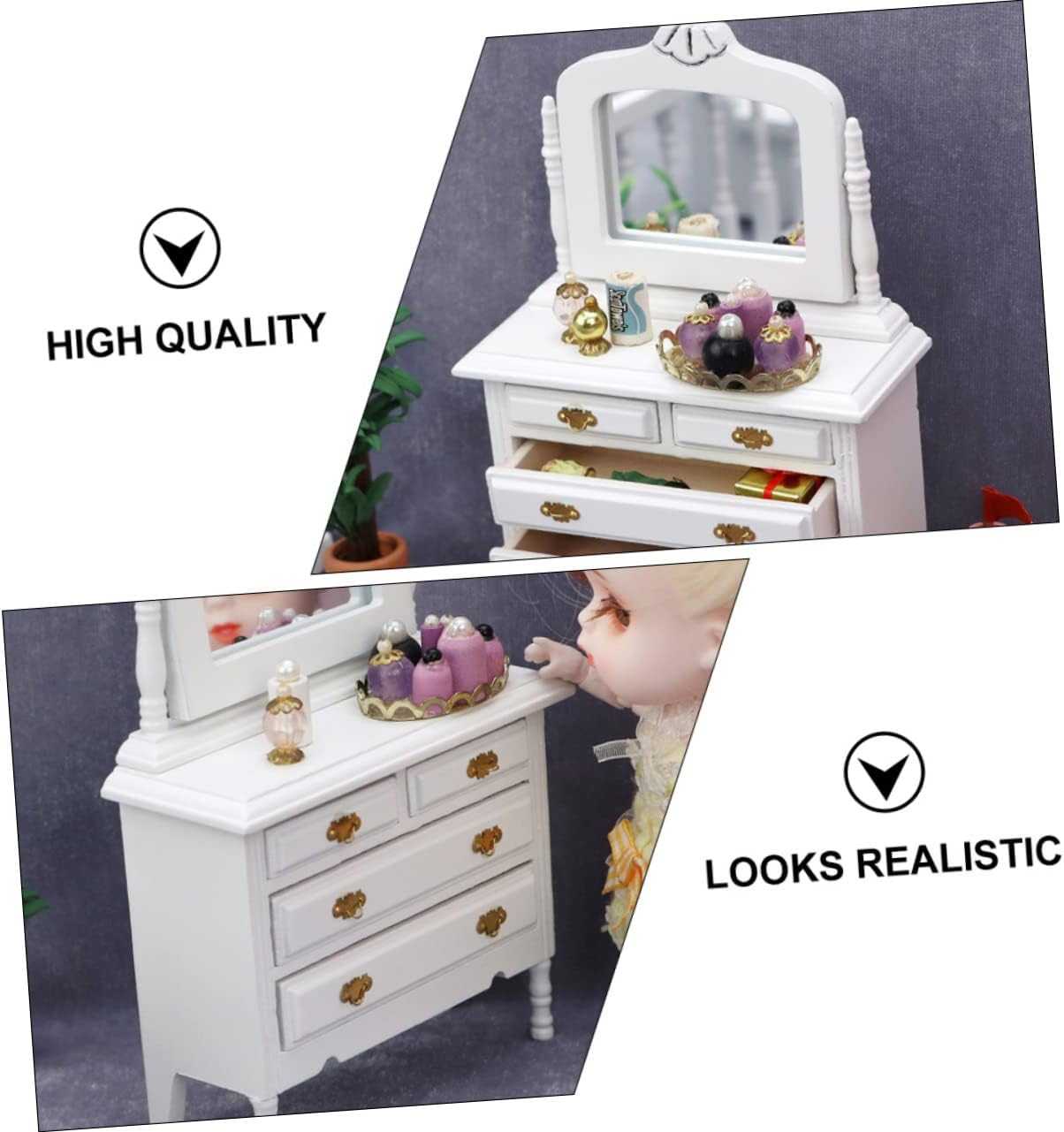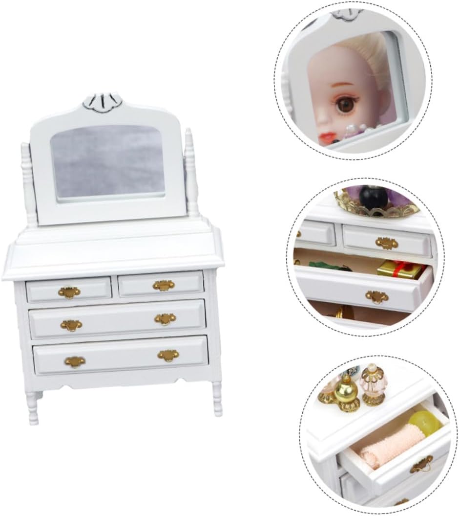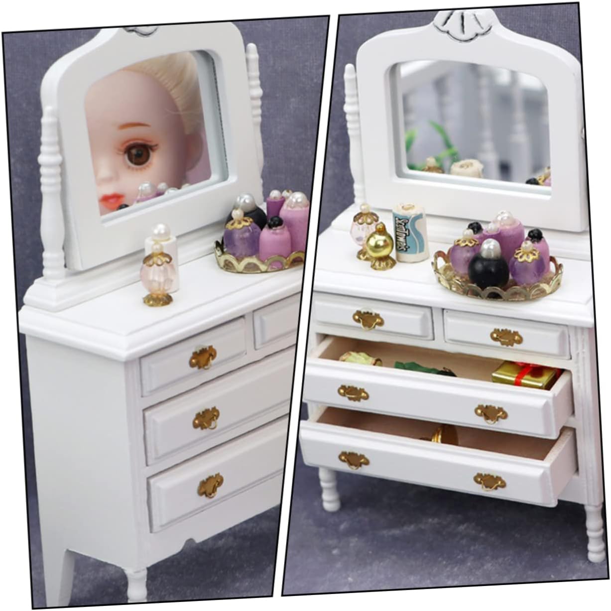 Piccola toeletta: è realizzata con materiali di alta qualità e può essere utilizzata a lungo. Piccola toeletta in miniatura: ha una vasta gamma di applicazioni e può essere ben combinata con altre mini decorazioni di mobili per creare un'atmosfera calda. Ornamento per casa delle bambole con mobili in miniatura: porta più divertimento al tuo fai-da-te, questa mini toletta rende la tua casa delle bambole classica, Toeletta per casa delle bambole con mobili per casa delle bambole: questo modello sembra realistico con il suo design raffinato e l'eccellente fattura. Mini mobili per casa delle bambole: realizzati in materiale di legno di alta qualità, hanno durata e funzionalità, accessori per casa delle bambole