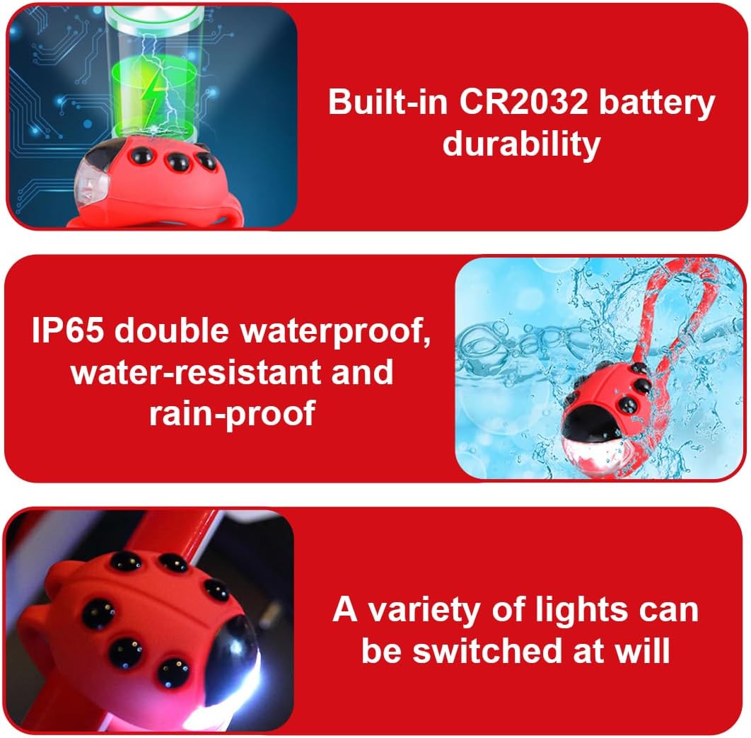 Durevole e impermeabile: realizzato in silicone di alta qualità e LED per una lunga durata; doppiamente impermeabile e robusto, perfetto per l'uso quotidiano. Tre modalità di illuminazione: scegli tra flash normale (durata della batteria di 60 ore), flash lento (durata della batteria di 100 ore) e flash veloce (durata della batteria di 80 ore) per una visibilità ottimale Facile da installare e trasportare: il design elastico in silicone si adatta a vari punti come manubri, zaini e caschi e può essere installato rapidamente senza attrezzi ed è facile da trasportare Versatile: la luce può essere facilmente montata sullo scooter per bambini, sul bastone da trekking o sullo zaino, il tuo partner fidato, rendendoti più sicuro sulla strada Set pratico: include 1 luce di avvertimento per monopattino per bambini, ogni luce di avvertimento è preinstallata con 2 batterie CR2032; luce rossa per la parte posteriore, luce bianca per quella anteriore, perfetta per tutti i piccoli avventurieri
