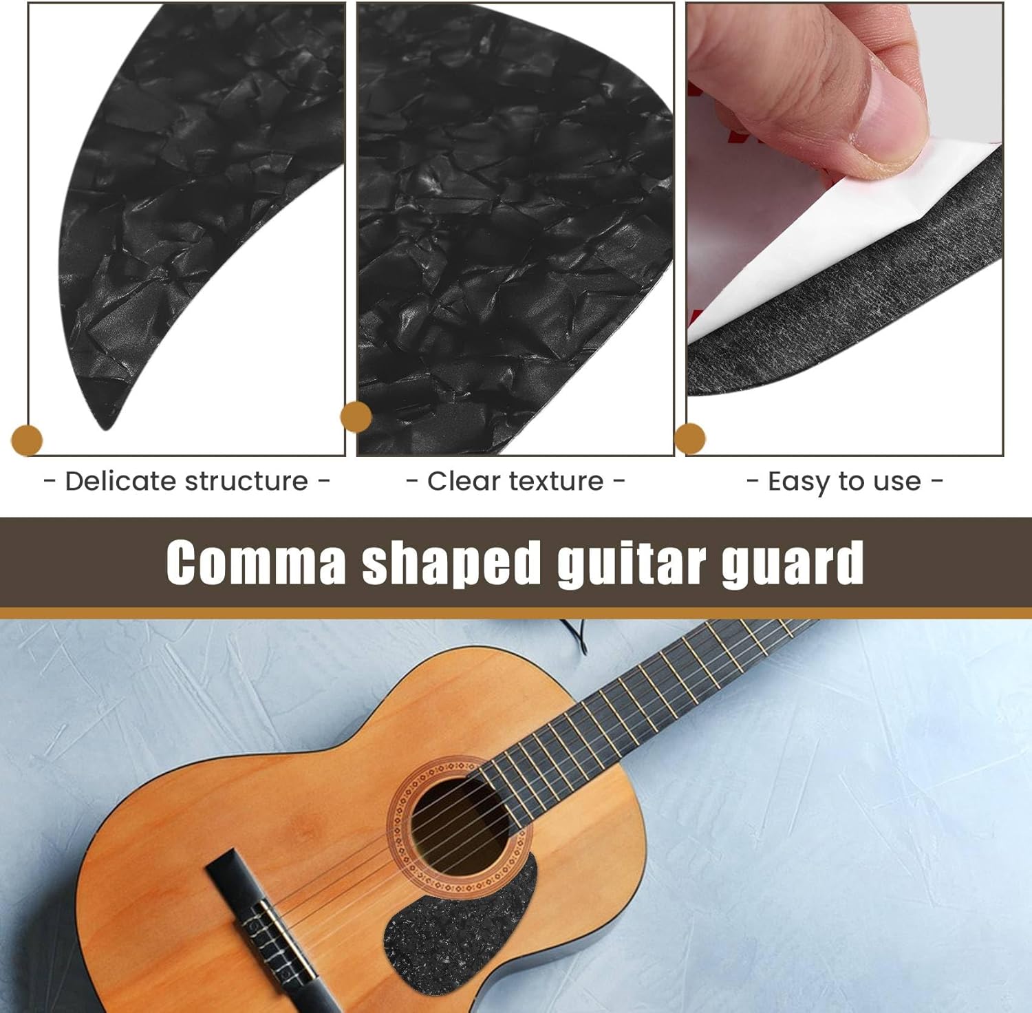 Battipenna a forma di virgola utilizzato per la sostituzione di parti di chitarra acustica. Anti-graffio per proteggere la chitarra, Proteggi la tua chitarra e anche un bel . È autoadesivo sul retro, lo si scopre e si attacca alla chitarra.