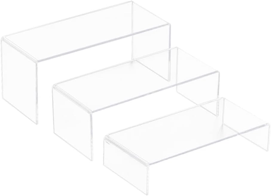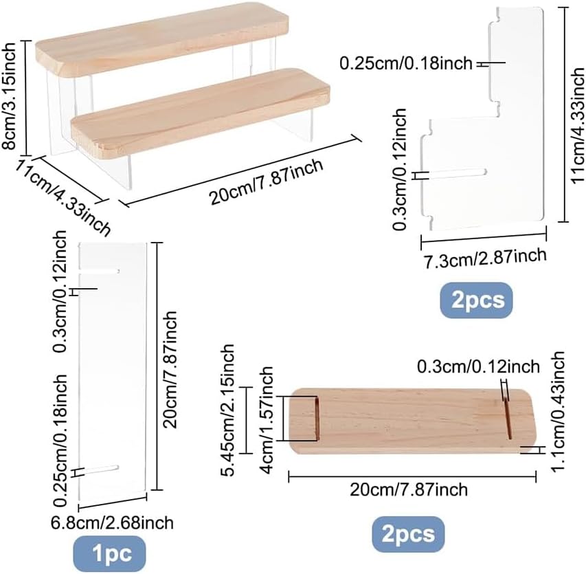 [Display ]: mostra oggetti da collezione, miniature, dessert e oggetti di con orgoglio e sicurezza utilizzando i nostri display step-down. Esaltano i tuoi tesori preferiti, rendendoli pienamente visibili. [Dimensioni complessive]: base in legno: 20x5,45x1,1 cm, 2 pezzi, tavola acrilica: 20x6,8x0,25 cm, 1 pezzo; Tavola acrilica: 11x7,3x0,25 cm, 2 pezzi. è utile tutto nel tuo armadietto. [Materiale]: espositore in legno massello spesso di alta qualità e supporto in acrilico trasparente, , durevole e facile da montare. [Laminazione superficiale]: entrambi i lati del supporto del display una pellicola protettiva per evitare graffi. Si prega di rimuovere lo strato sottile prima 'uso, si avrà un ripiano a gradini cristallino e immacolato [Occasioni applicabili]: questi espositori possono essere posizionati su scaffali, armadietti e banconi. Sono popolari per le presentazioni di vendita nei punti vendita, per l'esposizione della merce e per la decorazione.