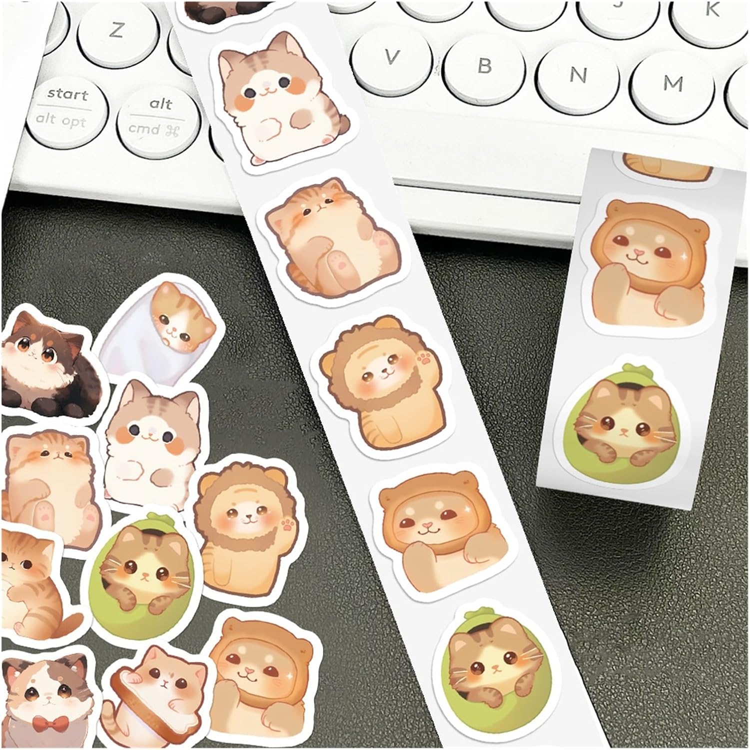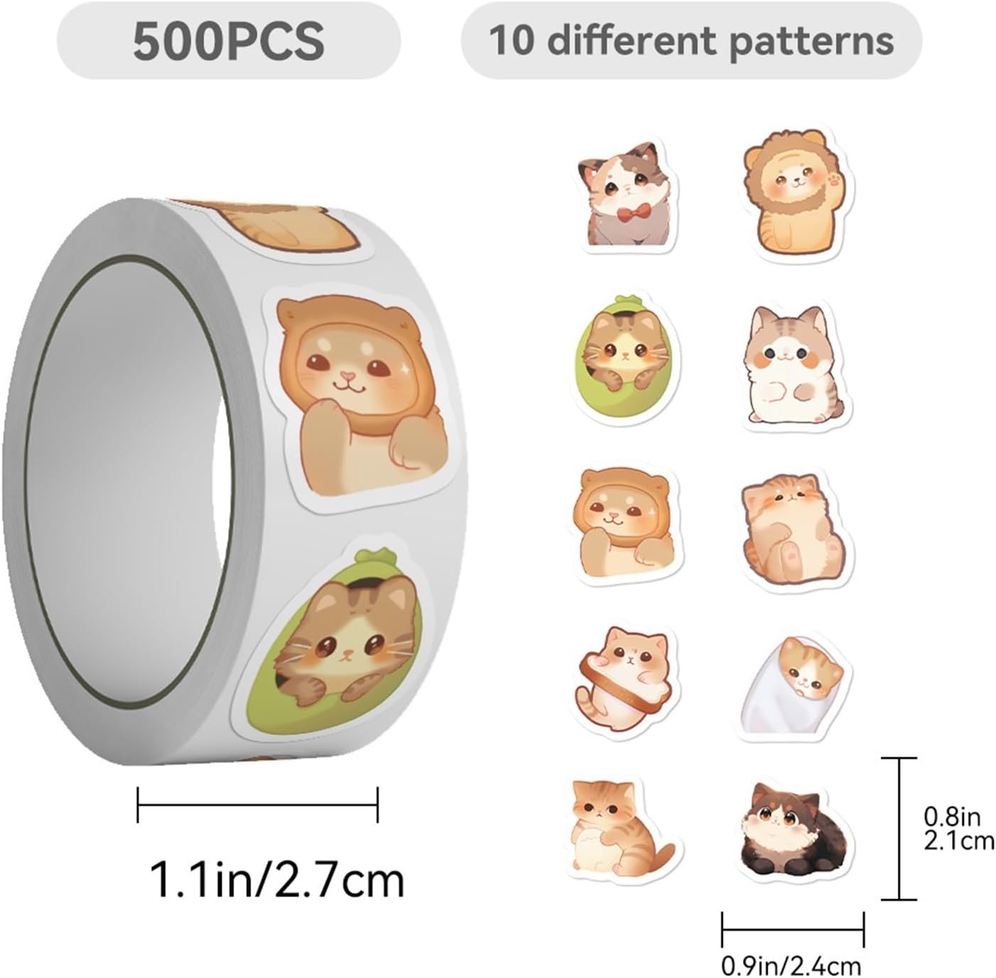 1 rotolo da 500 etichette adesive a forma di gatto con occhi grandi, stile Kawaii, per diari, confezioni regalo, adolescenti, ragazze