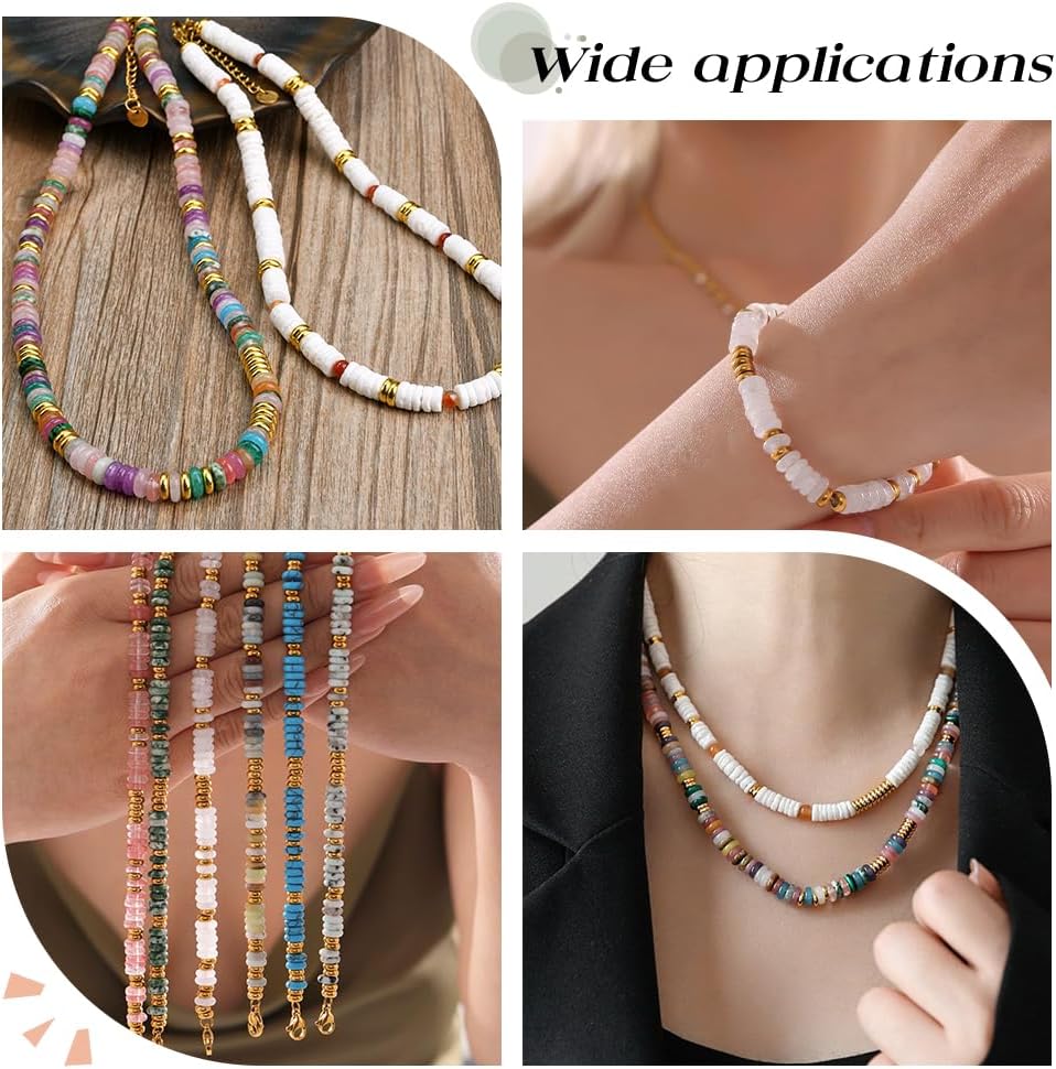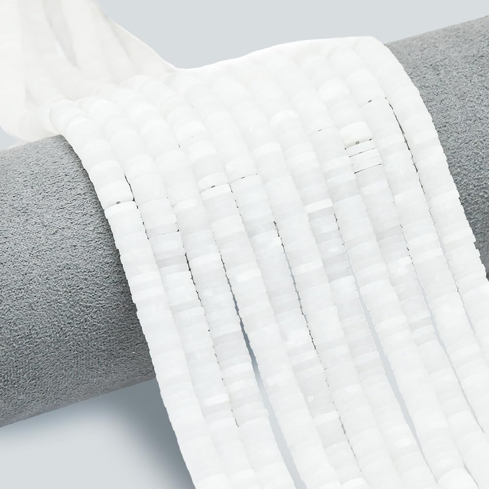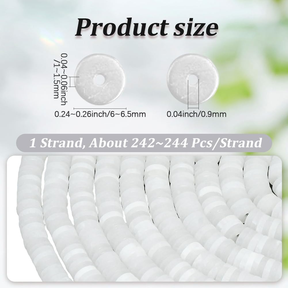 242 pezzo di perline a disco di giada bianca:le perline a disco di giada bianca simboleggiano purezza e buona fortuna, spero che tu abbia fortuna ogni giorno quando usi le perle di giada bianca Perline di pietra di giada bianca:le perline di pietra di giada bianca presentano una consistenza opaca satinata e una forma a disco uniforme, perfetto per la creazione di gioielli e la creazione di gioielli spirituali che promuovono l'equilibrio e costituiscono un regalo significativo con eleganza terrena Dimensioni:ci sono 242 perlina rotonda sottile heishi in totale. Perline heishi rotonde:circa 6mm (0.24 pollici) di diametro, 1mm (0.04 pollici) di spessore, foro:0.9mm (0.04 pollici) Perline a disco bianche di alta qualità:queste resistenti perline di giada heishi a disco da 6.5mm di durezza presentano una splendida lucentezza grassa di montone, difficile, consistenza naturale Ampia applicazione:crea braccialetti e collane di tutti i giorni con perline distanziatrici in giada che sono facilmente adattabili a una varietà di occasioni. Queste perline piatte bianche possono essere utilizzate per creare un intero filo di braccialetti o una singola perlina distanziatrice, che si abbina perfettamente ai componenti di gioielleria in oro o argento