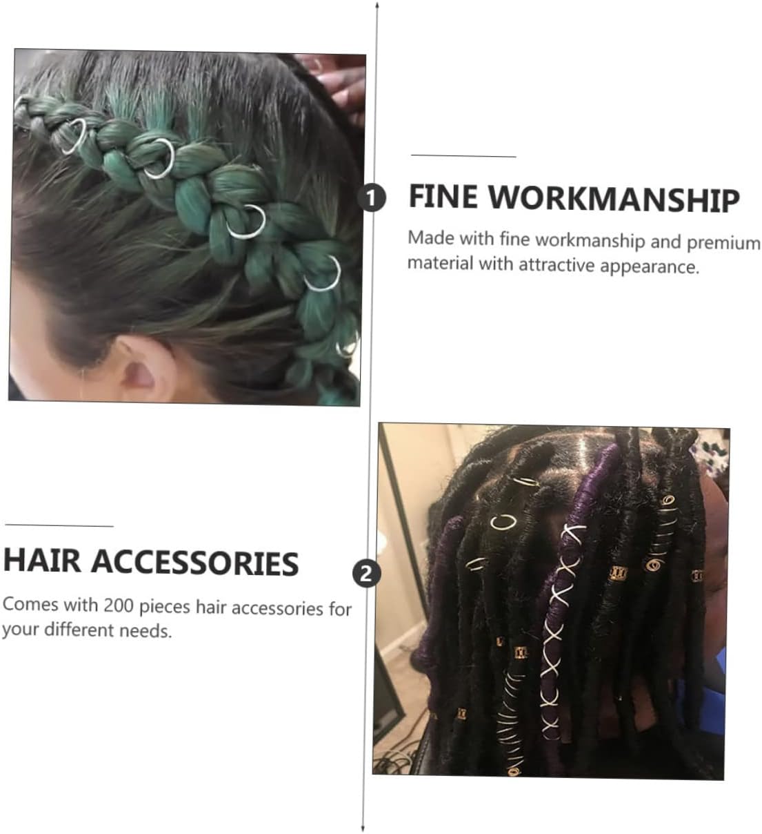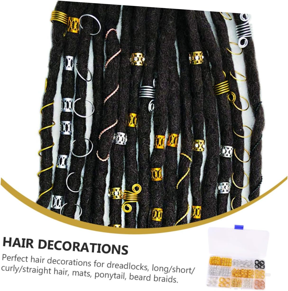 Treccia: realizzata in materiale resistente. Tubo per capelli fai-da-te: viene fornito con 200 accessori per capelli per le tue diverse esigenze. Fornitura di dreadlocks: perfetti per ornamenti di fotografia di strada, feste, balli e decorazioni per spettacoli. Anello da donna: un fantastico anello per i tuoi amici e familiari. Polsini per dreadlocks: un buon sostituto per polsini per dreadlocks rotti o usurati.