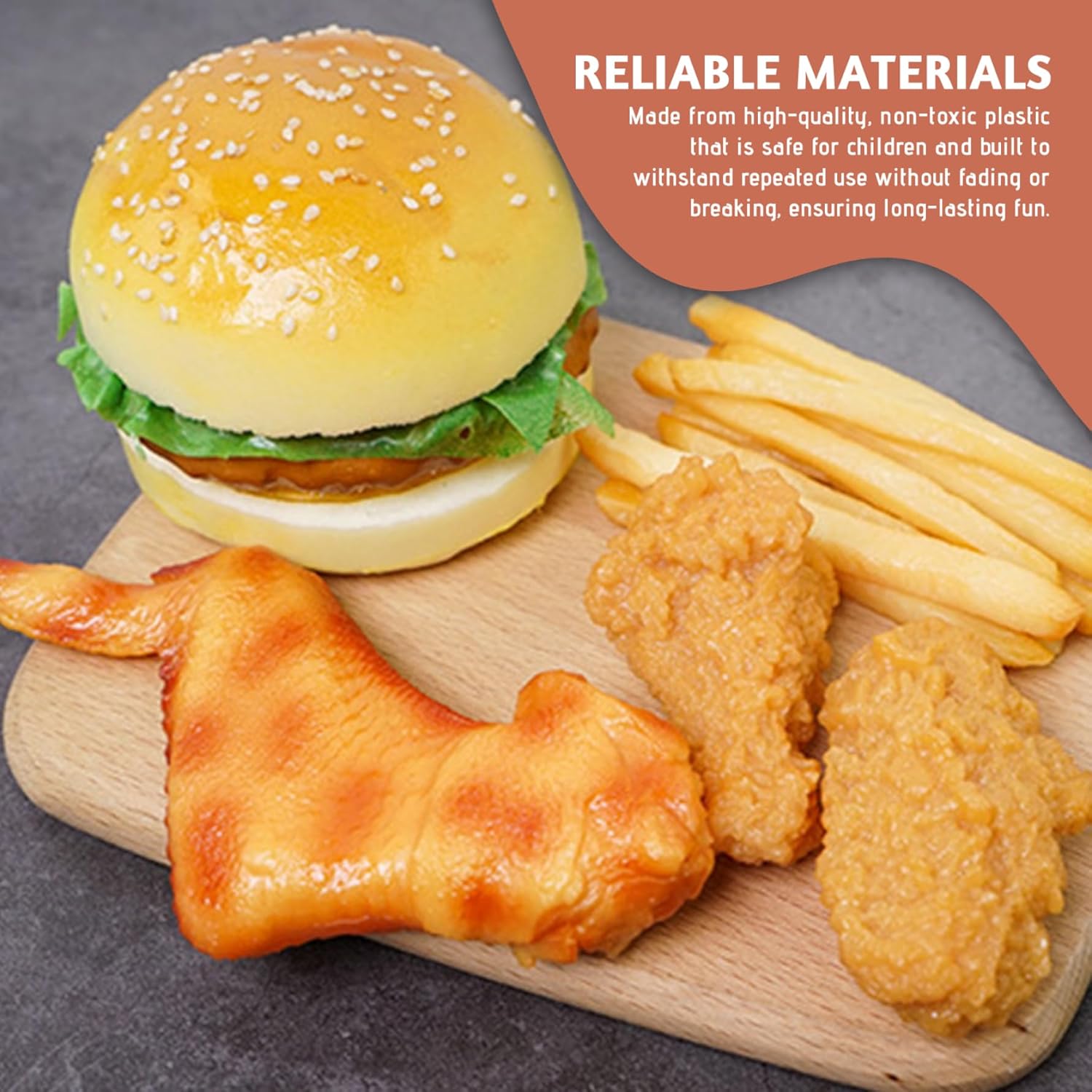 Materiali affidabili: realizzato in plastica di alta qualità e non tossica che è sicura per i bambini e costruita per resistere all'uso ripetuto senza sbiadire o rompere, garantendo un divertimento duraturo. Set di pasti completo: include favoriti popolari come hamburger, pollo fritto e patatine fritte, aiutando i bambini a conoscere le categorie di cibo incoraggiando il gioco di ruolo e l'interazione sociale. Opzioni di utilizzo versatili: perfetto per cucine da gioco, giocattoli alimentari, decorazioni per feste o oggetti di scena, offrendo valore multifunzionale per il gioco creativo dei bambini e le configurazioni festive. Food di gioco realistico: realizzato con trame dettagliate e colori vibranti, questo set di cibo in plastica artificiale sembra proprio come la cosa reale, migliorando il gioco immaginativo e rendendo le decorazioni di Halloween più vivaci. Facile da pulire e archiviare: le superfici lisce consentono una pulizia rapida dopo il gioco e le dimensioni compatte garantiscono una comoda conservazione, rendendo questo impostato senza problemi per i genitori e ideale per l'uso quotidiano.