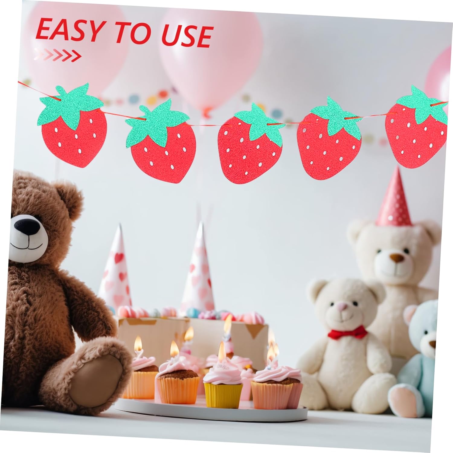Banner per festa alla fragola: trasforma la tua festa di compleanno in un bizzarro paese delle meraviglie con le nostre adorabili decorazioni a tema compleanno alla fragola. Decorazione con fragole da appendere: progettate per essere appese e rimosse facilmente, queste decorazioni garantiscono un'organizzazione e uno svolgimento della festa senza stress, festa delle fragole. Decorazioni per feste alla fragola: queste decorazioni sono pratiche e facili da installare e rimuovere, rendendo la preparazione della festa un gioco da ragazzi. Forniture per feste di compleanno alla fragola. Banner di compleanno con fragole: crea un'atmosfera calda e lascia una profonda impressione sugli ospiti con un design raffinato e decorazioni con fragole. Decorazioni per feste alla fragola - Lo striscione con un adorabile design a fragola aggiungerà un tocco di fascino e dolcezza allo striscione della tua festa per il giorno speciale.