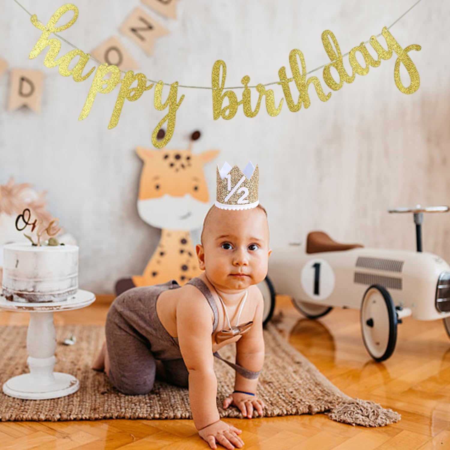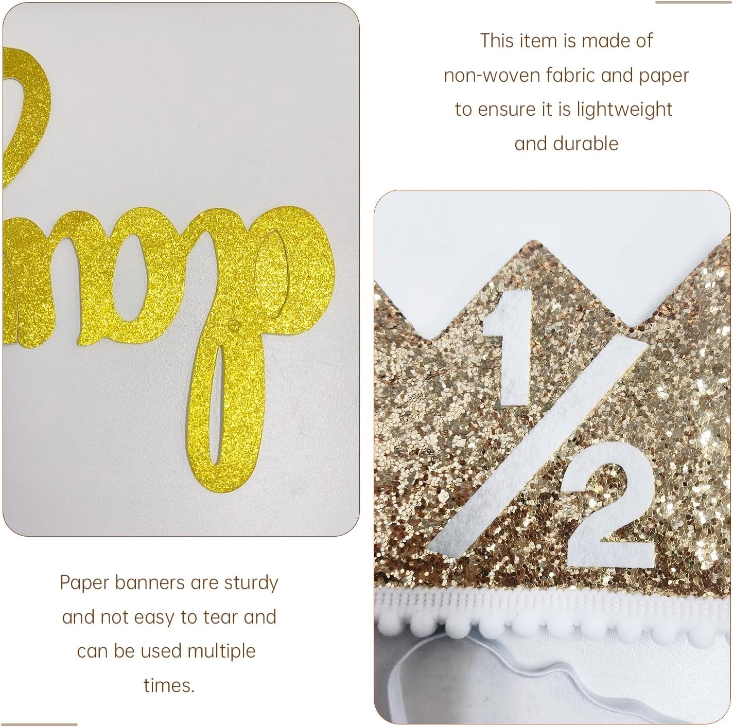 【Contenuto Del Prodotto】 Riceverai Una Decorazione Di Compleanno A Giugno. Contiene Un Cappello A Corona Di Compleanno Di Mezzo Anno (Lunghezza Di Circa 28 Cm) E 1 Striscione Di Buon Compleanno (Lungo Circa 3 Metri), Adatto Per Feste Di Compleanno Per Bambini E Oggetti Di Scena. 【Materiale Del Prodotto】 Questo Prodotto È Realizzato Con Tessuti E Carta Non Di Lusso Per Garantire Che Sia Leggero E Resistente. Il Tessuto Non Esclusivo È Morbido E Confortevole, Adatto Ai Bambini. Lo Striscione Di Carta È Resistente, Non Facile Da Strappare E Può Essere Utilizzato Più Volte. 【Design Unico】 Questo Prodotto È Unico. Il Design Unico Aggiunge Gioia E Calore Alla Tua Festa. 【Facile Da Usare】 Questo Prodotto È Facile Da Installare E Non Richiede Strumenti E Passaggi Complicati. Il Design Del Cappello A Corona È Semplice E Facile Da Indossare. 【Ampia Applicazione】 Non È Applicabile Solo Alla Festa Di Compleanno Del Bambino, Ma Può Anche Essere Utilizzato Come Supporto Fotografico Domestico Per Aggiungere Divertimento E Personalità Alle Tue Foto. Adatto A Varie Celebrazioni E Riunioni È La Scelta Ideale Per Creare Un'Atmosfera Felice.