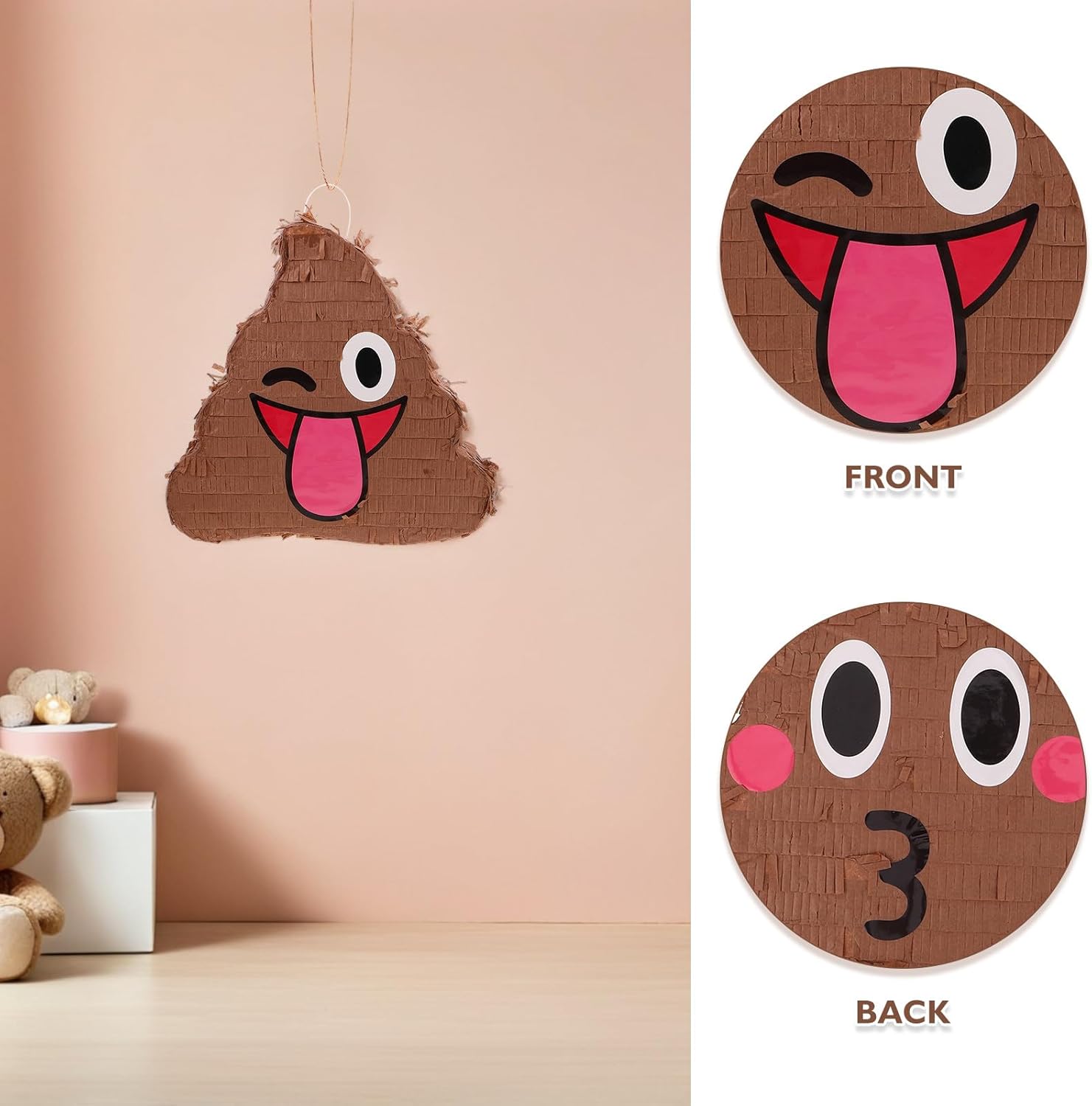 Design divertente: questa pignatta decorativa per feste a tema aggiunge un elemento giocoso alla tua festa, assicurandosi che si distingua Interazione familiare: adatta ai bambini che agli adulti, questa pignatta favorisce il coinvolgimento della famiglia e aumenta l'atmosfera della festa Comodo da appendere: adatto a molteplici ambienti per feste, questa pignatta è facile da appendere e aggiunge fascino decorativo Gioco emozionante: l'attività di schiacciamento delle caramelle con questa pignatta intrattiene tutti e crea ricordi duraturi Momento clou della festa: un'aggiunta fondamentale a qualsiasi celebrazione, questa pignatta sorprende gli ospiti e aggiunge un tocco divertente ai tradizionali giochi da festa