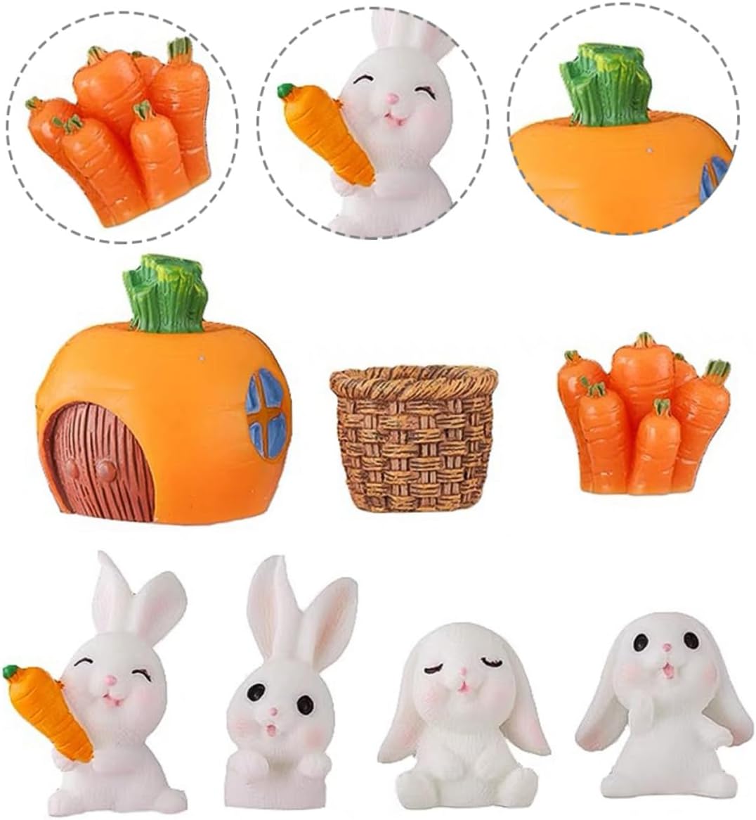 Statuine di coniglio da giardino: sono perfette per qualsiasi giardino in miniatura, casa delle bambole, decorazione di torte, decorazioni pasquali, ecc., così come per la scultura del segno zodiacale cinese Decorazione del cruscotto dell'auto: con abbastanza, queste statuine di coniglio possono soddisfare le tue varie esigenze di utilizzo e visive, statuine in miniatura Auto in miniatura di coniglio: con il design vivido e simile a un cartone animato del coniglio, aggiungi di più al layout della scena e alla decorazione in miniatura Vivacità Ornamenti di coniglietto in miniatura: con pregevole fattura, che sembra speciale e unico, sono una decorazione per la scena del tuo prato, statuine di coniglio in miniatura Statuine di coniglio: queste decorazioni di coniglio sono in diversi gesti e forme, mini figurine di coniglio molto delicate e affascinanti