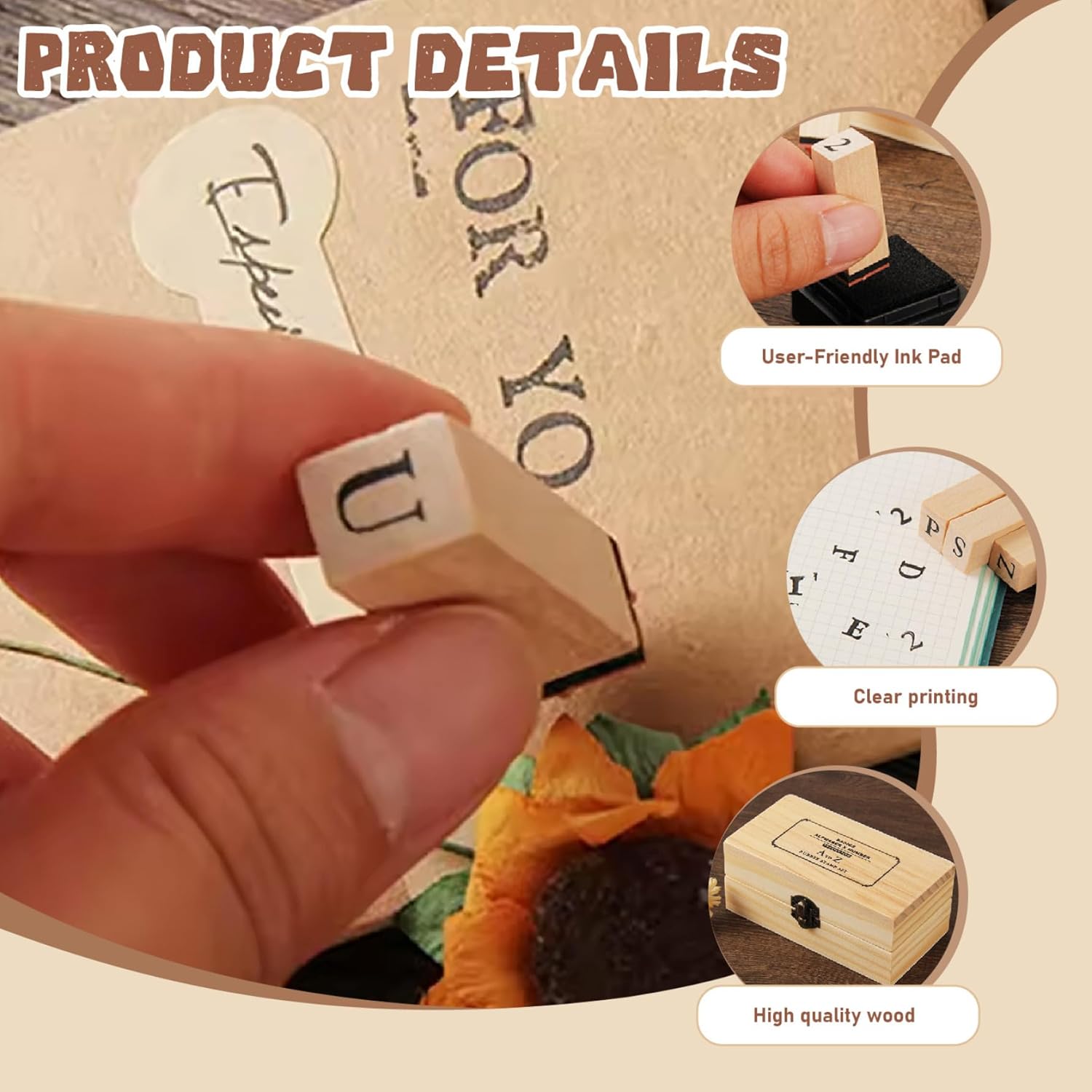 Pad di inchiostro intuitivo: il pad di inchiostro incluso offre un ricco inchiostro nero che funziona magnificamente su argilla e carta, garantendo che i tuoi francobolli forniscano costantemente impressioni audaci e vibranti con un disordine minimo. Scatola di legno compatta: la scatola di legno inclusa mantiene tutti i francobolli organizzati e facilmente accessibili, rendendo comodo per conservare e trasportare le forniture di timbratura per sessioni di realizzazione in movimento. Design di legno di qualità: ogni timbro è realizzato in legno, garantendo un'esperienza di stampaggio robusta e affidabile..Le impressioni finemente dettagliate producono ogni volta lettere e numeri croccanti e chiari. Perfetto per vari progetti: ideale per la creazione di carte, gli scrapbooking e i disegni di argilla, questi francobolli lettere ti consentono di personalizzare artigianato e regali, aggiungendo un tocco unico a tutti i tuoi progetti creativi. Kit di stampaggio delle lettere completo: questo set include una collezione completa di mini francobolli di lettere in legno, numeri e un pad di inchiostro nero, fornendo tutto ciò di cui hai bisogno per creare facilmente motivi di disegni stampati.