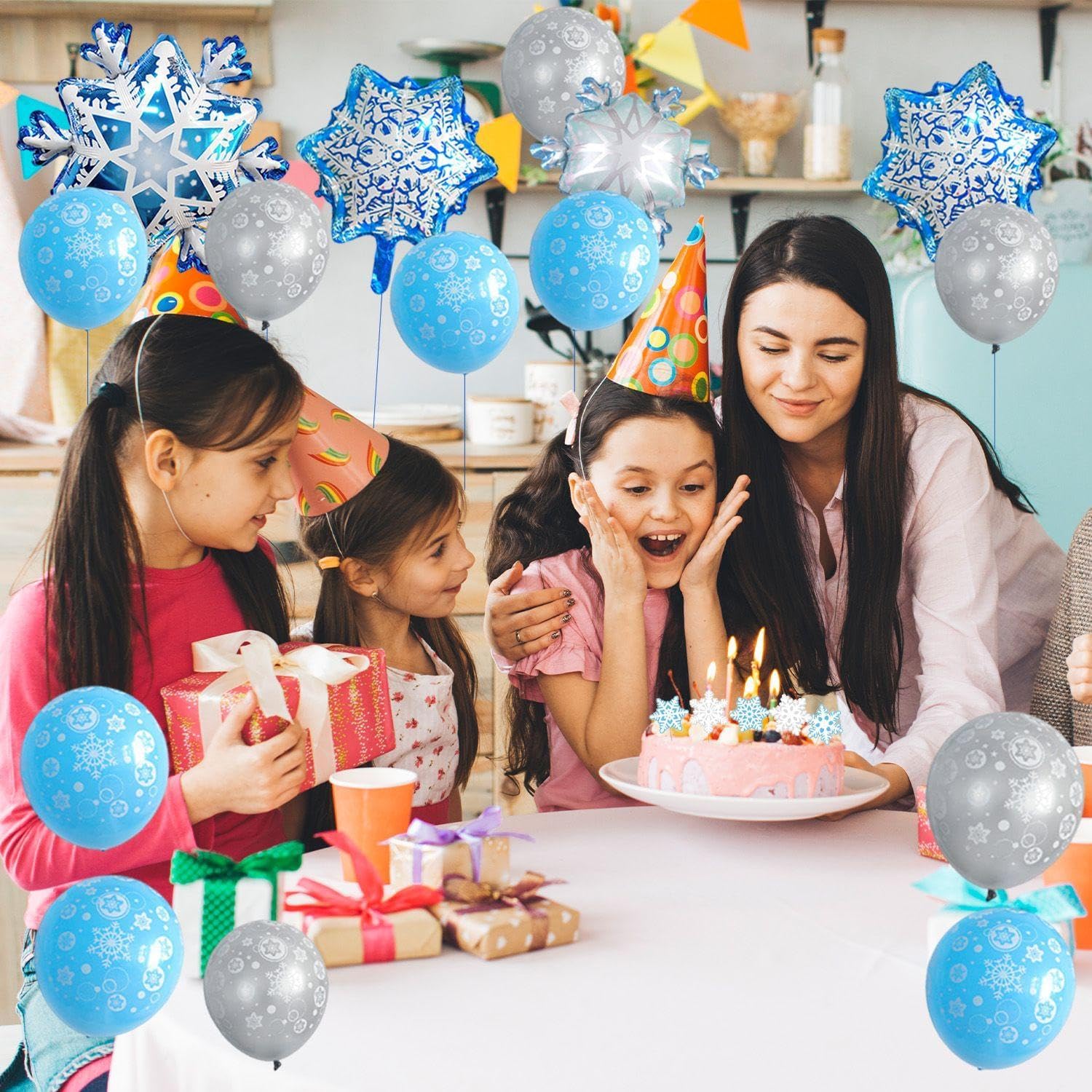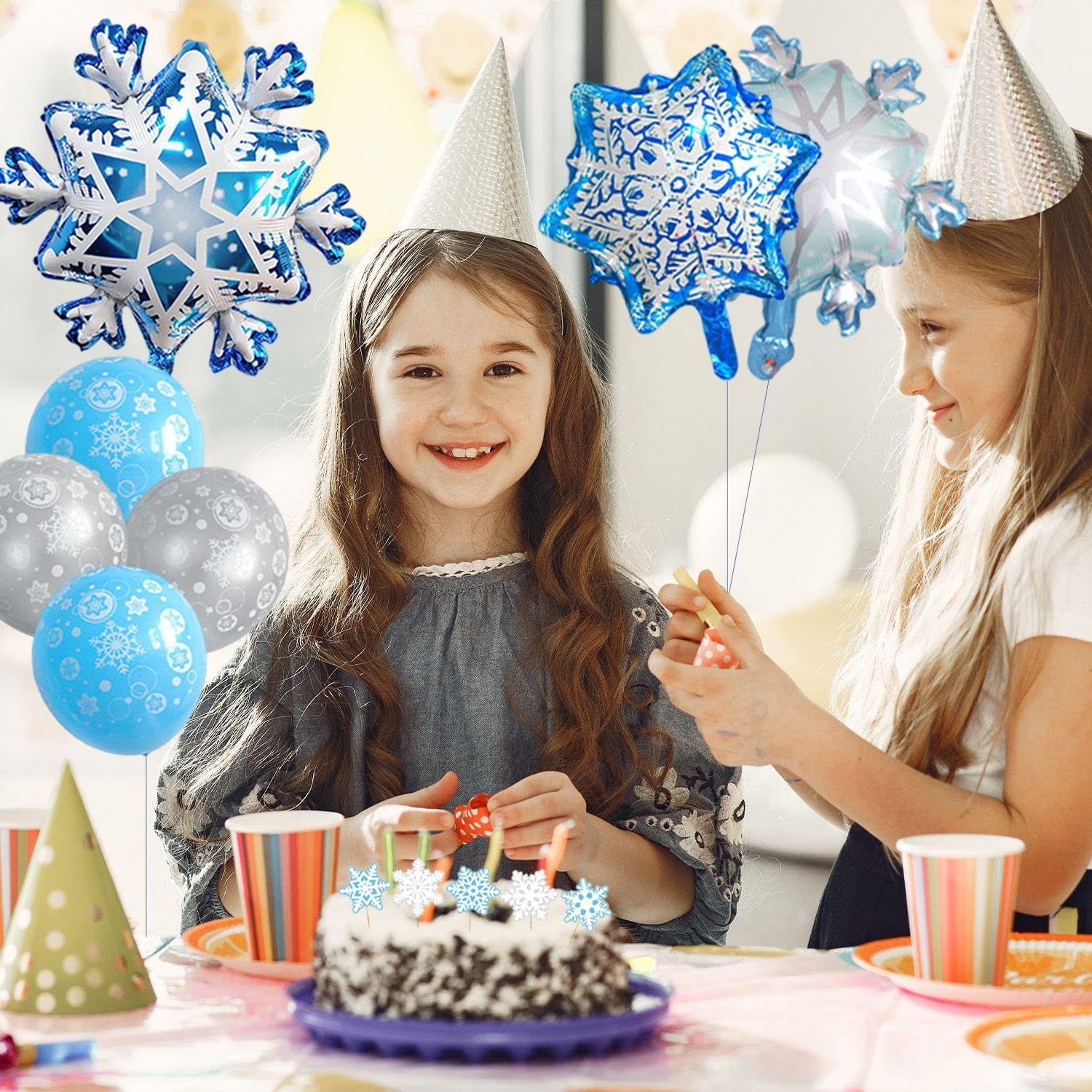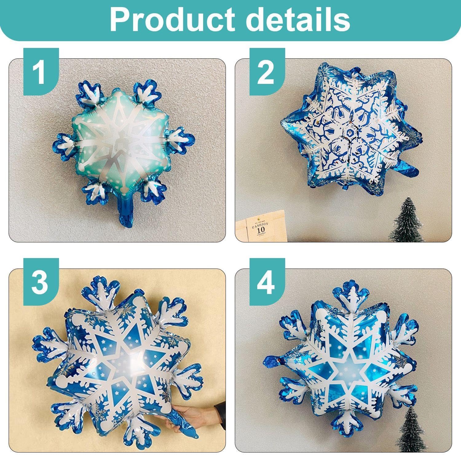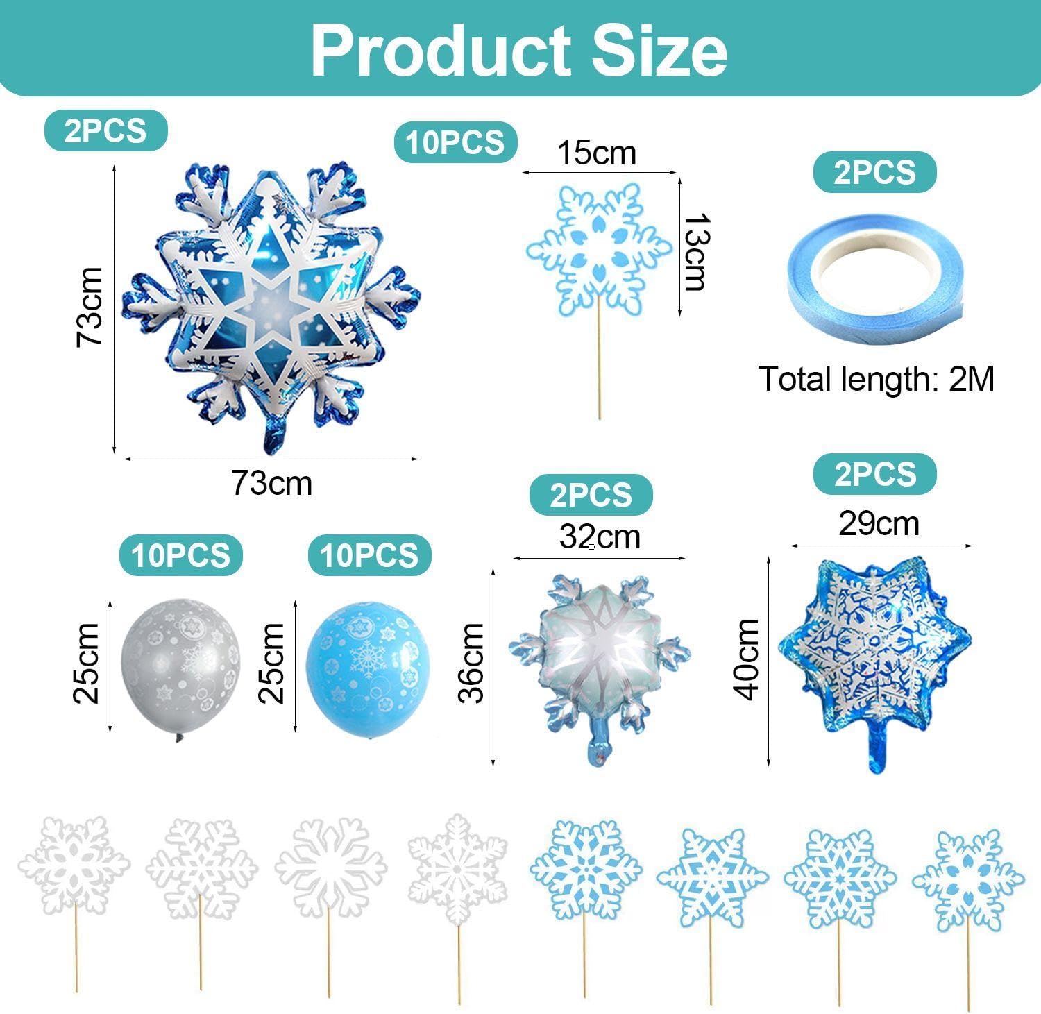 【Contenuto Del Prodotto】 Riceverai 1 Set Di Palloncini A Tema Snowflake, 2 Pezzi Di Nastri Da 5 Metri E 8 Pezzi Di Inserti Per La Carta Per Torta. I Palloncini Sono Rispettivamente Di Circa 73*73 Cm E 29*40 Cm, Con Colori In Blu E Grigio; Il Nastro È Blu E 5 M; L'Inserimento Della Carta È Blu E Bianco, Con Dimensioni In Circa 10 Cm, Che È Adatto Per Il Layout E La Decorazione Delle Scene. 【Materiale Del Prodotto】 I Palloncini Sono Realizzati In Pellicola In Alluminio/Foglio Di Alluminio, I Nastri Sono Realizzati In Carta E Gli Inserti Delle Carte Sono Realizzati In Carta E Bambù. Il Materiale Del Film In Alluminio Rende Il Palloncino Più Resistente E Non Facile Da Rompere. Il Nastro Di Carta E L'Inserto Delle Carte Sono Leggeri E Rispettosi Dell'Ambiente, Adatti A Varie Esigenze Di Decorazione. 【Design Creativo】 Questo Prodotto È Progettato Con Un Tema Del Fiocchi Di Neve, Inclusi Palloncini Blu E Grigi, Abbinati A Nastri Blu E Inserti Per La Carta Per Torta A Forma Di Neve. Il Design Generale È Elee E Bello, Che Può Aggiungere Un'Atmosfera Invernale E Un'Atmosfera Gioiosa Alla Tua Festa. 【Facile Da Usare】 Questo Set Di Forniture Per Feste È Semplice Da Installare, Il Palloncino Può Essere Gonfiabile Direttamente, Il Nastro Può Essere Utilizzato Per Impiccagione O Decorazione, L'Inserimento Della Carta Della Torta Deve Solo Essere Inserita Nella Torta O Nella Posizione Decorativa, Che È Conveniente E Rapido, Rendendo La Tua Disposizione Del Partito Rilassata E Piacevole. 【Ampiamente Usato】 Adatto Per Feste A Tema Invernale, Feste Di Compleanno, Celebrazioni Del Festival E Varie Attività Di Intrattenimento. Questi Decorazioni Creativi Possono Essere Utilizzati Non Solo Per La Decorazione D'Interni Ma Anche Per Le Attività All'Aperto, Aggiungendo Fascino Unico E Divertimento Alla Tua Festa.