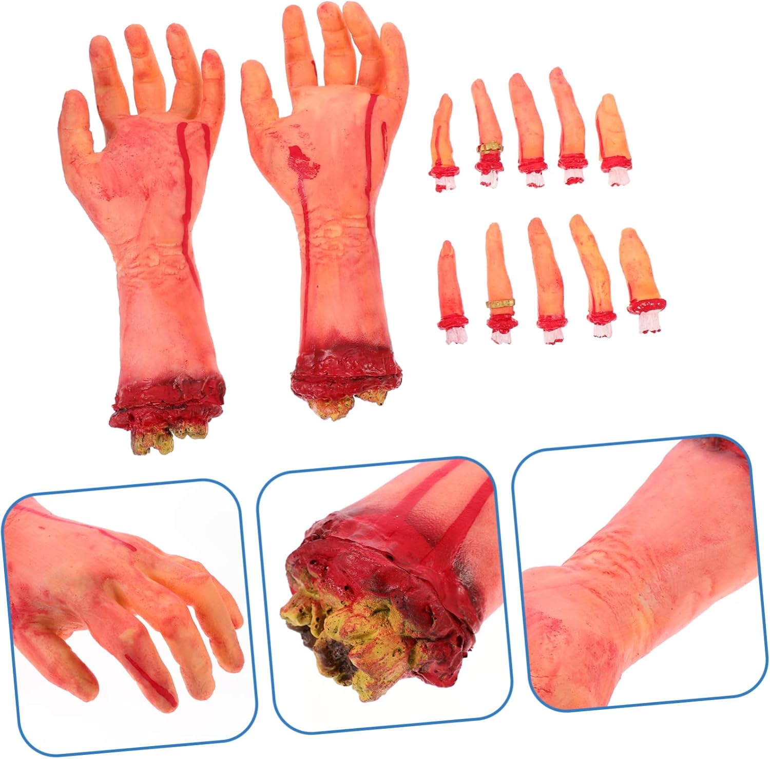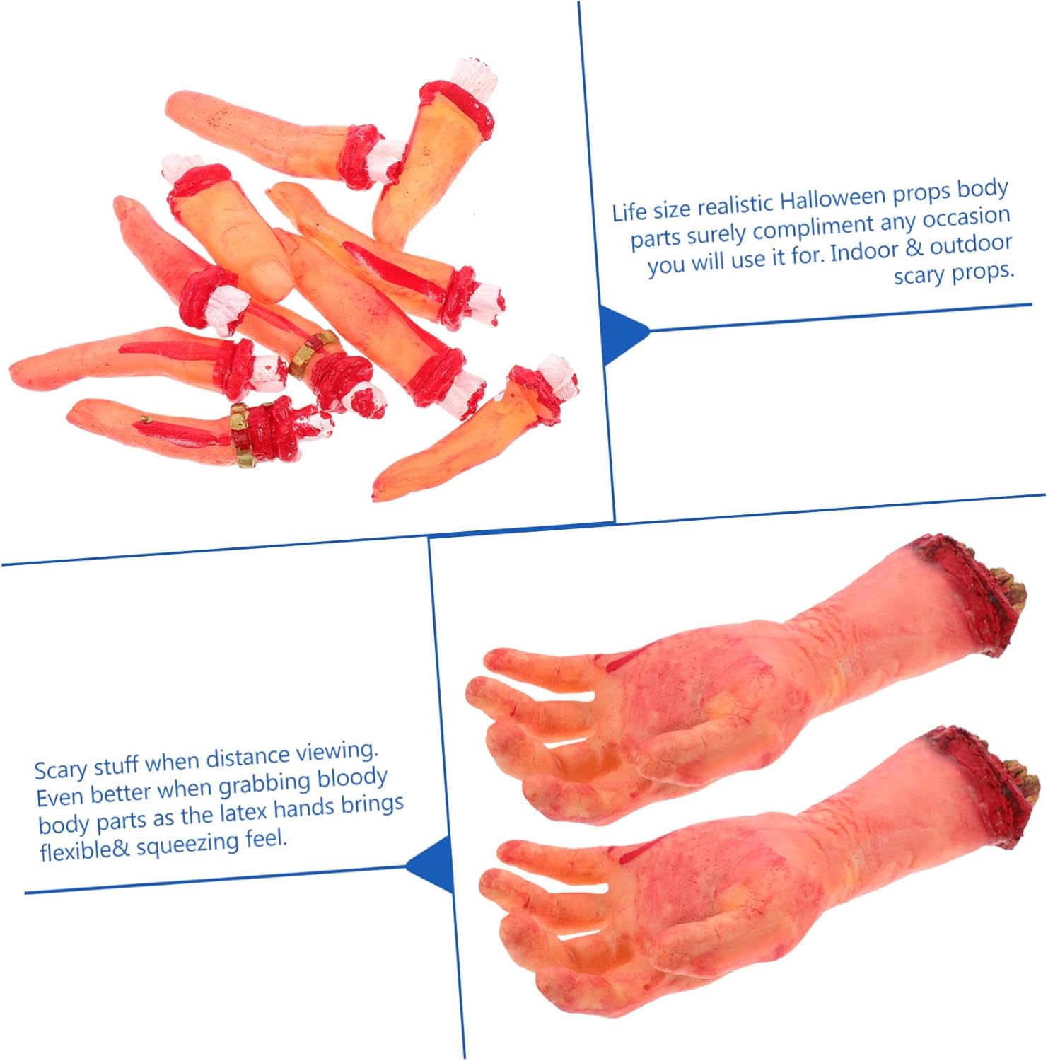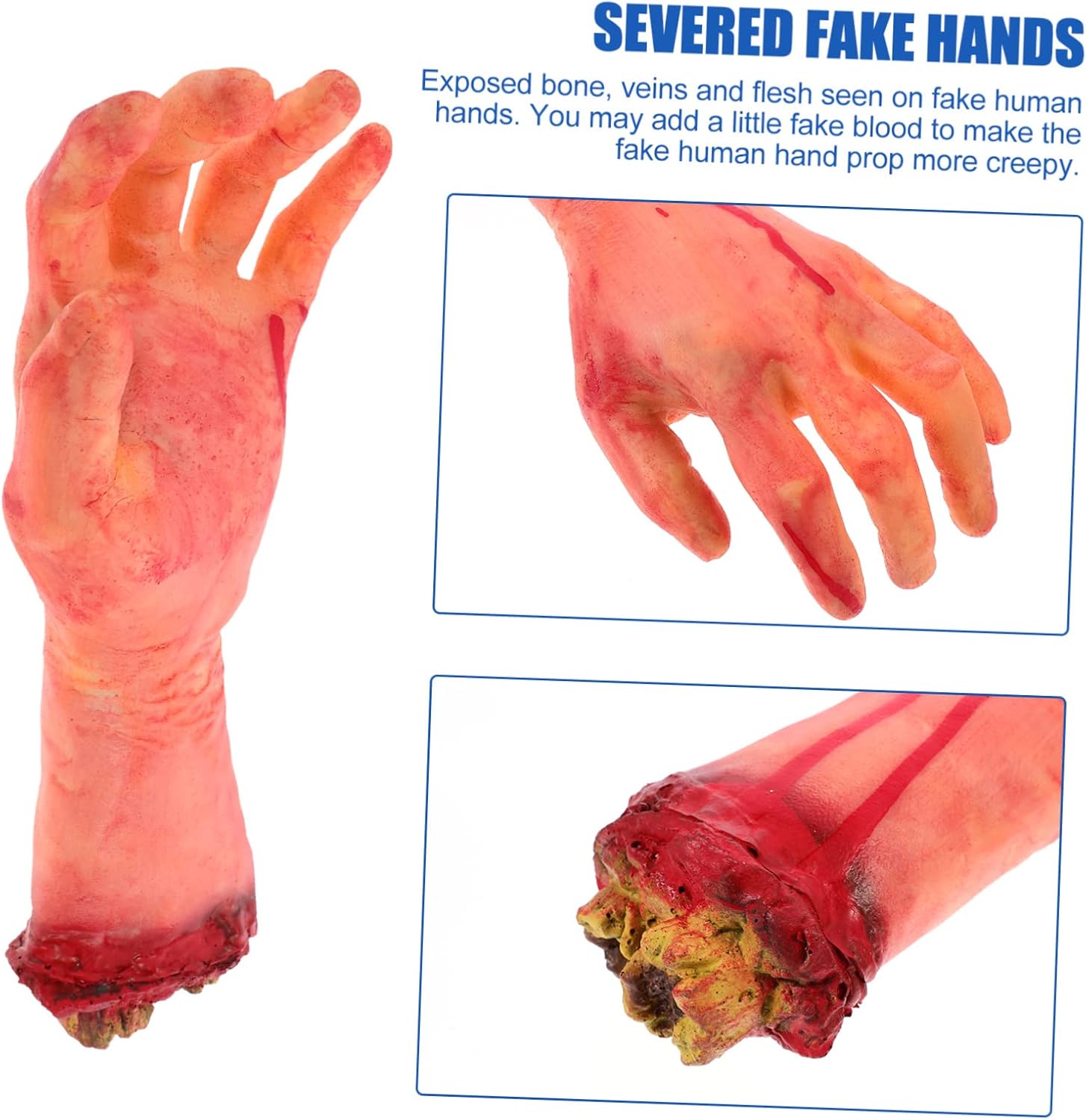 Oggetti di scena spaventosi horror: oggetti di scena realistici di Halloween a grandezza naturale, le parti del corpo si adatteranno sicuramente a qualsiasi occasione in cui li usi, uso interno ed esterno, oggetti di scena spaventosi, decorazioni di parti del corpo. Mano rotta di Halloween: roba spaventosa da lontano, che afferra ancora parti del corpo, poiché le mani in lattice danno una sensazione di compressione flessibile, adatta anche per decorare barattoli di vetro, parti del corpo finte. Accessorio per festa in maschera: la mano spaventosa può essere facilmente appesa al muro, alla porta, alla finestra e in altri luoghi con una corda per creare un'atmosfera terrificante, parte del corpo di Halloween. Decorazioni di Halloween della casa stregata: questo è un oggetto artificiale per mani insanguinate realizzato in lattice e cotone di seta per Halloween, che crea un'atmosfera terrificante e stimolante, parti del corpo insanguinate. Decorazioni per il ballo di fine anno: regala a te, ai tuoi amici e ai tuoi ospiti un'indimenticabile casa stregata o un'esperienza di festa, decorazioni per la parte del corpo di Halloween.