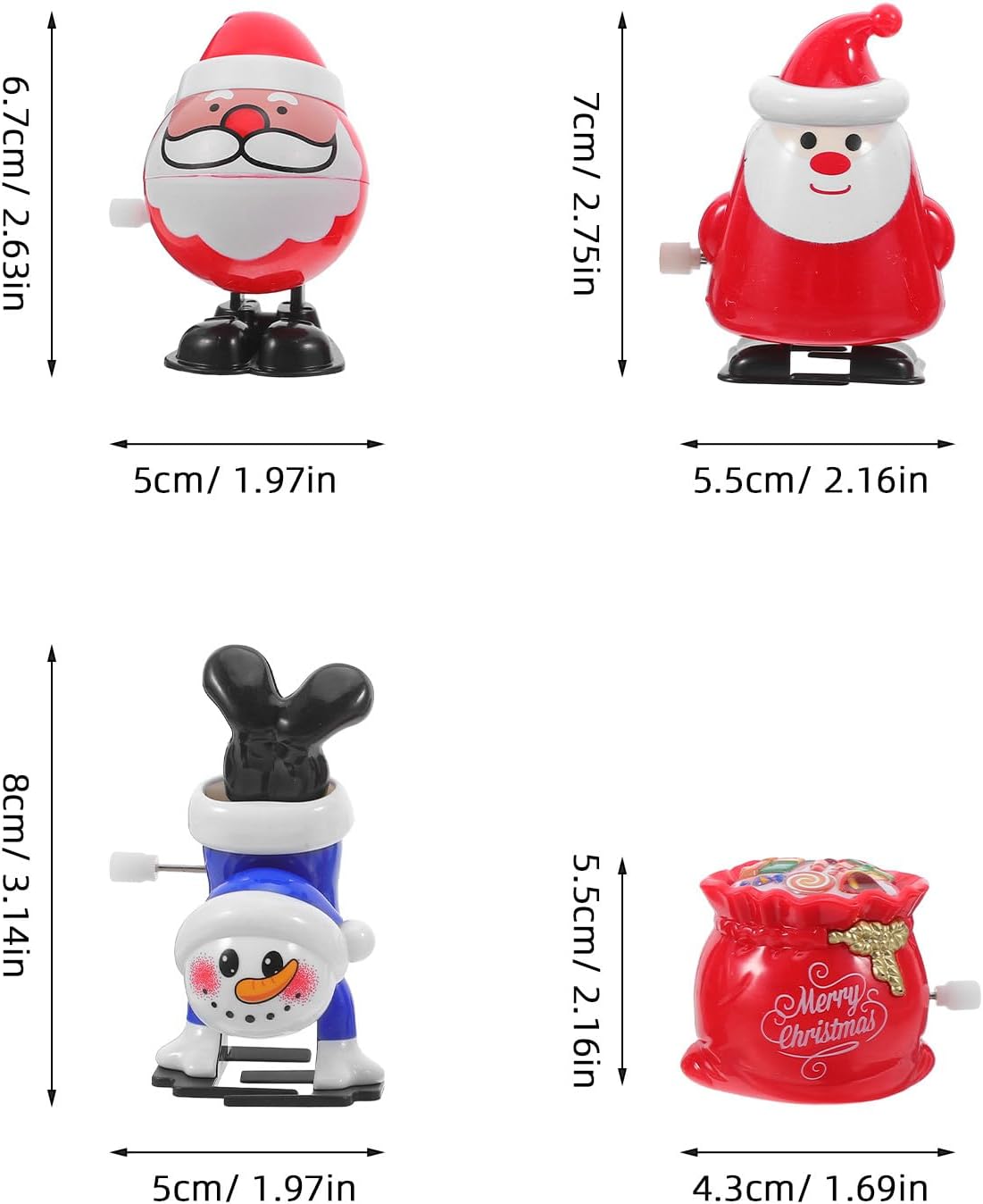 Varietà festiva: scegli tra diversi design a tema festivo, tra cui Babbo Natale, renne e pupazzi di neve, per aggiungere un tocco giocoso alle tue celebrazioni natalizie Gioco interattivo: questi giocattoli sono ideali per coinvolgere bambini e adulti, incoraggiando l'interazione e le risate durante le riunioni festive o il tempo in famiglia Giocattoli compatti a carica per le feste: questi giocattoli a carica presentano un design compatto e leggero, che li rende facili da trasportare e perfetti per le feste di Natale o come riempitivi per le calze. Utilizzo versatile: perfetti come bomboniere, scambio di regali o come oggetti decorativi, questi giocattoli esaltano lo spirito natalizio e momenti memorabili bomboniere con giocattoli a orologeria: goditi il fascino dei tradizionali giocattoli meccanici con un semplice meccanismo a carica, eliminando la necessità di batterie e garantendo un divertimento senza fine