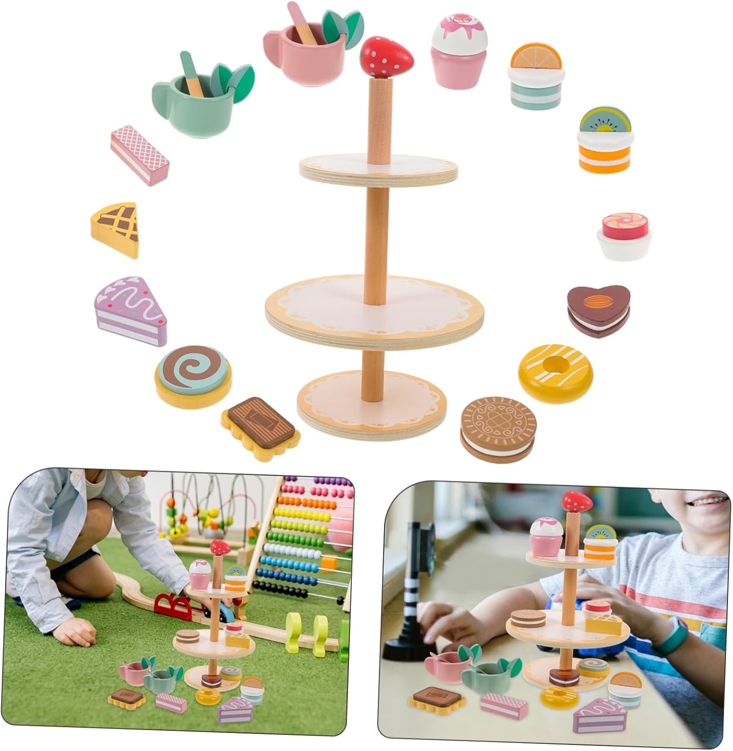 Cibo per giochi di ruolo: grazie al design, i bambini possono facilmente afferrare il mini set da dessert, fornisce un carico di peso aggiuntivo per i bambini, giocattoli per bambini Giocattoli per bambini: questi mini giocattoli sono progettati in modo chiaro, sembrano davvero e sono un giocattolo per giochi di finzione con il loro design e lavorazione eccellente Giocattoli per giochi di ruolo: caratteristiche eccellenti, lavorazione con dettagli incredibili ovunque, giocattolo di simulazione del dessert Giocattoli per bambini: leggero, dimensioni adeguate, questo set per torte in miniatura è molto facile da trasportare e riporre, giocattoli per bambini Cibo da gioco realistico: questo modello di mini cupcake è realizzato con materiali robusti e legno e è realistico e realistico.