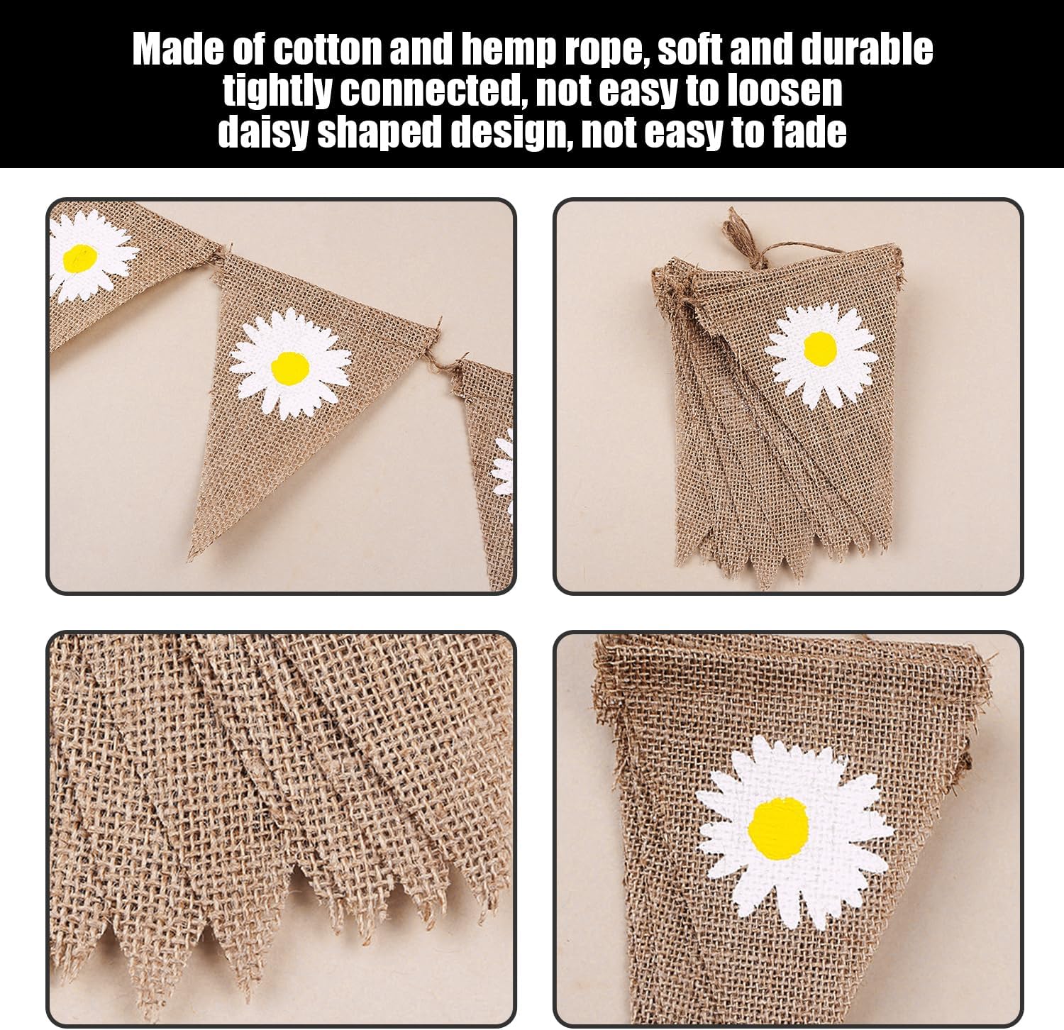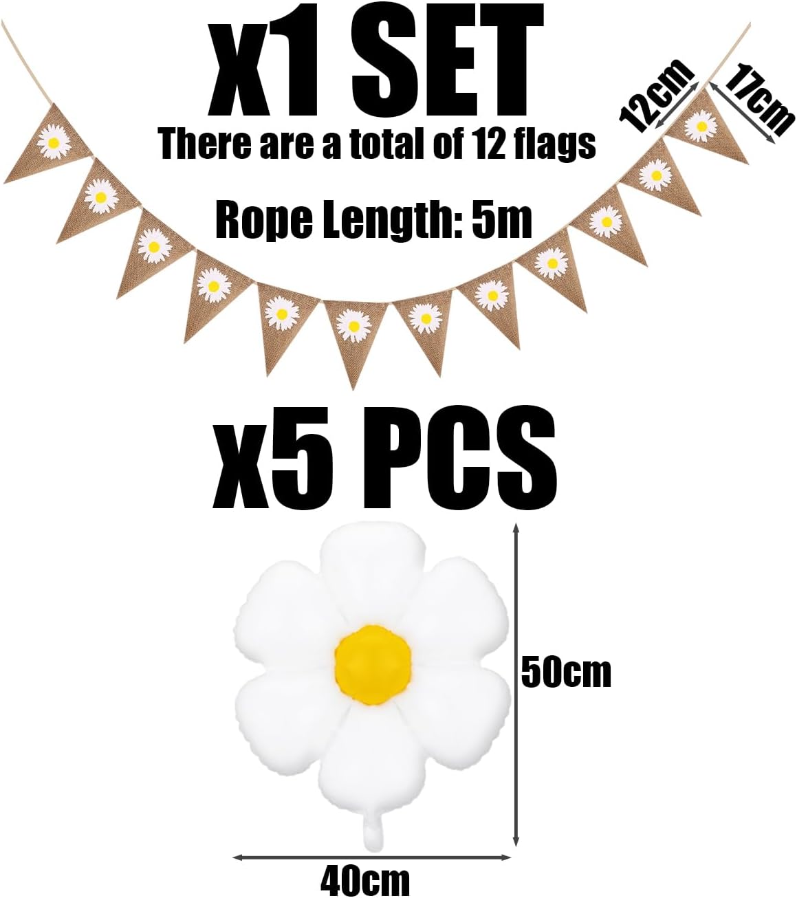 【Contenuto Del Prodotto】 Riceverai 1 Banner Margherita In Tela E 5 Palloncini Margherite. La Dimensione Del Banner Daisy Burlap È Di 12*17 Cm E La Dimensione Del Palloncino Daisy È Di Circa 50*40 Cm, Che È Adatta Alla Decorazione Per Feste Esterne. 【Materiale Del Prodotto】 Lo Stendardo Da Margherita Di Lino Di Questo Prodotto È Realizzato In Lino E Il Palloncino Margherita È Realizzato In Film In Alluminio. È Durevole E Non Si Rompe O Si Sbriciola Facilmente Ed È Adatto A Più Usi. 【Design Unico】 Questo Prodotto È Progettato In Modo Univoco, Con Simpatici Motivi Margherita Stampati Sul Banner Margherita Di Lino, Che Aggiunge Il Divertimento E L'Estetica Della Decorazione. Il Palloncino Daisy Ha Forme Vivide, Che Riecheggiano Il Banner E L'Effetto Complessivo È Coordinato E Unificato. 【Facile Da Installare】 Questo Prodotto È Facile Da Installare. Lo Stendardo Da Margherita Di Lino Può Essere Facilmente Appeso Sul Muro, Sulla Porta O Sul Parasole Per Esterni, E Il Palloncino Margherita Può Essere Gonfiato Con Una Pompa D'Aria E Appeso O Posto, Risparmiando Tempo E Sforzi. 【Ampiamente Utilizzato】 Questo Prodotto È Adatto A Varie Attività Di Feste All'Aperto, Come Feste Di Compleanno, Picnic, Campeggio, Ecc. Può Aggiungere Una Gioia E Un'Atmosfera Calda Al Tuo Evento Ed È Molto Adatto Per L'Uso Come Prodotto Di Decorazione.