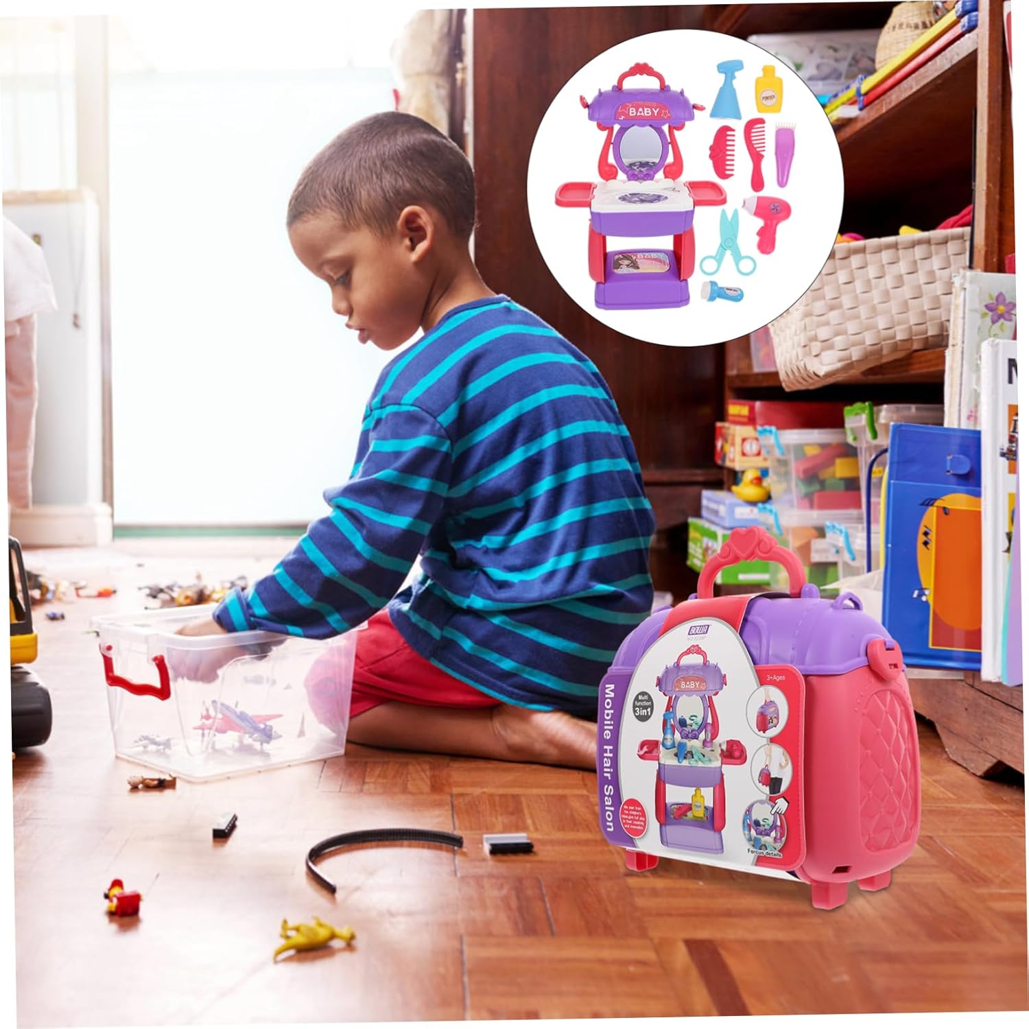 Giocattoli cognitivi: interessanti che regalano ai bambini un'infanzia felice, non solo quella con telefoni cellulari, giocattoli di bellezza, giochi di ruolo da parrucchiere: aiuta a sviluppare la mente, la creatività e la capacità di pensiero dei bambini e ad allenare la coordinazione occhio-mano e la mobilità della mano in modo indipendente. Divertente giocattolo da parrucchiere per giocattoli da parrucchiere in plastica per: le bambine possono giocare di ruolo, giochi da parrucchiere, giochi da salone di bellezza e travestimenti, stimolando l'immaginazione e la creatività. Simulazione salone di bellezza per parrucchieri giocattolo: ha un design divertente e creativo che ne garantisce popolarità e praticità tra i bambini. Simulazione educativa per l'acconciatura dei capelli: con un design aerodinamico e una pratica borsa per il trasporto, ideale per insegnare ai più piccoli come riordinare i propri giocattoli., set da gioco per salone di bellezza per