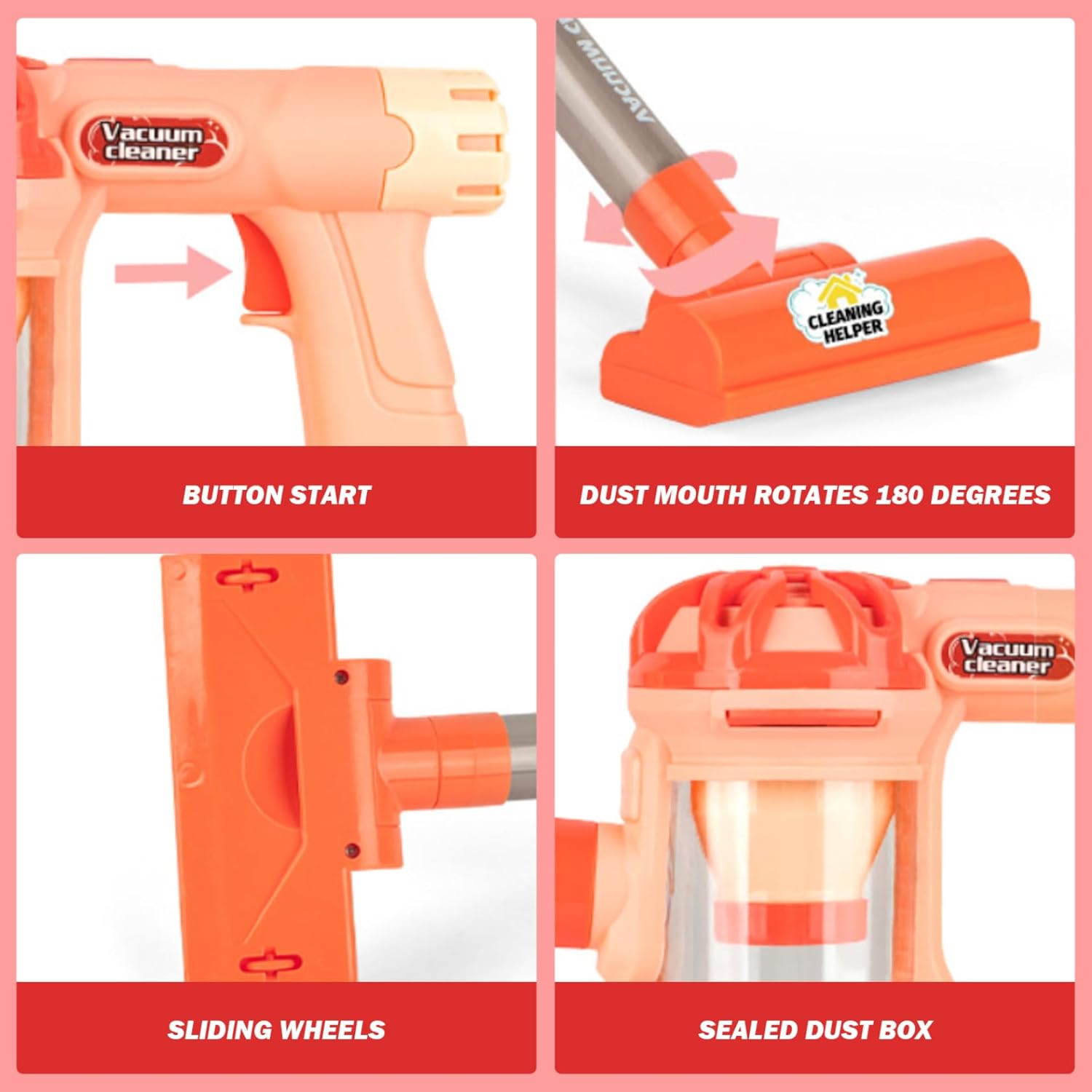 Regalo perfetto per i bambini: cerchi il regalo per le vacanze perfetto?.Questo set di pulizie per bambini è perfetto per compleanni e vacanze, combinando divertimento e istruzione..I genitori adoreranno il valore che porta, rendendolo una scelta ponderata per i giovani membri della famiglia. Promuove la responsabilità e lo sviluppo delle competenze: il nostro aspirapolvere non solo aiuta a mantenere pulita la tua casa, ma promuove anche le abilità motorie di base e insegna l'importanza della pulizia..È un modo divertente per i bambini di imparare la responsabilità attraverso un gioco fantasioso. Design 3-in-1 multifunzionale: l'aspirapolvere dei nostri bambini ha tre teste intercambiabili, incoraggiando il bambino a intraprendere le avventure di pulizia..Dalla piccola terra alle aree difficili da raggiungere, questo aspirapolvere giocattolo può gestire varie attività di pulizia, rendendo divertente le faccende domestiche! Affidabile e di lunga durata: il nostro aspirapolvere giocattolo è realizzato in materiale PP, garantendo una durata e infinite ore di gioco per i bambini..È privo di BURRS, garantendo che il bambino possa godere del proprio lavoro di pulizia senza problemi di sicurezza o problemi di sicurezza. Esperienza di pulizia vera: il vuoto per bambini non è solo un giocattolo;.È un aspirapolvere funzionante che viene ridimensionato per adattarsi a piccole mani..Ha una potente aspirazione che può effettivamente raccogliere briciole, scarti di carta e altri piccoli detriti, offrendo una vera esperienza educativa per i giovani addetti alle pulizie.