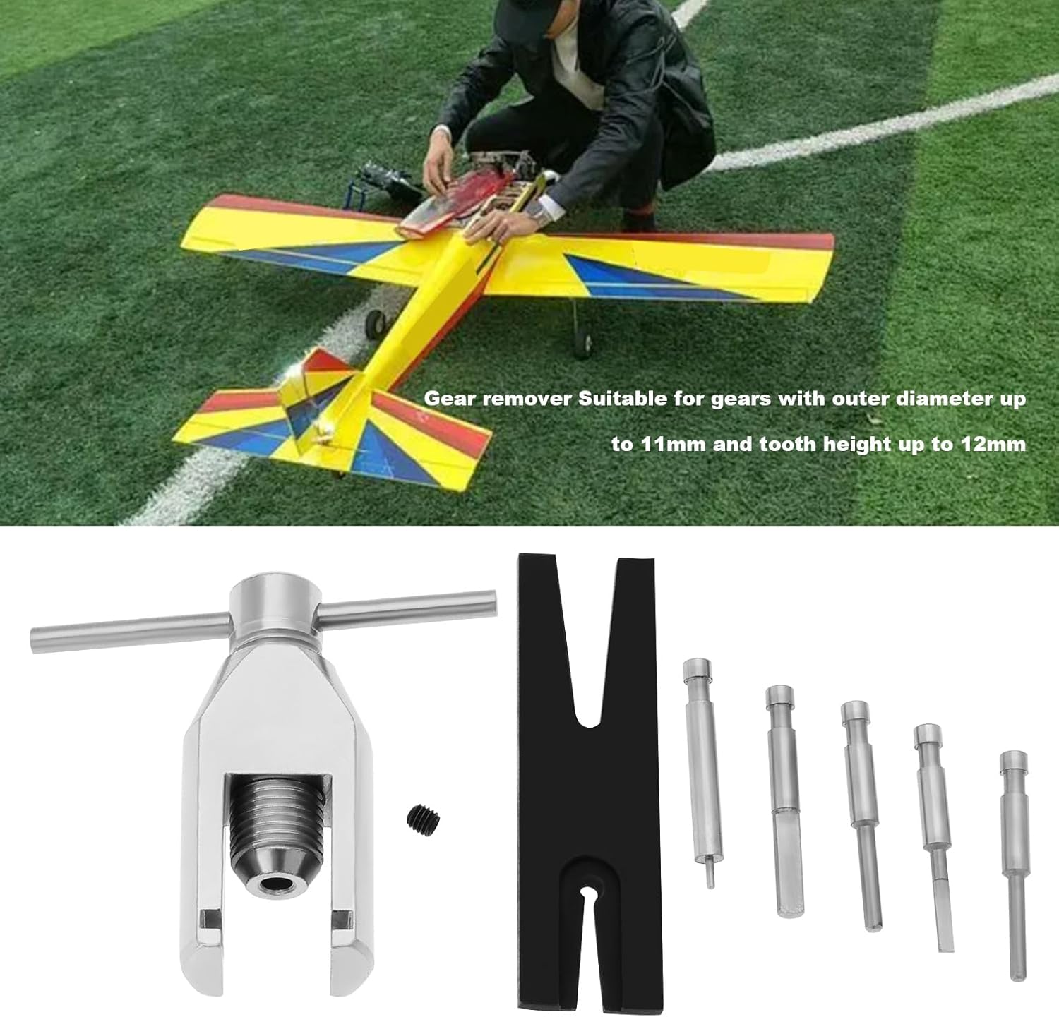 Lo strumento di rimozione è in grado di estrarre ingranaggi con un diametro esterno massimo fino a 11 mm e un'altezza del dente inferiore a 12 mm. È progettato pensando alla precisione e all'efficienza, consentendo una rimozione fluida e senza sforzo di tali ingranaggi. Include 5 perni per il diametro dell'albero motore, 0,9 mm (cilindrico), 1,75 mm (semicircolare), 1,75 mm (cilindrico), 1,9 mm (cilindrico), 2,8 mm (semicircolare). Aggiornamento del materiale: utilizzare il materiale con un livello di durezza più elevato, che non è soggetto a deformazione. Questo materiale migliorato fornisce inoltre maggiore durata e resistenza all'usura, garantendo una maggiore durata del prodotto. Installazione: 1. Ruotare l'asta dell'estrattore dell'ingranaggio e serrare la vite. 2. Inserire l'asta rotante dell'estrattore nel supporto. 3. Adatto alla piastra scorrevole. 4. Fissare il motore nella piastra di spostamento e allineare l'albero con il mandrino. 5. Ruotare la leva in modo uniforme in senso orario per estrarre l'ingranaggio dal motore. Nota: si consiglia di procedere lentamente quando si tenta di rimuovere gli ingranaggi. Alcuni ingranaggi sono saldamente fissati al motore. In questo caso, provare prima a riscaldare gli ingranaggi. Se la colla non si scioglie, non è consigliabile provare a rimuovere i pignoni.