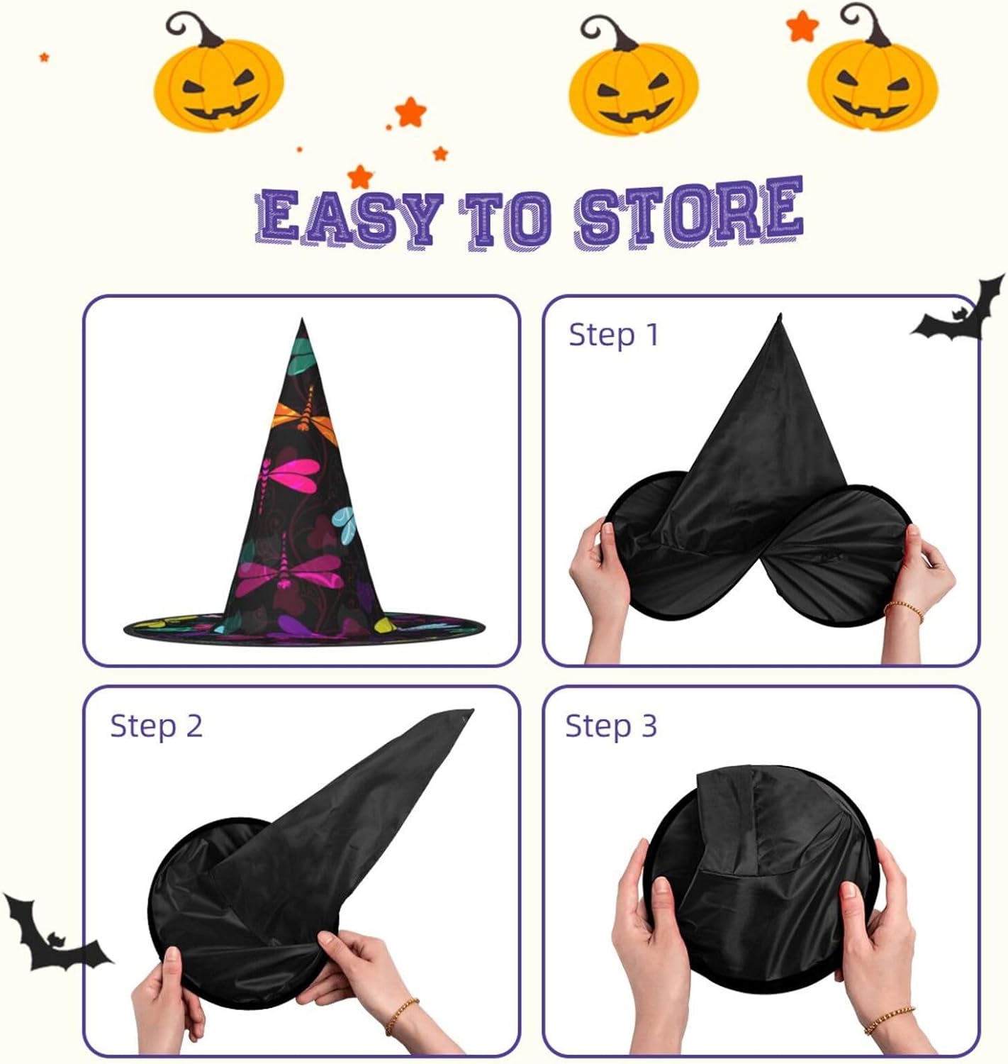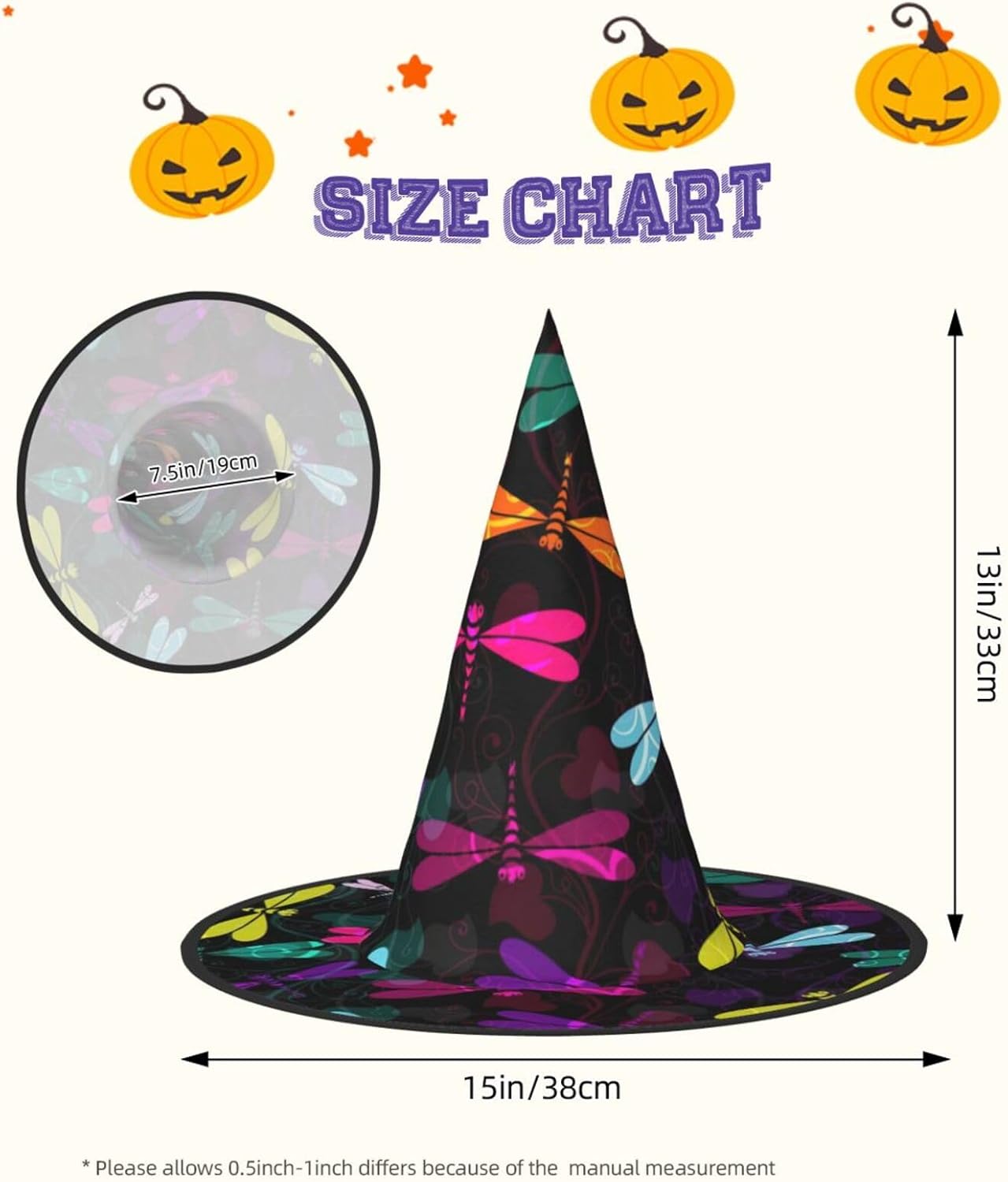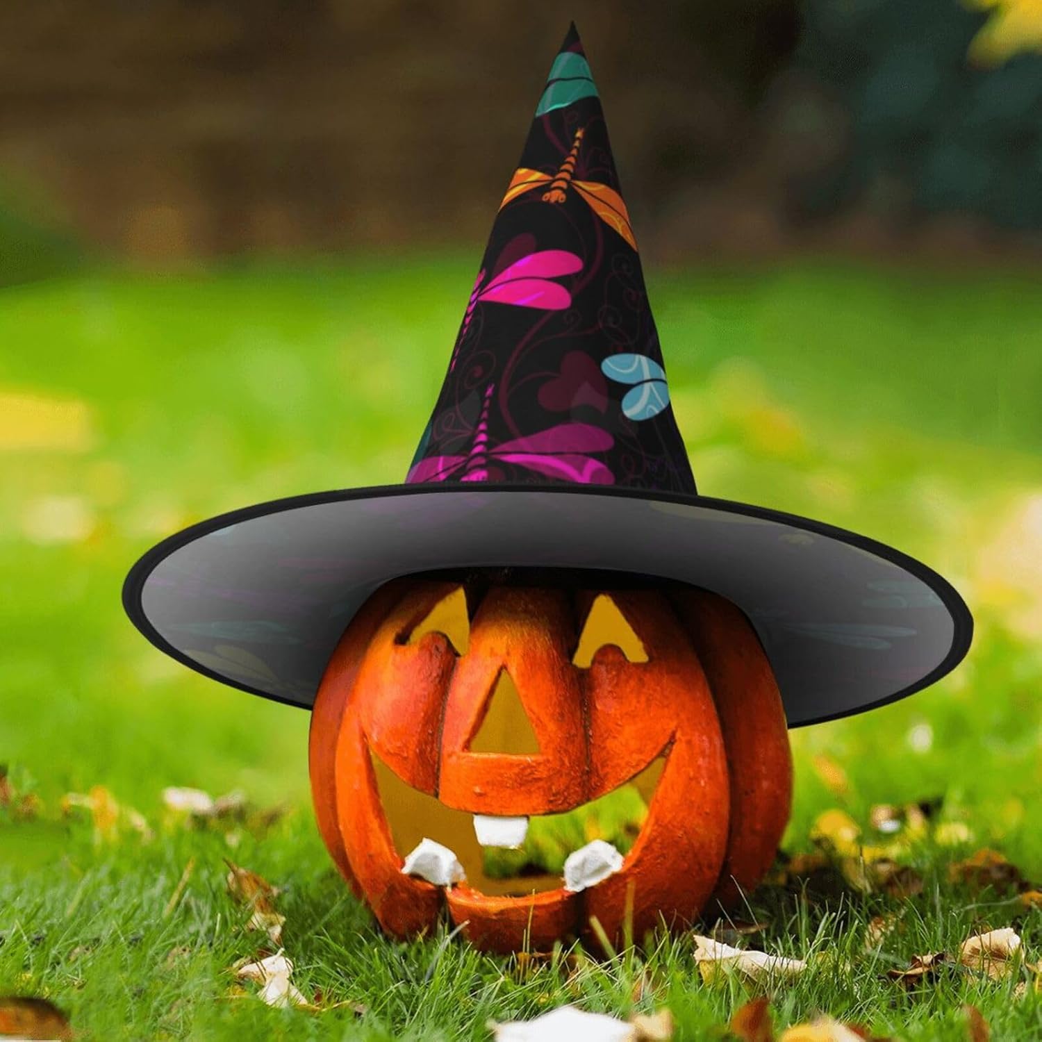 Simpatici cappelli da strega di Halloween a forma di libellula per adulti. \rIl cappello da strega è un ottimo accessorio per il costume di Halloween. Materiale: realizzato in resistente tessuto Oxford, morbido, confortevole e caldo. Dimensioni: standard. Dimensioni del prodotto: 33 x 38 cm. Perfetto per Halloween, Natale, balli in maschera, cosplay, riunioni, carnevali