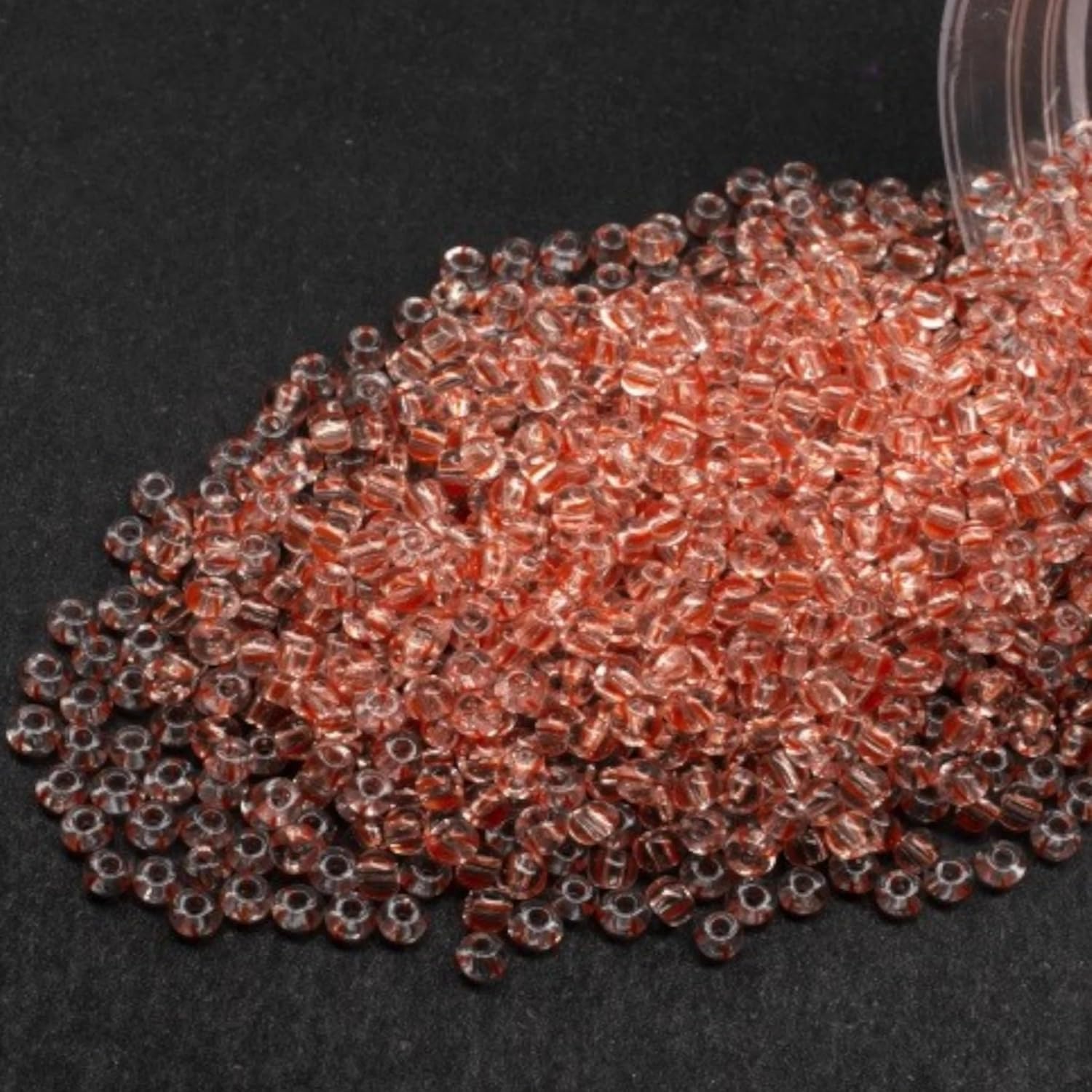 10/0 00890 Perline in vetro ceco Rocailles. Strisce rosse su cristallo. Confezione da 900 pezzi. Peso 10 grammi. Dimensioni delle perle: 2,3 mm. per perline, ricami e creazione di gioielli.