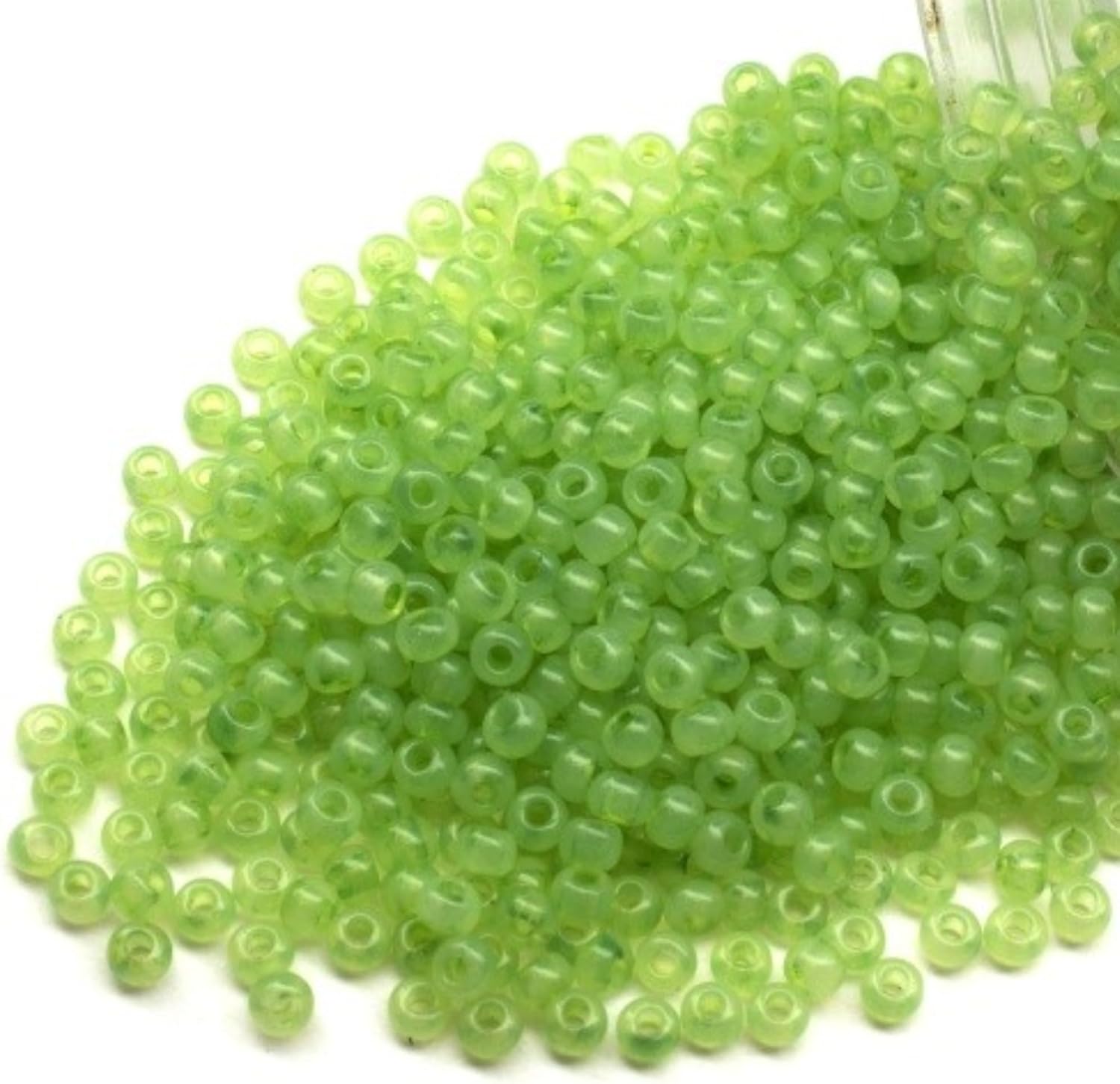 10/0 02662 Perline Rocailles in vetro ceco Alabastro Verde - Solgel tinto. Confezione 4500 pz. Peso 50 grammi. Dimensioni delle perle 2,3 mm. per perline, ricamo e creazione di gioielli.