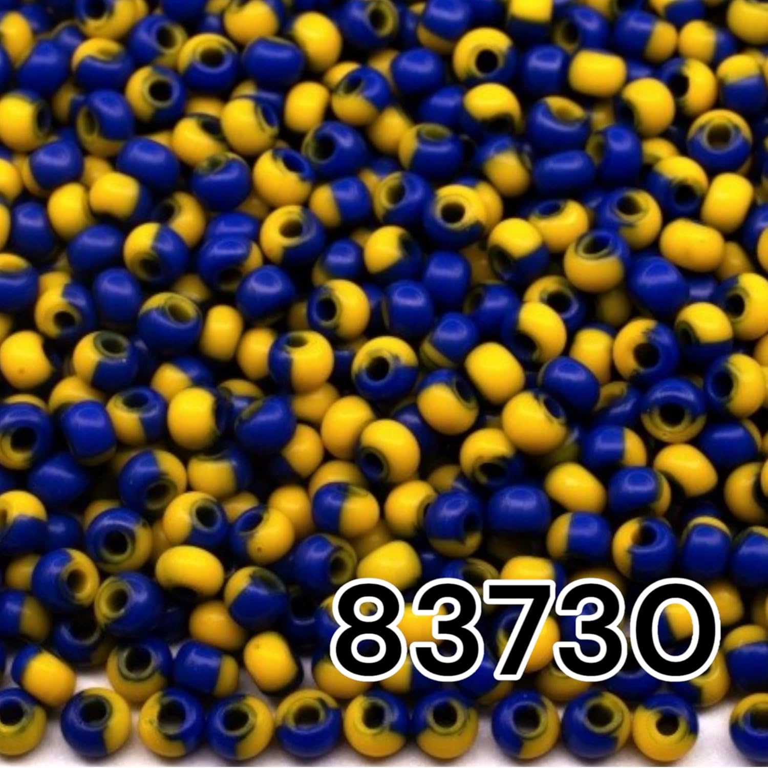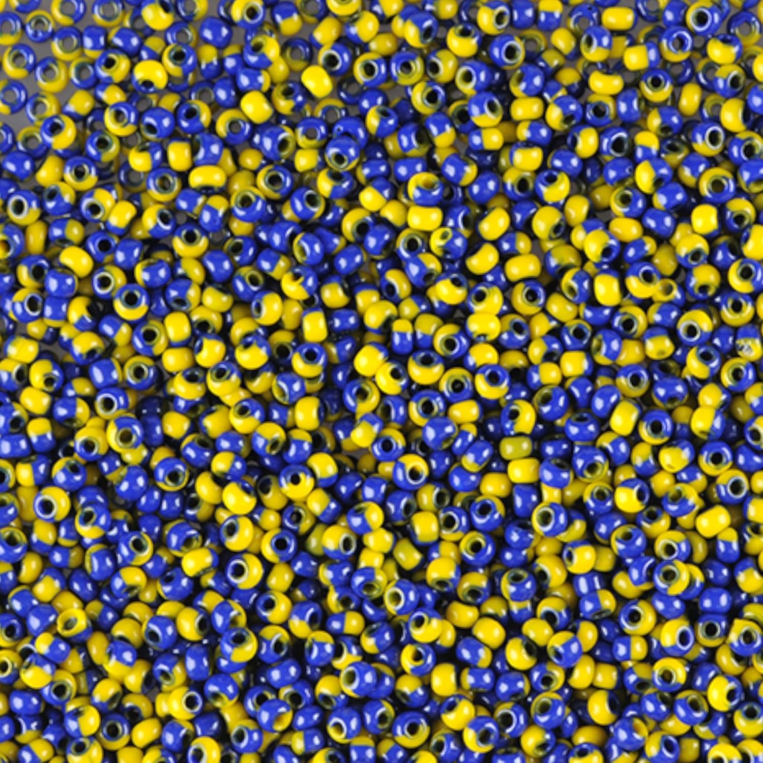 10/0 83730 Perline in vetro ceco Rocailles Arlecchino Giallo - Blu. Confezione 4500 pz. Peso 50 Grammi. Dimensioni delle perle: 2,3 mm. per perline, ricamo e creazione di gioielli.