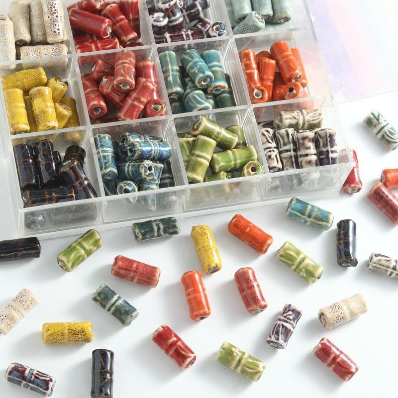 Perline sfuse in ceramica smaltata fatte a mano, dimensioni perline: 19x8 mm, diametro del foro: circa 2,5 mm Queste perle di porcellana irregolari sono realizzate in ceramica, con una superficie liscia senza sbavature, una consistenza resistente, non facili da rompere e comode da indossare Queste perle di ceramica sciolte hanno dei fori per un facile infilaggio e sono comode da usare, si abbinano perfettamente a canapa, pelle o cordino intrecciato per creare bellissimi braccialetti o collane di perline Queste perle di porcellana dipinte a mano hanno un aspetto unico, vintage e squisito, con colori bellissimi, che possono rendere i tuoi gioielli fai da te più accattivanti Queste perle di ceramica artigianali sono molto adatte per realizzare braccialetti, collane, gioielli, orecchini, pendenti, portachiavi e possono anche essere regalate a familiari e amici a cui piace il fai da te con le perline