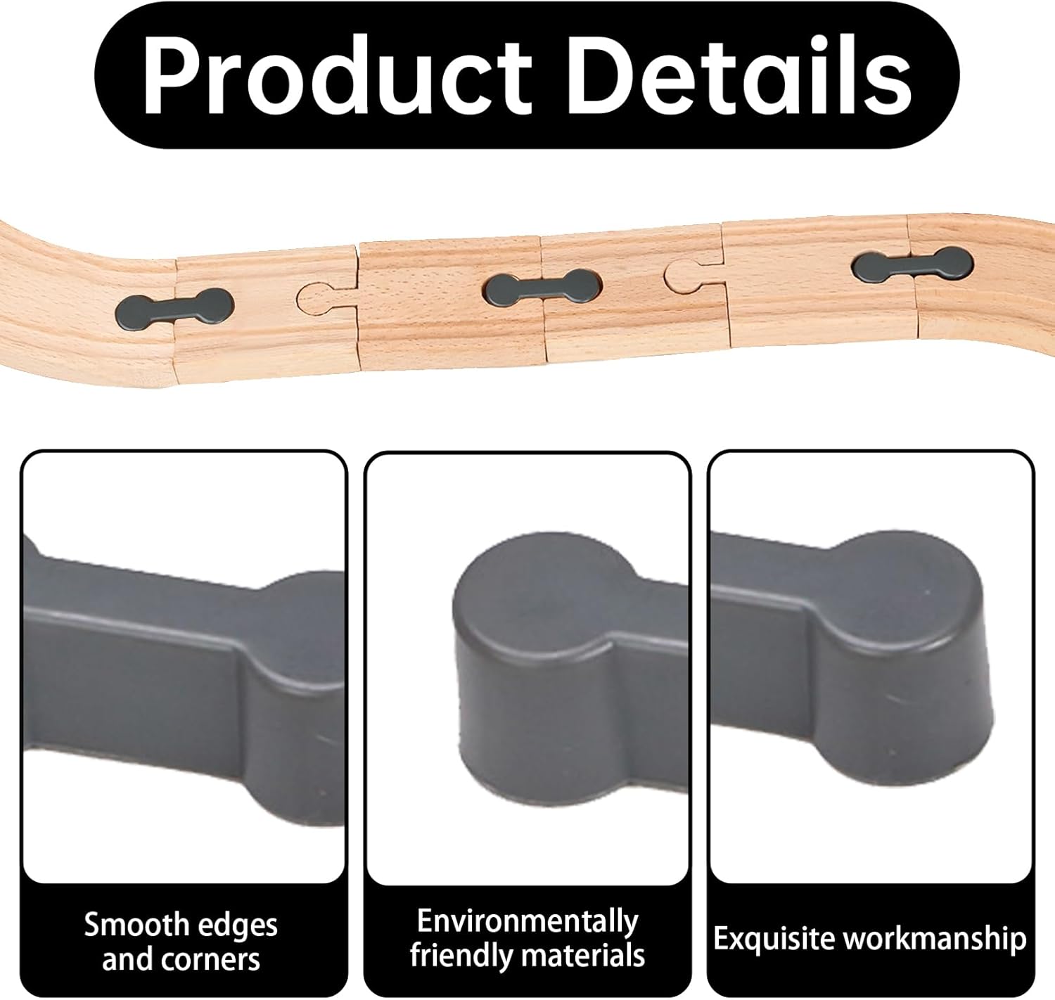 Molteplici possibilità di espansione: con gli accessori per ferrovia in legno da 10 pezzi di dimensioni compatte (3,5 × 0,6 × 1,2 cm) è possibile ampliare e personalizzare facilmente il vostro set di ferrovia in legno. Gli adattatori e i connettori sono flessibili e versatili e consentono layout di percorso illimitati e ispirano una creatività illimitata. Materiale durevole e sicuro: materiale plastico selezionato, di alta qualità e durevole per creare una pista di trazione che sia robusta e sicura. Gli adattatori in legno grigio sono progettati con precisione per garantire una solida connessione tra i binari e un viaggio fluido e senza preoccupazioni, appositamente progettati per la sicurezza dei bambini. ESPERIENZA DI FUNZIONAMENTO SEMPLICE: i connettori progettati per bambini di tutte le età sono facili da usare e consentono di collegare i binari e ridisegnare il layout dei binari innumerevoli volte, il che non solo promuove la capacità di abilità artigianale, ma stimola anche la creatività e il pensiero costruttivo. Multiscenario applicabile: questo set di accessori per treni in legno è compatibile con una varietà di layout di traccia, che si tratti di casa, asilo nido o scuola, può essere una fonte di divertimento per i bambini, promuovendo lo sviluppo generale delle capacità motorie e la coordinazione occhio-mano. Regalo ideale: come regalo perfetto per gli appassionati di ferrovia o piccoli architetti, questo set di connettori per binari in legno non solo porta infinite ore di gioco fantasioso, ma incoraggia anche i bambini a esplorare il proprio mondo, a coltivare creatività e spirito esplorativo, ideale per trasmettere amore e saggezza.