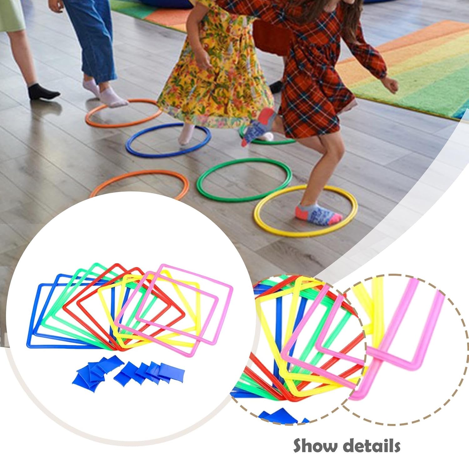 Ampiamente applicabile: i giochi da esterno della campana per la famiglia possono essere applicati dopo un semplice assemblaggio, adatti per interni ed esterni Goditi il tuo tempo libero: il gioco del pavimento saltellante è adatto ad adulti e bambini per giocare a casa, passando il tempo noioso, rafforzando il rapporto reciproco, facendo esercitare tutta la famiglia e Robusto per un uso prolungato: il percorso a ostacoli al coperto per bambini è realizzato principalmente in PP con colori vivaci, liscio e robusto, non facile da deformare, rompere, può servirti a lungo Migliora le capacità motorie: il percorso a ostacoli per bambini non solo può aggiungere divertimento, ma può anche aiutare i bambini a migliorare le loro capacità motorie, sviluppare la loro capacità di pensiero e promuovere l'equilibrio e l'agilità durante il gioco Ampia quantità da usare e condividere: il pacchetto include 1 set di giochi da esterno a campana a forma di cerchio, contenente 10 cerchi, 10 connettori, 1 borsa portaoggetti e 1 sacchetto di fagioli, comodo da riporre e giocare con altri