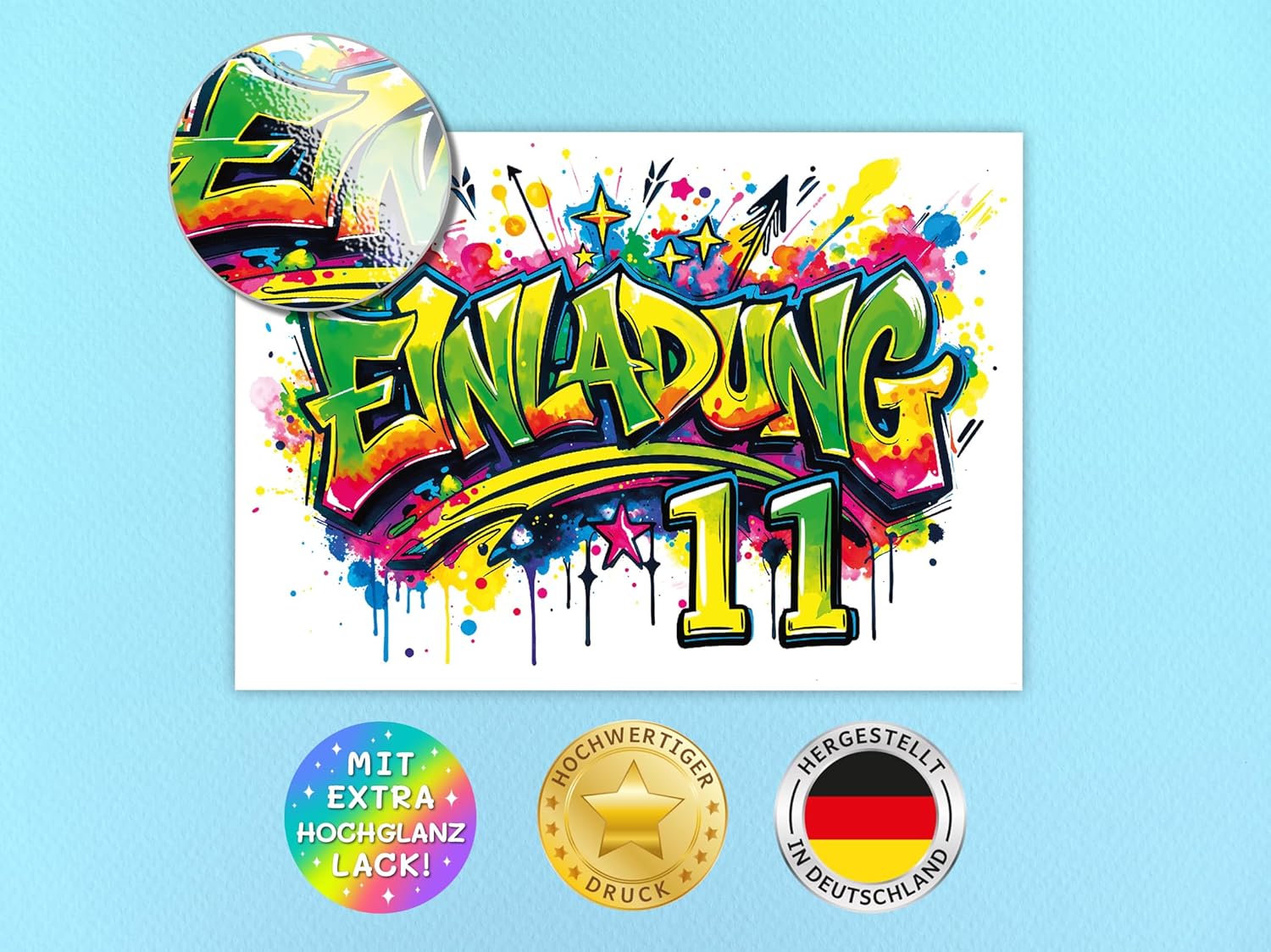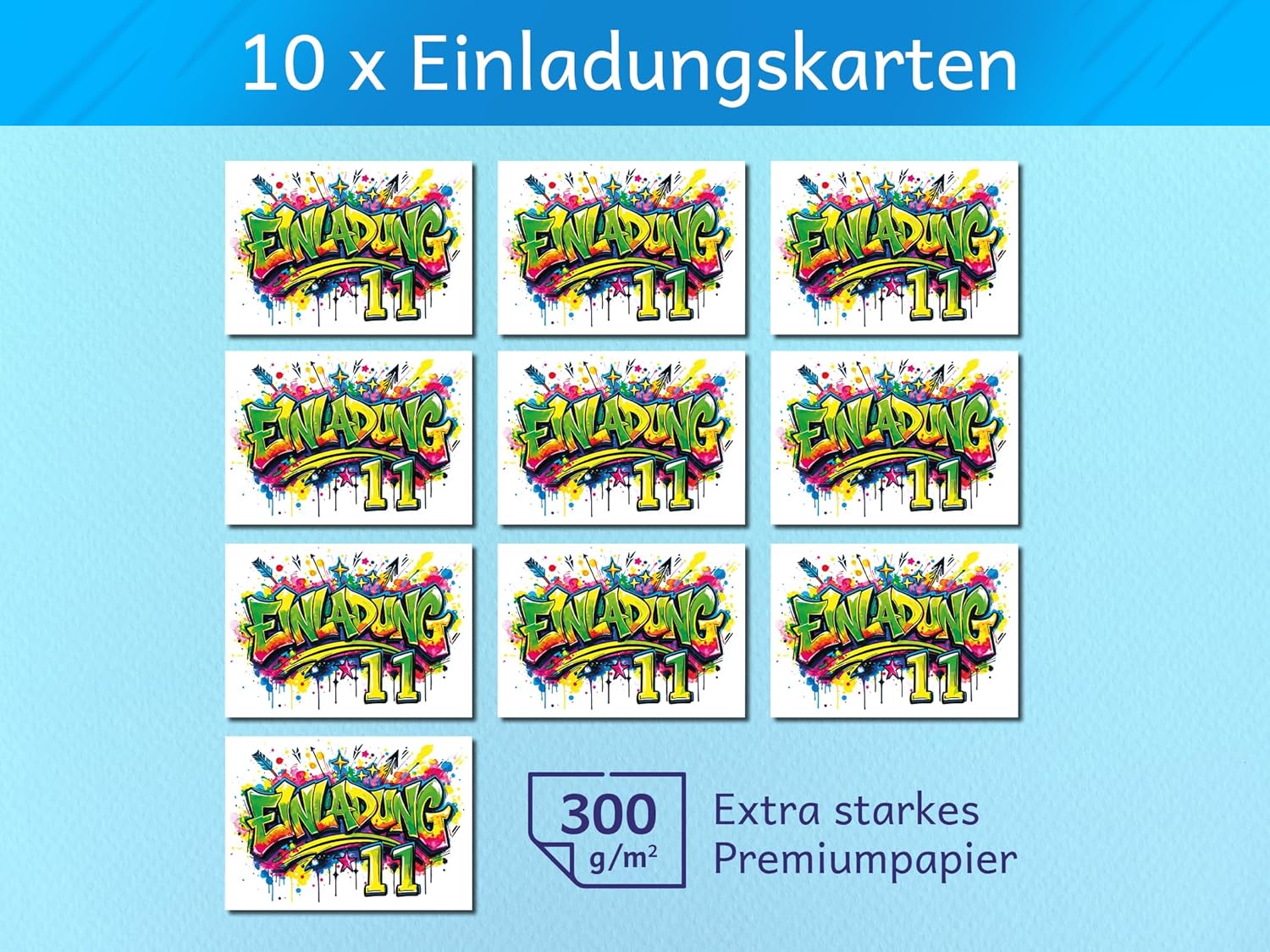 10 biglietti d'invito per l'undicesimo compleanno dei bambini bambini graffiti ragazze ragazzi inviti coloratissimi per l'undicesimo compleanno inviti di compleanno per bambini