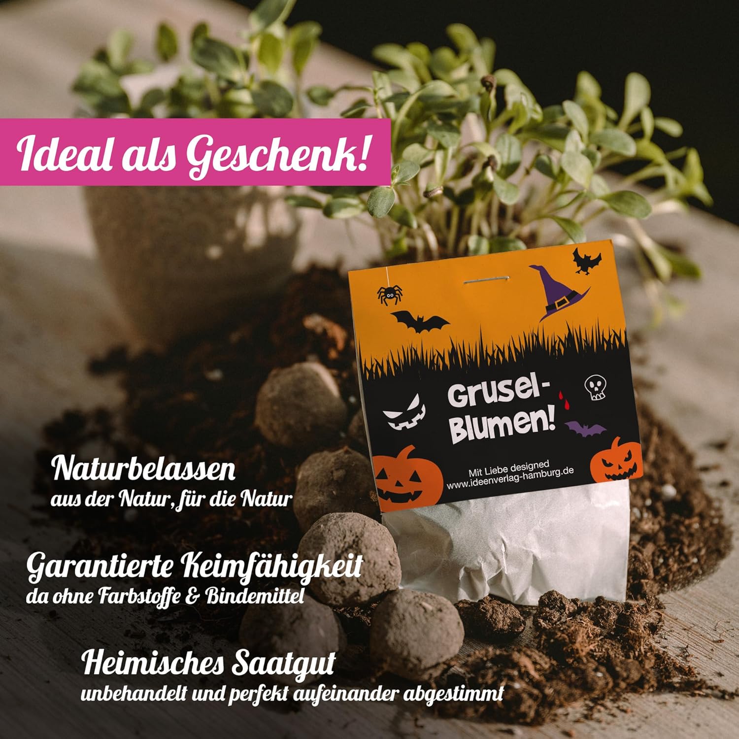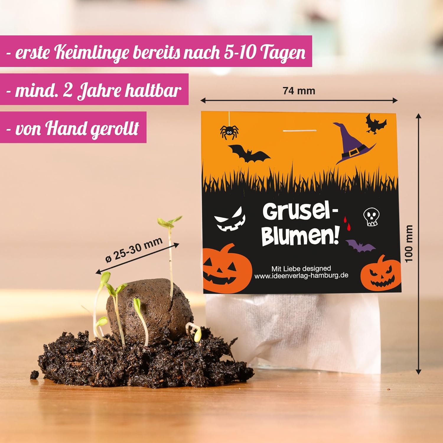 🌱 Fornitura: 10 bombe di semi invernali a tema "Halloween" (espellere con tempo freddo / 5-10°C; tempo di lancio ideale: settembre-aprile), confezionate singolarmente e al 100% prive di plastica. 🖤❤️💛 Realizzato con amore a mano - realizzato in modo responsabile in laboratori locali per disabili. Carta – design – packaging: tutto made in Germany. ❄️Flower Power altrimenti sarà acido, anche a temperature fredde! Come regalo sostenibile per le tue persone preferite e tutti gli amanti spettrali! ♻️ Stampa sostenibile e a impatto climatico zero su carta riciclata FSC - progettata con amore dall'editore di idee AMBURGO. 🎃 Originali, sostenibili e utili: i nostri utili regali per i regali di Halloween - come regali per i compleanni di Halloween dei bambini / per le feste di Halloween per i compleanni dei bambini / regali per gli ospiti dei bambini / regalini per bombe di semi / regalini per il compleanno dei bambini / souvenir di compleanno per bambini / bombe di semi / riempimento del calendario dell'Avvento per bambini / regali per il compleanno di Halloween per bambini / regalini per bombe di semi / bombe di semi 👻 Ideale come regalino per Halloween festa di compleanno per bambini per 10 anni, regalo di Halloween per compleanno di bambini da 8 anni, regalo di Halloween per compleanno di bambini, bomboniere per compleanno di bambini, souvenir per la festa di compleanno di bambini, regalo di Halloween per festa di compleanno per bambini, regalo di Halloween per compleanno di bambini per ragazzi, regalo di Halloween per compleanno di bambini, sacchetto di decorazione di Halloween per bambini, regalo di compleanno di bambini per ragazze, regalo di compleanno di bambini per ragazze