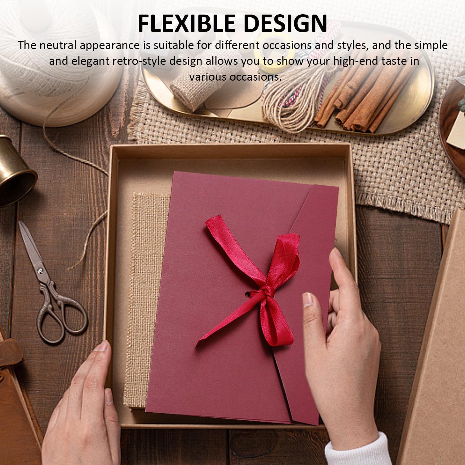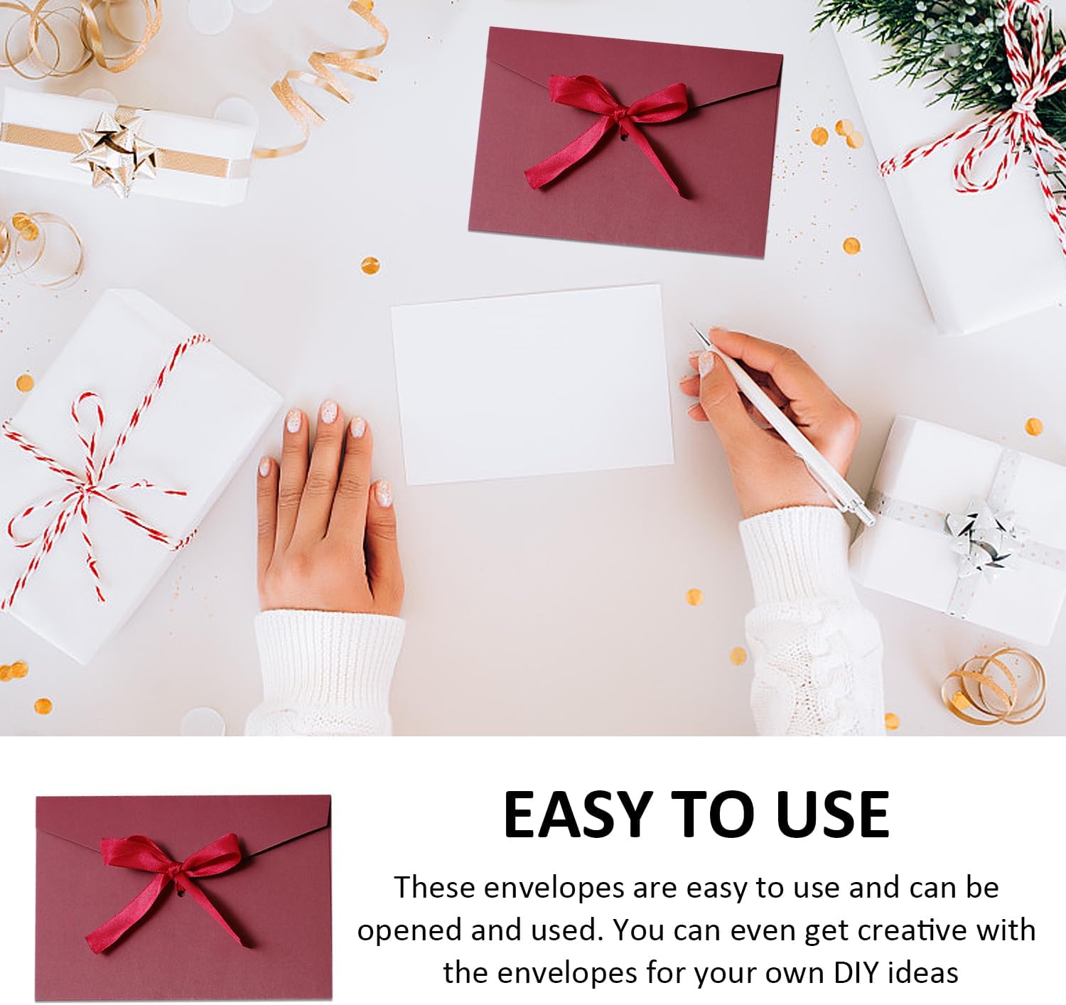 Contenuto della confezione: la confezione contiene 10 buste bordeaux (dimensioni 22 x 11 cm), adatte all'uso quotidiano e forniscono un supporto per la tua vita quotidiana. Qualità del prodotto: la busta è realizzata in carta speciale da 250 g, spessa e dura con una buona consistenza, fornendo un'eccellente protezione per le tue lettere. Fidatevi della qualità dei nostri prodotti! Caratteristiche del prodotto: le nostre buste sono ideali per inviti di nozze, confezioni regalo o la tradizionale spedizione di lettere, per soddisfare le diverse esigenze. Design flessibile: l'aspetto neutro è adatto a diverse occasioni e stili, e il design retrò semplice ed elegante ti consente di mostrare il tuo gusto di fascia alta in diverse occasioni. Comodo da usare: queste buste sono facili da usare e possono essere utilizzate subito dopo l'apertura. Anche con le buste puoi dare libero sfogo alla tua creatività e realizzare le tue idee fai da te. Grazie alle loro dimensioni compatte, sono anche facili da trasportare.