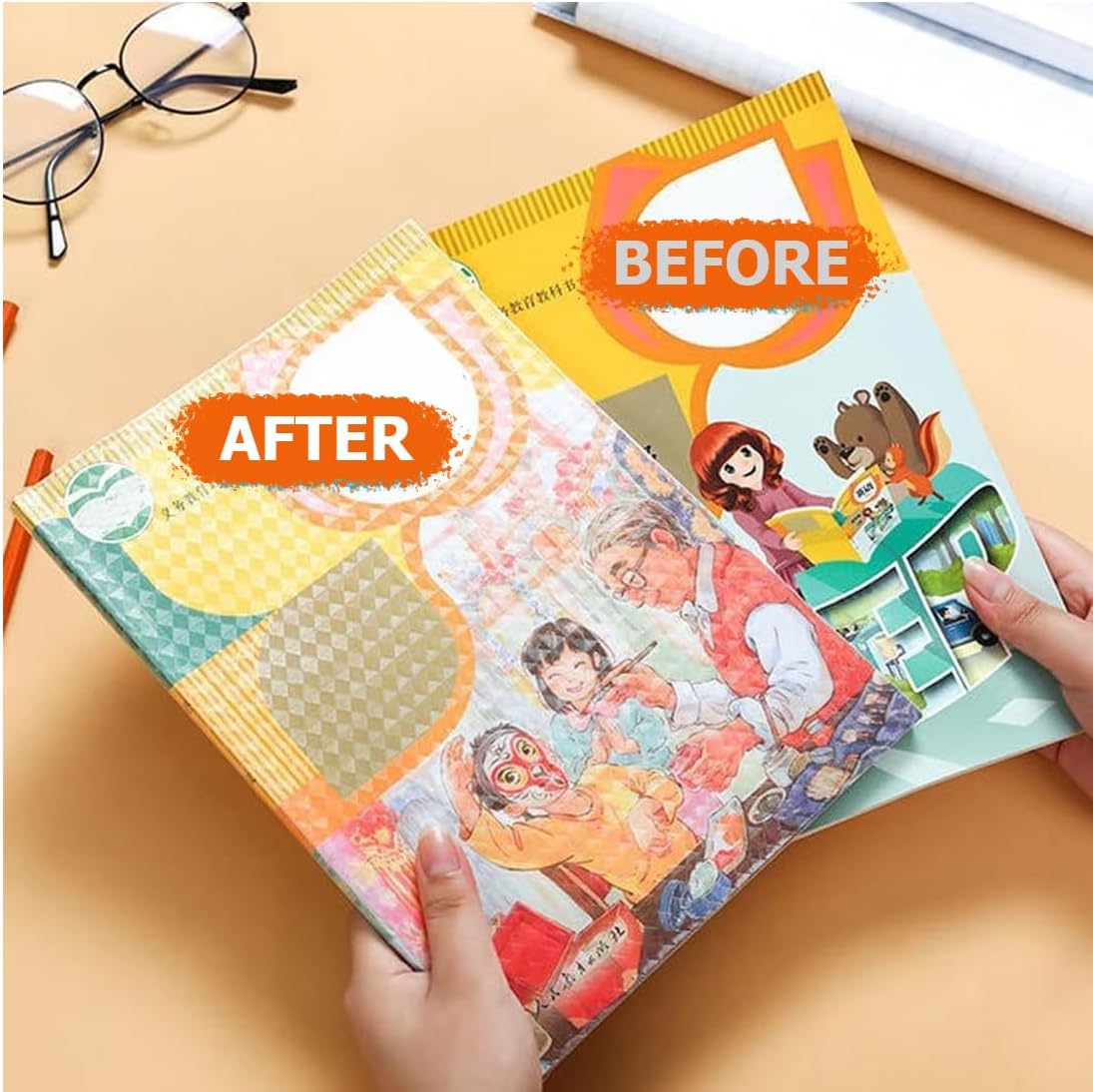 Materiali di alta qualità, eccezionale durata: realizzato con materiali di qualità superiore, offre una robustezza e una longevità eccezionali, garantendo una protezione duratura per libri, libri di testo, quaderni e altro ancora. Elevata trasparenza, applicazione senza bolle: offre una maggiore chiarezza e riduce al minimo le bolle d'aria durante l'installazione. Utilizzando materiali di alta qualità con una struttura multistrato che include una pellicola impermeabile e un rivestimento trasparente, garantisce una chiara visibilità del contenuto del libro respingendo efficacemente l'acqua e l'umidità. Ampia compatibilità, adattamento preciso: progettato meticolosamente per adattarsi perfettamente a vari materiali scolastici, tra cui quaderni, libri di testo, quaderni e libri di scienze, soddisfacendo le diverse esigenze di protezione delle risorse didattiche. Adesione sicura, protezione completa: oltre a proteggere le pagine dai danni, la copertina mantiene una chiara visibilità dei contenuti. Il suo robusto adesivo garantisce una tenuta duratura senza distacco, offrendo una protezione completa del libro. Applicazione senza sforzo: semplice da usare - selezionare la dimensione corretta, rimuovere la carta protettiva, applicare la copertina alla copertina anteriore lisciando eventuali bolle, quindi ripiegare i bordi. Questo metodo fa risparmiare tempo e richiede uno sforzo minimo.