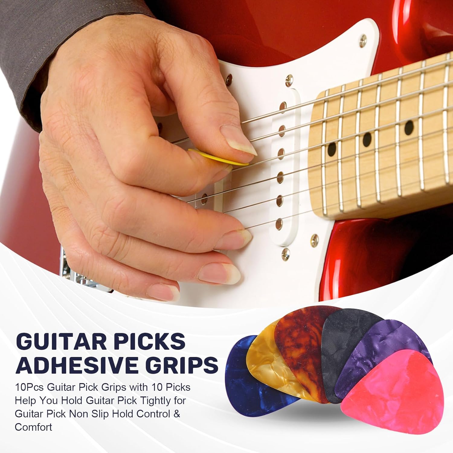 [Materiale comfort]: l'impugnatura dei plettri per chitarra utilizza materiale morbido ed per creare il tocco perfetto pelle. sì che i plettri della chitarra diventino il tuo altro dito [Alta viscosità, nessun residuo]: il supporto autoadesivo di alta qualità assicura che le impugnature non scivolino sui plettri della chitarra e non ci siano residui viene rimosso.,Piacevole esperienza d'uso per te: può anche rimanere sul plettro per un molto tempo, non è facile scivolare giù, offrendoti un'esperienza d'uso soddisfacente. [Design speciale antiscivolo]: il design del modello antiscivolo a forma, unito alle prestazioni antiscivolo di per sé, può afferrare anche se sei una mano sudata, aiutando i principianti a suonare la chitarra intoppi. [Piccolo, leggero e invisibile]: i plettri per chitarra aderenti non distruggono i plettri della tua personalità preferita, è quasi trasparente, a differenza del nero è molto brutto Lavorazione affidabile per un servizio duraturo: realizzata in gel di silice, l'impugnatura dei plettri per chitarra è di qualità e sottile, comoda da toccare e , non facile da rompere o strappare, con una lavorazione squisita per accompagnarti a lungo