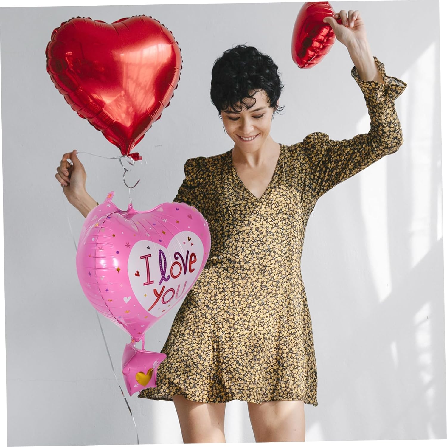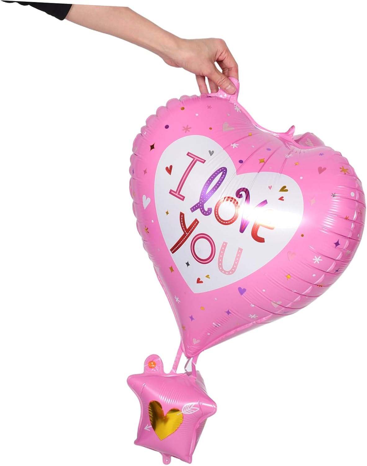Design unico: la forma della mongolfiera di San Valentino aggiunge un tocco di divertimento e romanticismo ai compleanni dei bambini, ai palloncini dell'amore e ai palloncini dell'amore di San Valentino. Facile da gonfiare: gonfia il palloncino in modo facile e veloce, processo di decorazione semplice, palloncini per San Valentino, palloncini a cuore per San Valentino e allegro: i colori vivaci del palloncino aggiungono un'atmosfera vivace e festosa a qualsiasi celebrazione. Palloncini per anniversari, palloncini baby show Design giocoso: la forma di una mongolfiera per San Valentino aggiunge un tocco divertente e romantico a qualsiasi celebrazione. Palloncini in alluminio per compleanni, palloncini per la decorazione di San Valentino. Materiale robusto: questi palloncini sono realizzati in foglio di alluminio e possono essere riutilizzati più volte. Decorazioni per palloncini di San Valentino, palloncini foil di San Valentino