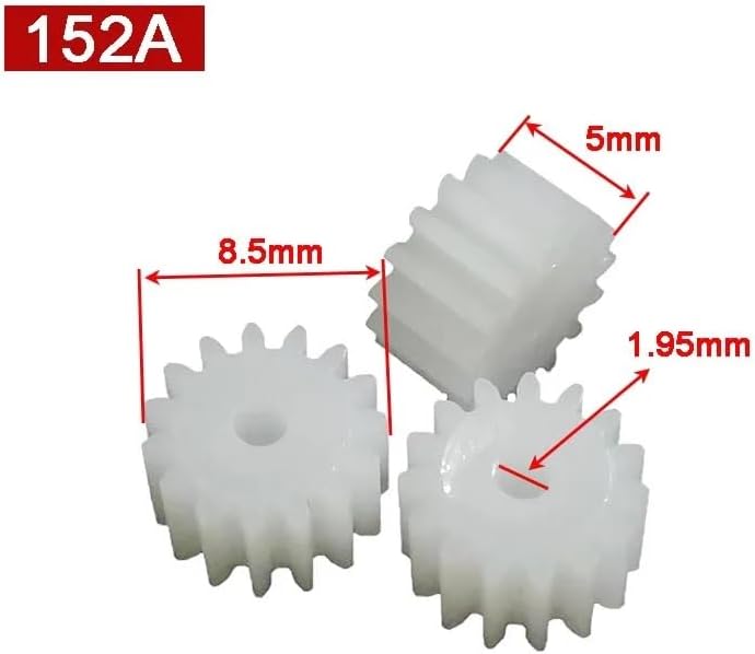 Installazione: Progettati for un facile montaggio, questi ingranaggi possono essere installati rapidamente, garantendo un'esperienza senza problemi sia ai principianti che agli appassionati esperti. Applicazione: i nostri ingranaggi in plastica sono ideali for una varietà di progetti scientifici fai da te, tra cui modellini di automobili, robot elettrici, mulini a vento e dimostrazioni didattiche sui rapporti di trasmissione. Dimensioni: compatto e versatile, l'ingranaggio ha un diametro di 8,4 mm e uno spessore di 4,9 mm, che gli consentono di adattarsi perfettamente a diverse applicazioni. Specifiche del modello: l'ingranaggio in plastica 152A ha un modulo 0,5 e 15 denti, garantendo affidabilità ed efficienza nei tuoi progetti. Applicazione: questi piccoli ingranaggi in plastica vengono utilizzati in una varietà di progetti, tra cui la robotica, la modellizzazione e i processi DIY. Sono ottime opzioni per migliorare i tuoi modelli di plastica e giocattoli meccanici.