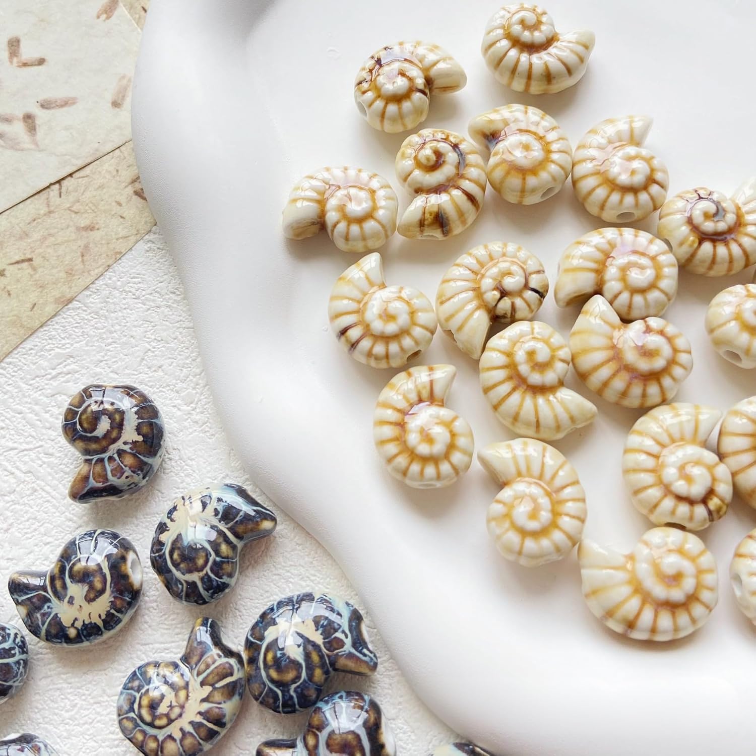 Perline di ceramica colorate a forma di conchiglia, dimensioni: 16x20 mm, diametro del foro: circa 2 mm, 10 pezzi/confezione Queste perle a forma di conchiglia sono realizzate in ceramica e smaltate a mano, hanno un aspetto liscio, non si rompono o sbiadiscono facilmente, sono comode da indossare e possono essere utilizzate a lungo Queste perline di ceramica sciolte con foro dritto sono perfette per l'uso con cordini di cuoio, corde di canapa, strisce di tessuto intrecciato e altri materiali di infilatura per arricchire le tue possibilità di design con perline Queste perle di ceramica colorate sono progettate a forma di conchiglie o gusci di lumaca, hanno un aspetto unico e sono perfette per le vacanze al mare Queste perle di ceramica a forma di conchiglia sono molto adatte per realizzare braccialetti, collane, orecchini, pendenti, portachiavi e vari lavori fai da te; puoi anche condividerli con gli amici a cui piacciono le perle fatte a mano