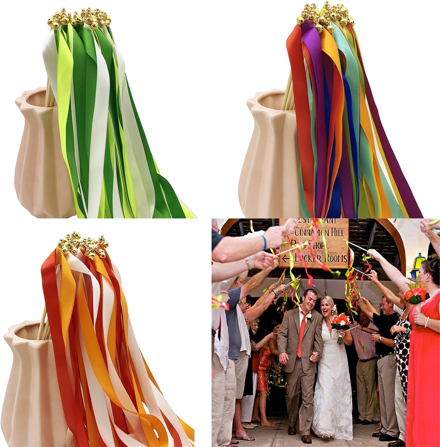 Queste bacchette decorative hanno un duplice uso come souvenir o centrotavola disponibili in vari colori da abbinare al tema Ogni set include un bastone di legno con una campana realizzata in materiale a nastro per una durata duratura che si agita facilmente in occasioni festive Ideale per spose, pianificatori di eventi e feste Migliora la tua festa con questi incantevoli bastoni da sposa con eleganti fiocchi di seta e dettagli luminosi Trasforma un ricevimento di nozze, una festa di compleanno o un incontro di Natale in un paradiso stravagante per far girare i tuoi ospiti con queste bacchette scintillanti