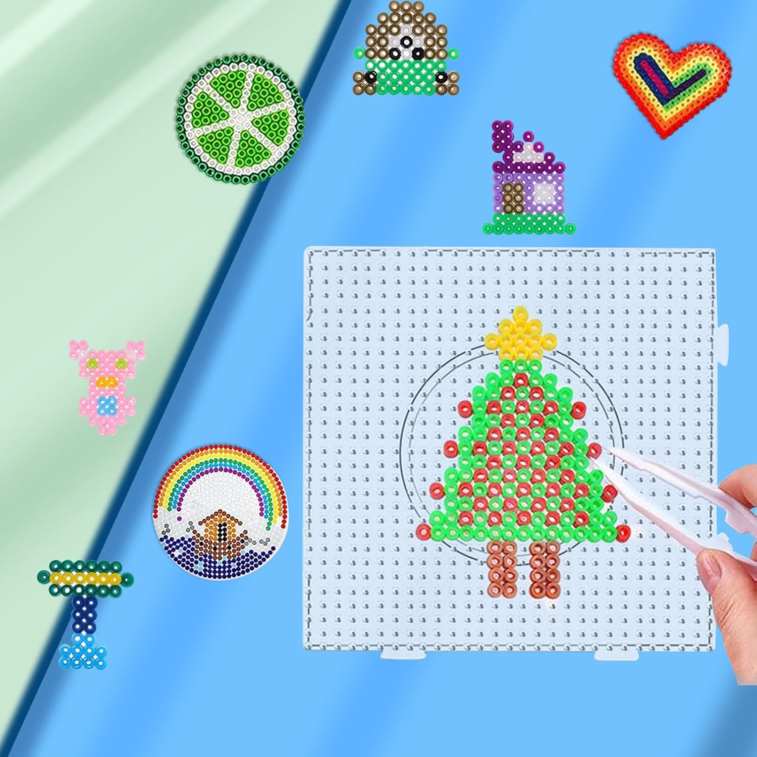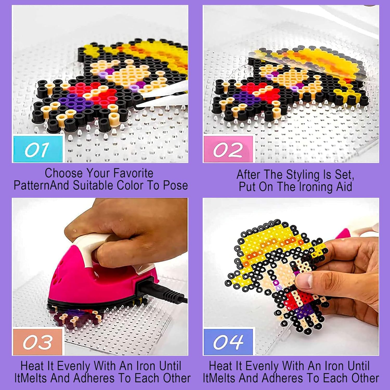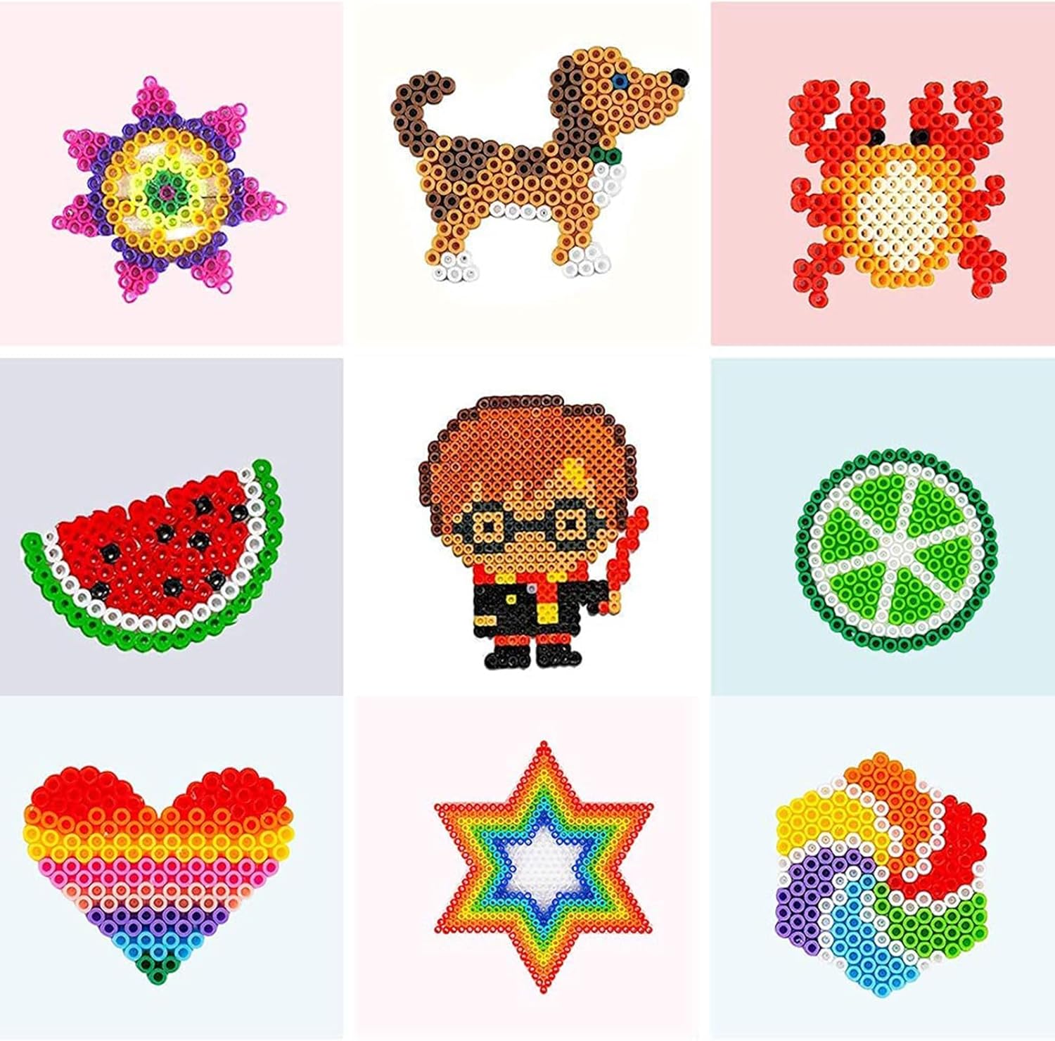Pacchetto di stencil per perline in acciaio: questo set di stencil per perline in acciaio contiene molte lastre di perline di diverse forme, tra cui quadrate, rotonde, esagonali e a forma di cuore, ci sono diverse forme di lastre in rilievo per soddisfare le diverse esigenze. Materiale di alta qualità: la piastra di perline trasparente è realizzata in materiale di alta qualità, pregevole fattura e eccellente artigianalità, la piastra non si rompe facilmente quando viene stirata, non si scioglie o si piega facilmente, scegli questo stencil per perline in acciaio da noi per te e il tuo bambino, è innocuo e durevole per il tuo bambino. Facile da usare: è possibile utilizzare le perline sul bordo secondo il modello di carta stencil sotto la tavola di plastica trasparente, oppure è possibile utilizzare liberamente la loro immaginazione per creare nuovi modelli e infine sciogliere le perline con la macchina da stiro a casa, i bambini possono anche sperimentare diversi divertimenti giocando. Giocattoli per bambini: i bambini possono creare diverse forme o motivi su un vassoio di perline secondo la loro immaginazione. Questo mestiere migliora le capacità artigianali, la coordinazione e il pensiero tridimensionale dei bambini, stimolando la loro creatività e immaginazione. Anche gli adulti possono giocare con i loro figli Il regalo perfetto: i vassoi di perle sono ideali come regalo per i bambini piccoli. I genitori possono accompagnare i loro figli mentre giocano. Questo è un piacevole momento di interazione tra genitori e figli, che aumenta la comprensione del bambino e quindi promuove la relazione genitore-figlio. Un'infanzia divertente e amorevole per i bambini.