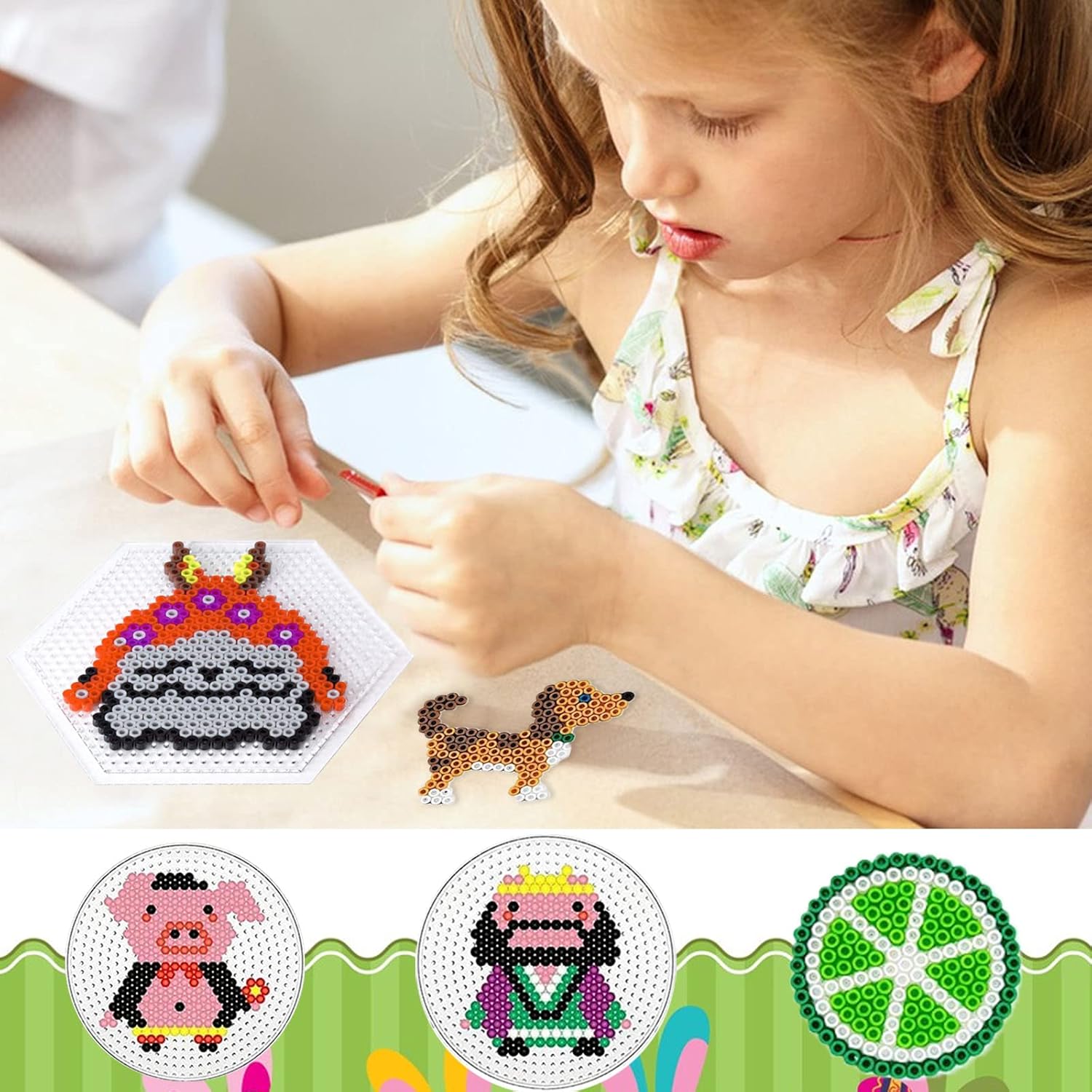 【Set di 10 piastre per perline da stiro】riceverete 10 piastre per perline da stiro con grandi cerchi, grandi quadrati, piccoli cerchi, piccoli quadrati, grandi esagoni, piccoli esagoni e cuori. Sono sufficienti per soddisfare le vostre diverse esigenze e le diverse forme consentono al vostro bambino di identificare le diverse forme e nomi. 【Materiale di alta qualità】realizzato in materiale ABS di alta qualità, nessun odore fastidioso, durevole, portatile e adatto ai bambini. Inoltre, la bacheca trasparente è meno soggetta a rotture, sciogliersi o piegarsi durante la stiratura. Passa il tempo con la tua famiglia con questi stencil con perline di forma diversa. 【Facile da usare】L'asse da stiro è un tagliere in plastica trasparente. Utilizzare le perline sulla tavola, coprire con carta da stiro e fonderle con il ferro da stiro. Poiché è trasparente, il modello finito può anche essere osservato quando il bambino trova un nuovo modello durante il fai da te, per soddisfare il suo interesse. 【regalo perfetto】l'asse da stiro è il regalo perfetto per te e il tuo bambino. Puoi giocare e interagire con lui. Trascorrete un momento meraviglioso insieme. Normalmente utilizzati per la produzione di arazzi, tutti i tipi di belle opere d'arte, adatti per stencil con perline trasparenti con un diametro di 5 mm, grandi regali creativi fai da te per bambini. 【Versatile】bambini possono creare infiniti motivi secondo le proprie idee, migliorando il loro controllo, coordinazione e pensiero tridimensionale, promuovendo la loro creatività e immaginazione. Allo stesso tempo, puoi giocare con il tuo bambino per migliorare il rapporto genitore-figlio e creare più bei ricordi con loro.