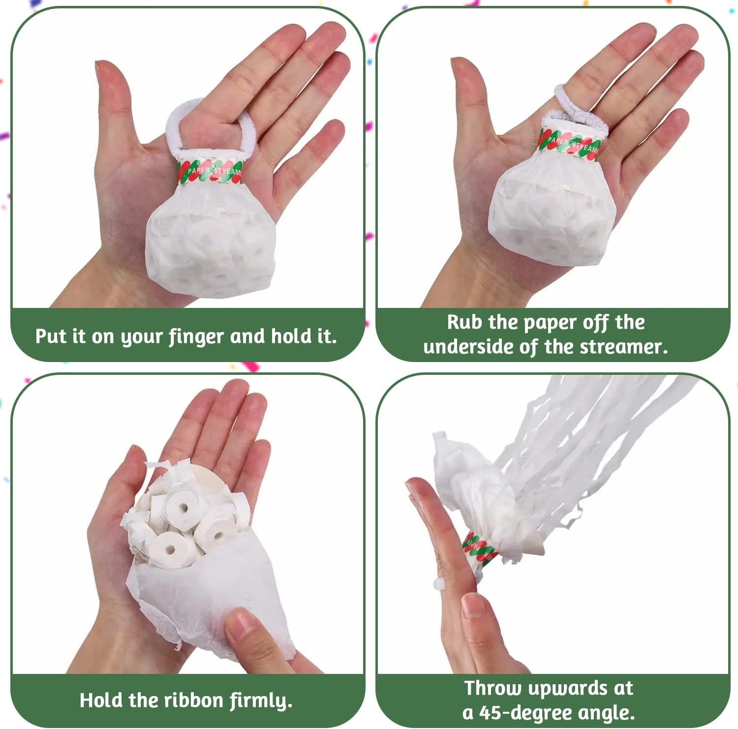 【Facile da usare:】 Stai cercando un modo semplice per riempire la tua festa di divertimento ed eccitazione? Con i nostri streamer è un gioco da ragazzi. Posiziona l'anello inferiore sull'indice o sul medio, rimuovi l'involucro superiore e lancia gli streamer con un angolo di 45 gradi o lasciali cadere da una grande altezza. Vengono create fantastiche scene colorate che trasformano la tua festa in un'atmosfera gioiosa e festosa. Perfetto per tutte le occasioni e senza complicate preparazioni. 【Pulizia rapida:】Sei stanco di passare ore a pulire dopo la festa? I nostri streamer non sono solo un highlight per i vostri ospiti, ma sono anche pratici: le strisce di carta interne sono collegate tra loro e possono essere unite facilmente. Quindi non c'è fastidioso disordine dopo l'uso e puoi concentrarti sulla festa. Più divertimento, meno stress! 【Sicuro e innocuo:】 La sicurezza è la nostra priorità. Le nostre bobine sono esenti da pericolo di esplosione e sostanze tossiche, quindi possono essere utilizzate in sicurezza da bambini, adulti e anziani. (Nota: poiché il prodotto è fatto di carta, deve essere tenuto lontano da fonti di fuoco). Goditi momenti spensierati di gioia e colore! 【Contenuto del kit:】 Il nostro set contiene 10 stelle filanti bianche perfette per feste eleganti e moderne. ciascuno è lungo 5 metri. I colori vivaci creano un effetto impressionante e trasformano la tua festa in un'esperienza indimenticabile. Il colore bianco delle stelle filanti si adatta perfettamente ad ogni occasione e può essere facilmente abbinato ad altre decorazioni. 【Scenari applicabili:】Che si tratti di matrimonio, anniversario, laurea, carnevale, anniversario, Halloween, Natale o Pasqua, i nostri streamer sono l'aggiunta perfetta a qualsiasi festa. Creano un'atmosfera festosa e creano ricordi duraturi con te, la tua famiglia e i tuoi amici. Con i nostri streamer ogni festa diventa un'esperienza indimenticabile