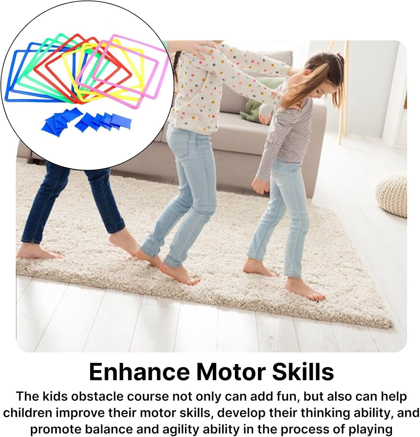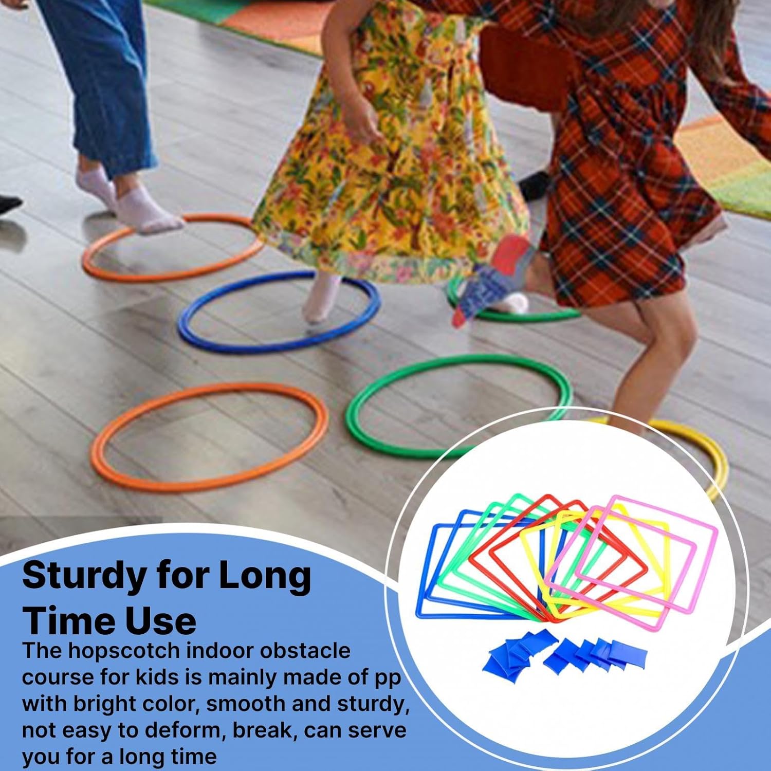 Ampiamente applicabile: i giochi da esterno della campana per la famiglia possono essere applicati dopo un semplice assemblaggio, adatti per interni ed esterni Ampia quantità da usare e condividere: il pacchetto include 1 set di giochi da esterno a campana a forma di cerchio, contenente 10 cerchi, 10 connettori, 1 borsa portaoggetti e 1 sacchetto di fagioli, comodo da riporre e giocare con altri Migliora le capacità motorie: il percorso a ostacoli per bambini non solo può aggiungere divertimento, ma può anche aiutare i bambini a migliorare le loro capacità motorie, sviluppare la loro capacità di pensiero e promuovere l'equilibrio e l'agilità durante il gioco Robusto per un uso prolungato: il percorso a ostacoli al coperto per bambini è realizzato principalmente in PP con colori vivaci, liscio e robusto, non facile da deformare, rompere, può servirti a lungo Goditi il tuo tempo libero: il gioco del pavimento saltellante è adatto ad adulti e bambini per giocare a casa, passando il tempo noioso, rafforzando il rapporto reciproco, facendo esercitare tutta la famiglia e