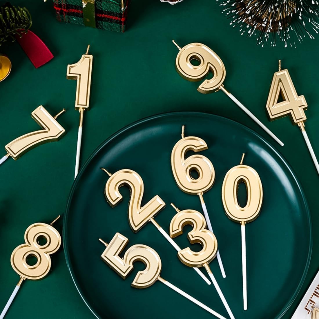 La confezione include: riceverai 10 pezzi di candele con numeri d'oro, il numero da 0 a 9, sufficienti per soddisfare le tue esigenze. Materiali: le candele di compleanno sono realizzate in cera senza fumo di qualità. Ecologiche e non tossiche. Facile da inserire e accendere. Brucia uniformemente e costantemente. Aspetto delicato: le candele di buon compleanno sono disponibili in colori vividi dorati e si illuminano di luce scura. Rendi speciale la tua torta di compleanno e risalta. Dimensioni: Le candele con numero d'oro reggono bene sulla torta nel giusto peso e lunghezza. Ampia applicazione: adatto a molte occasioni, come compleanni, matrimoni, baby shower, anniversari, feste di pensionamento e così via, puoi usare questi 10 numeri per mettere insieme in età diverse.